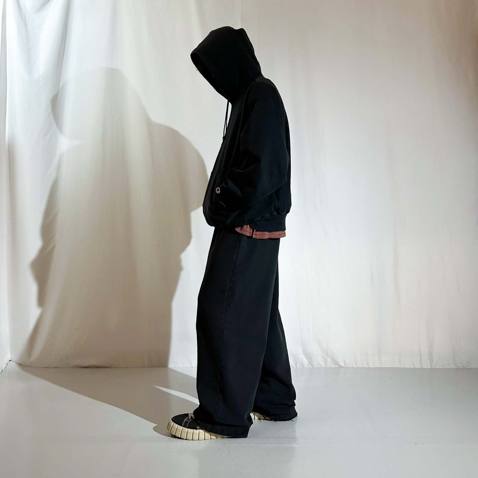 スウェットパンツと言ったら裾リブ仕様で、テーパードなシルエットが多い印象ですが…。このアイテムは裾までストンとストレート。渡り幅も裾幅も広めに取られたワイドシルエット。全体的なヤレ感や裾のダメージがよりストリートな雰囲気を感じれるアイテム。ドローコード仕様なのでどなたでもご着用いただけますし、スウェットパンツには珍しいポケ付きなのも地味に嬉しい。