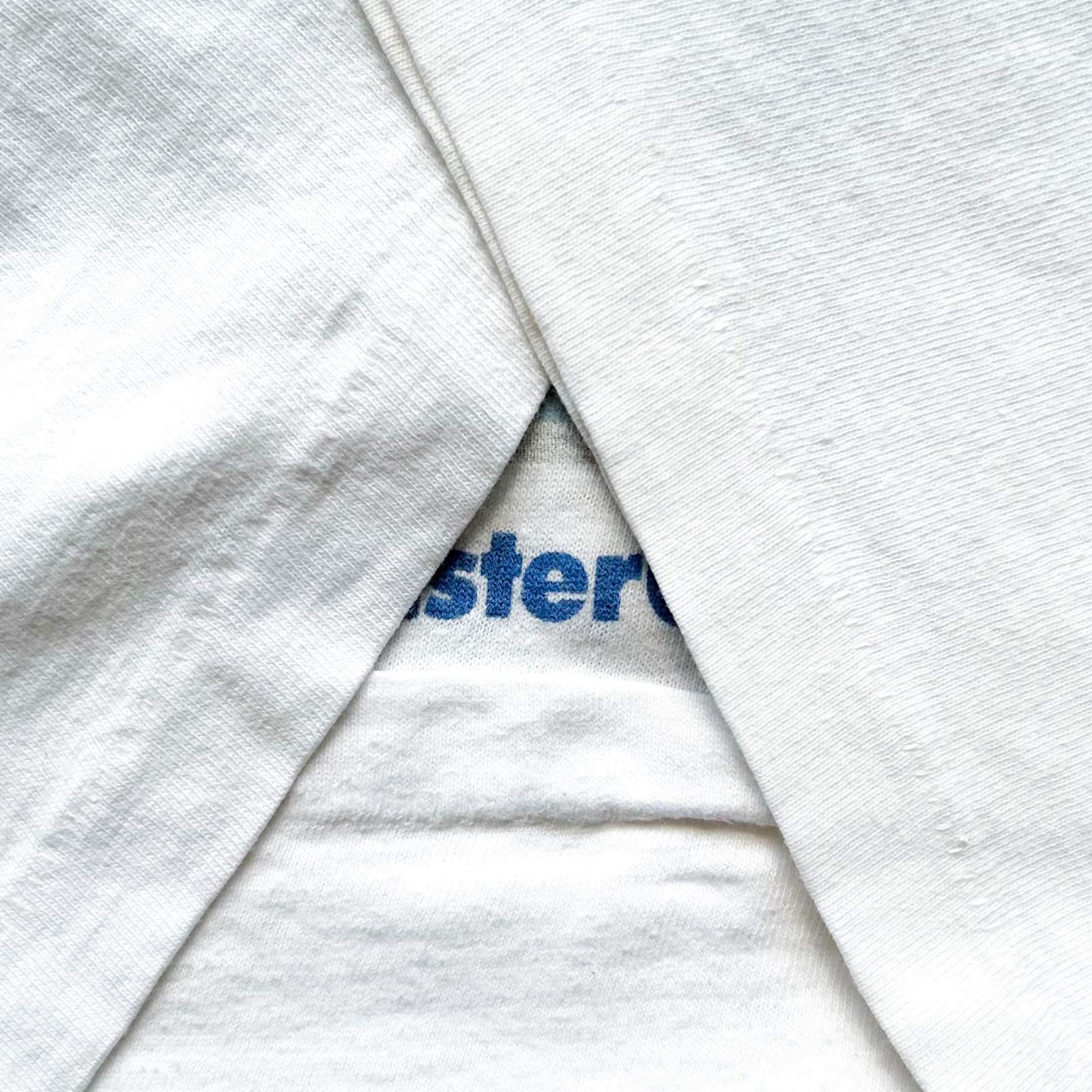 【Webスタッフ齋藤のおすすめ商品】マスターカードのグラフィックTシャツ。マスターカードのTシャツだと赤と黄色の丸がドーンとプリントされた主張の強いものが多いですが、こちらは控えめなカードがセンターにプリントされています。90年代に多い動物やキャラクターが前後ろで変わったプリントされたカードverですね。逆に珍しい。丈短めのボックスシルエットで短丈で着たい方にはちょうどいいですね。