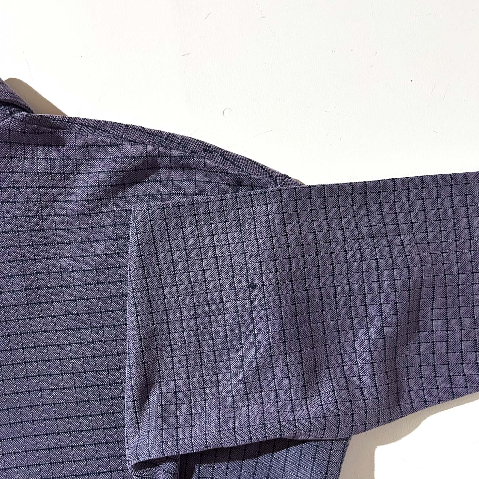 チェック柄×レーヨン素材というだけでもなかなか珍しいのに、長袖で、しかも開襟のボックスシルエットとなると本当に出てこない一着。裾がストンと落ちるボックス型のため、タックアウトしてもスッキリ着られて、シルエットも美しく仕上がります。 ブランドは〈ALFANI(アルファーニ)〉。アメリカの老舗高級百貨店「Macy’s(メイシーズ)」のプライベートブランドとして知られ、品質・素材・縫製ともに申し分なし。大人っぽく落ち着いたチェック柄も魅力で、派手すぎず着回しやすい1枚です。