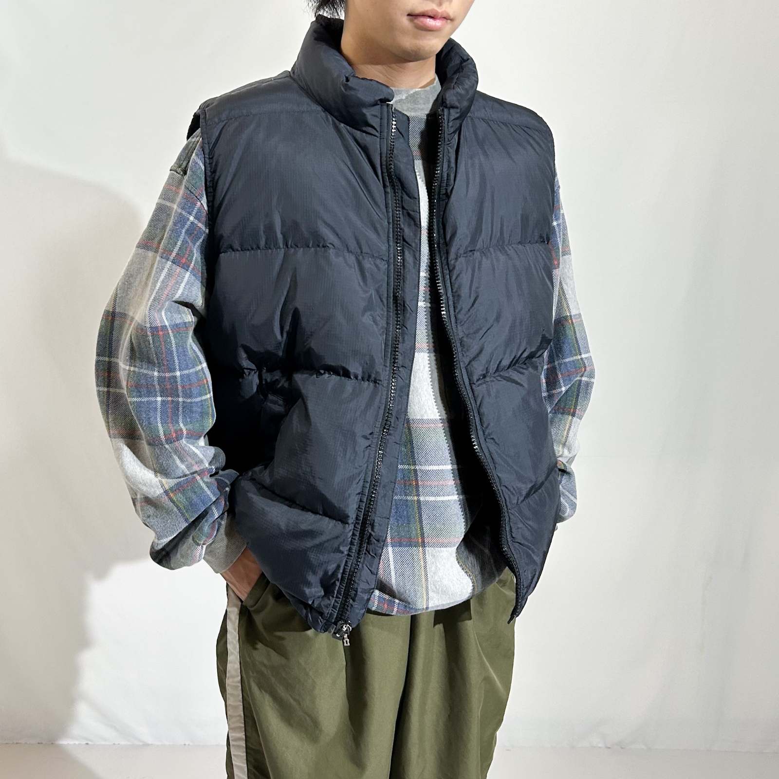 〈00’s Eddie Bauer グースダウンベスト〉。 キングオブ・アウトドアブランド〈Eddie Bauer〉より、00年代製の高品質ダウンベスト。フィルにはダックダウンよりもダウンボールが大きく、より高い保温性を誇る“グースダウン”を使用。軽く暖かく、秋冬の寒い季節に最適な一着です。 後身頃が長めに設計されており、横から見た際のシルエットバランスも絶妙。リップストップ生地を採用しているため裂けにくく、アクティブシーンでも安心の耐久性。 また、身幅にゆとりがあり、アームホールも広めなので、スウェットやアノラック、コートなどの上からも羽織れるレイヤード向きの設計。フロントはスナップではなくジップ仕様で、無骨になりすぎずアーバンな印象に仕上がっています。 カラーは合わせやすいブラック。年代が新しくても素材のクオリティを落とさない、“らしさ”のある一着です。