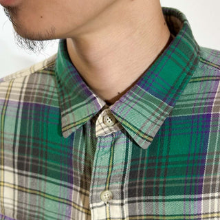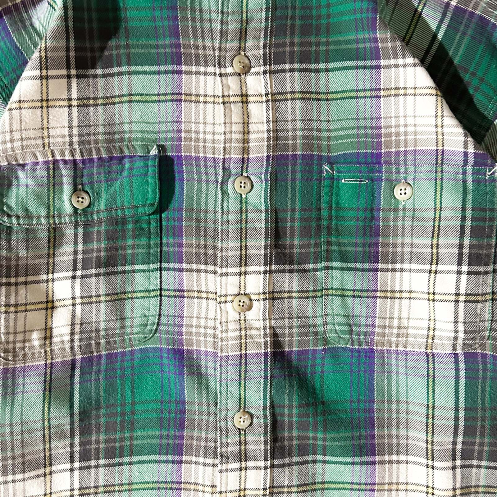 今回のオンブレチェック&''いなため''チェックの2種類のネルシャツを入荷! どちらの良さも知っていただけたら嬉しいなと。ラルフのガチャポケネルシャツ。ポケットが左右非対称で違和感あるよね。これは30〜40年代の古いカバーオールやシャンブレーシャツ、ワークシャツに見られるディティールを現代でサンプリング。実際に再現して作ってしまうのがラルフローレンの凄いところ。 当時は街着ではなく、働く為に作られた制服だったから割とタイトなサイズ感のものが多いけど、これは街着用にサイズ感は、今風にゆったりめに身幅が取られているのも嬉しいよね。''いなたい''チェック柄はオンブレチェックのように良い意味で、かっこよくない無骨なチェック柄。だからキメすぎず、時には羽を伸ばしてあげたいなあって時のスタイリングに重宝するんですよね〜。 DickiesのワークパンツとVANSを合わせて、西海岸系のスケーターファッションしたい時に重宝するよ。男臭いハーコーなスタイル…憧れる人も多いでしょ!