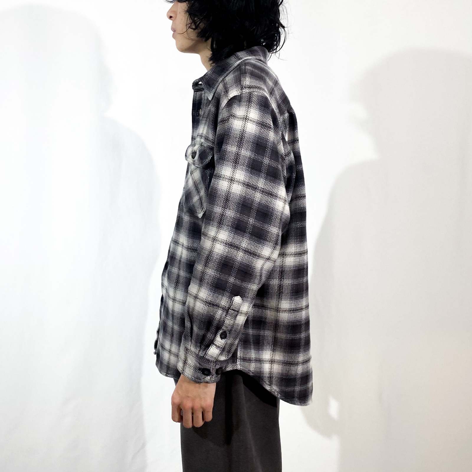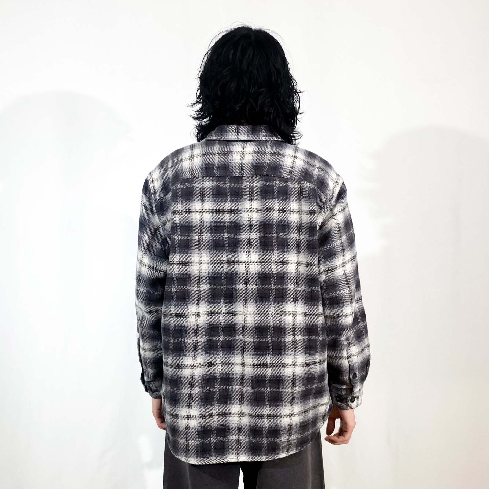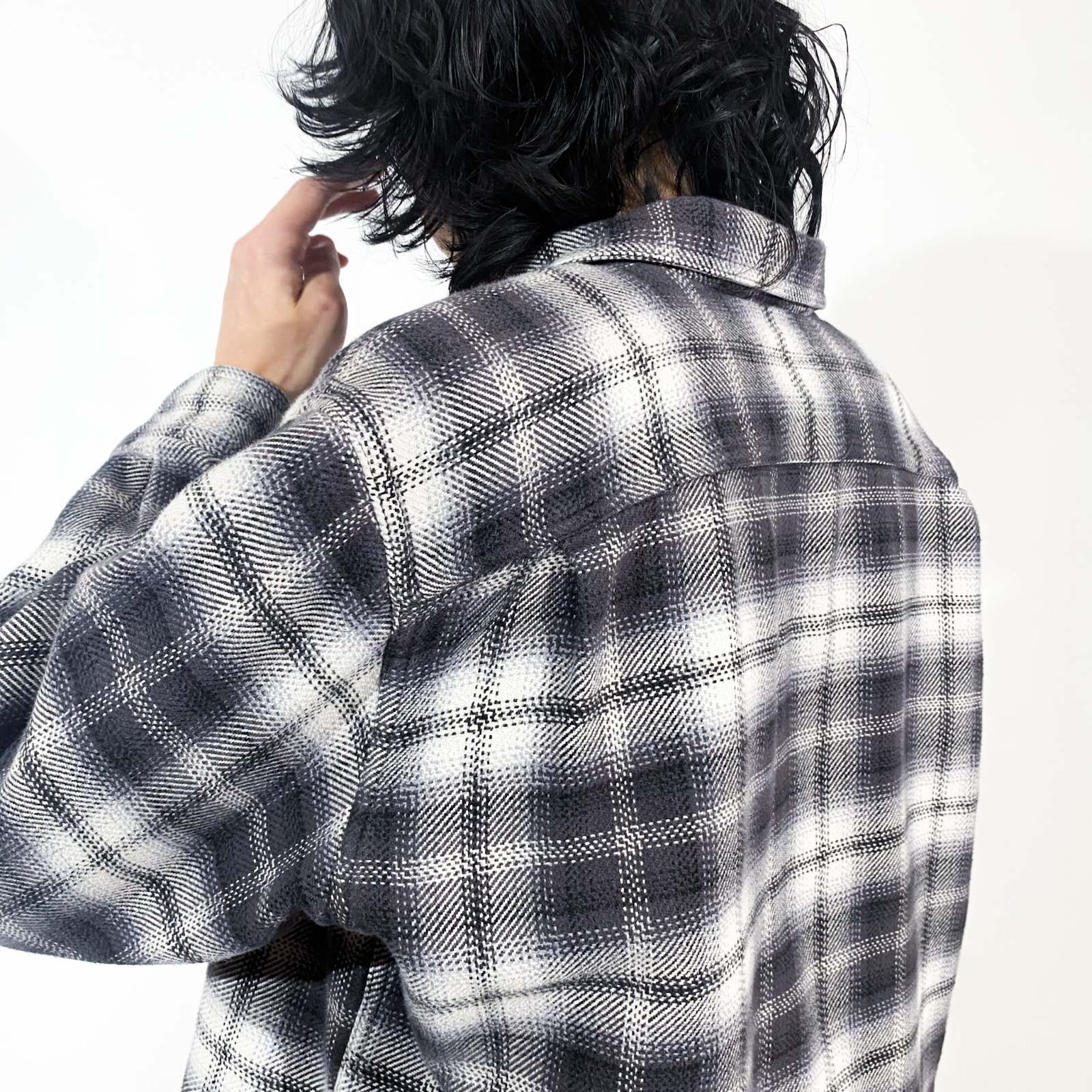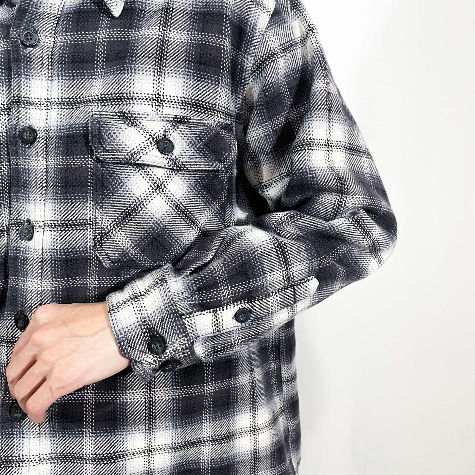 オンブレ シャドーチェック フランネル シャツ 長袖 白 黒 カジュアル ヘビーフランネルシャツ ヘビネル