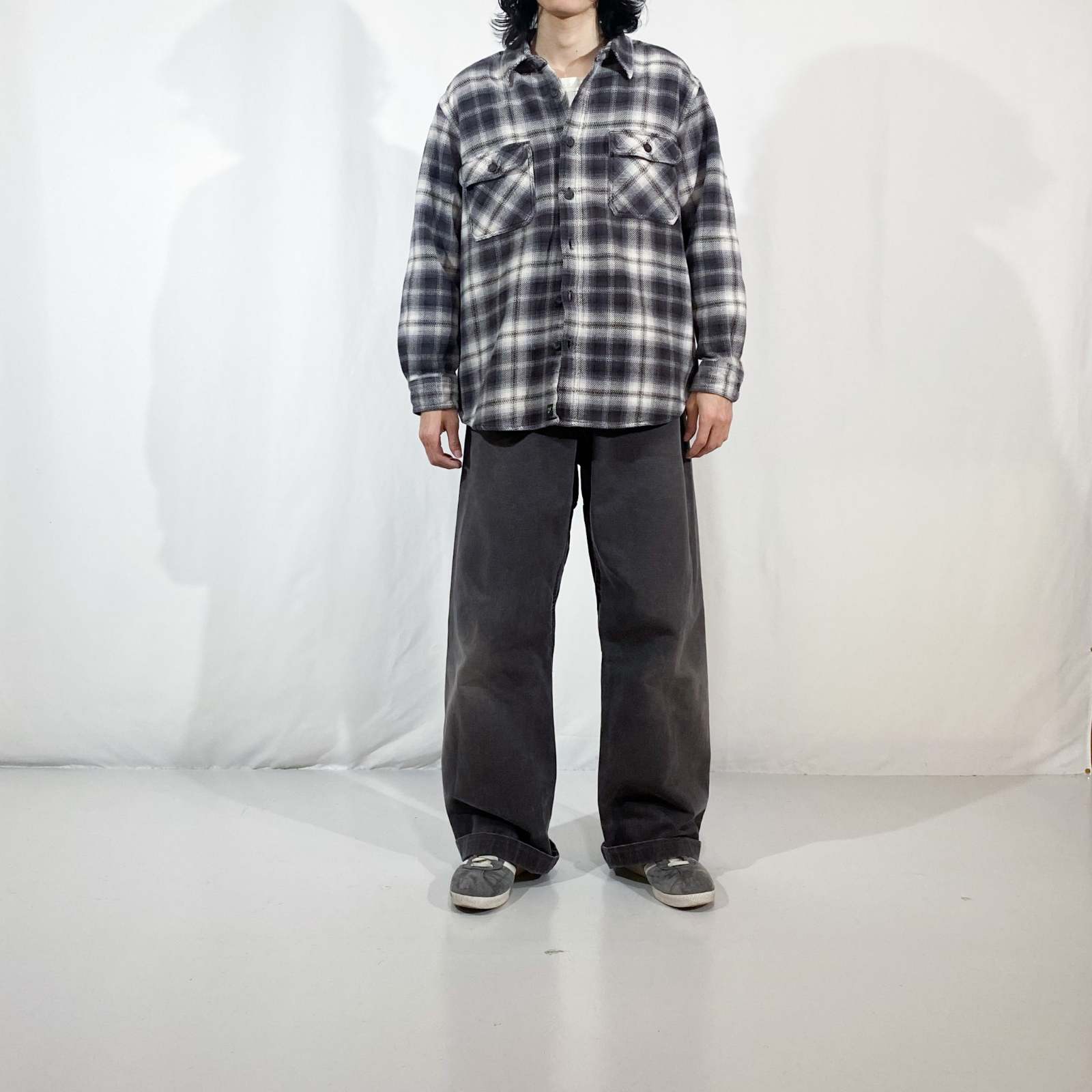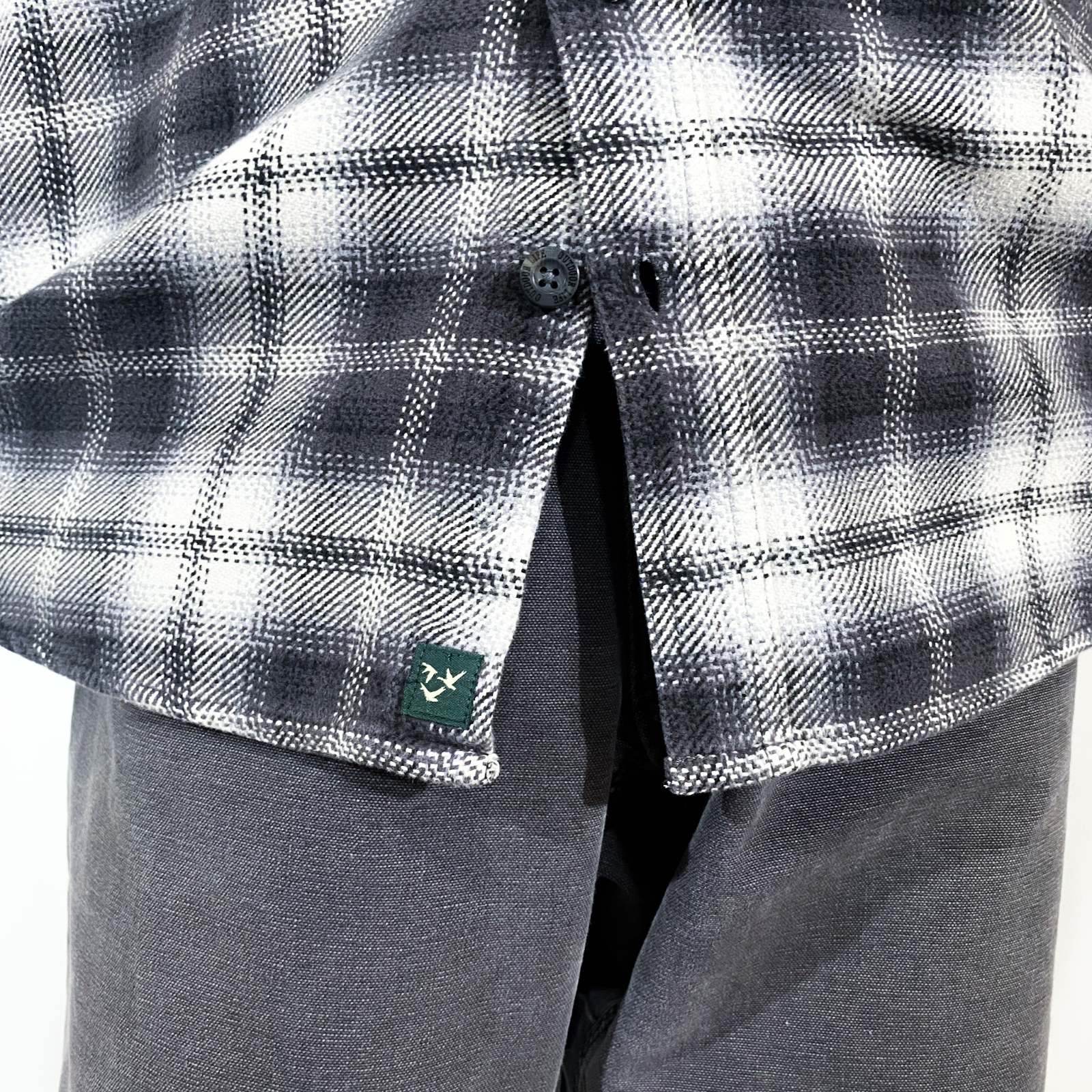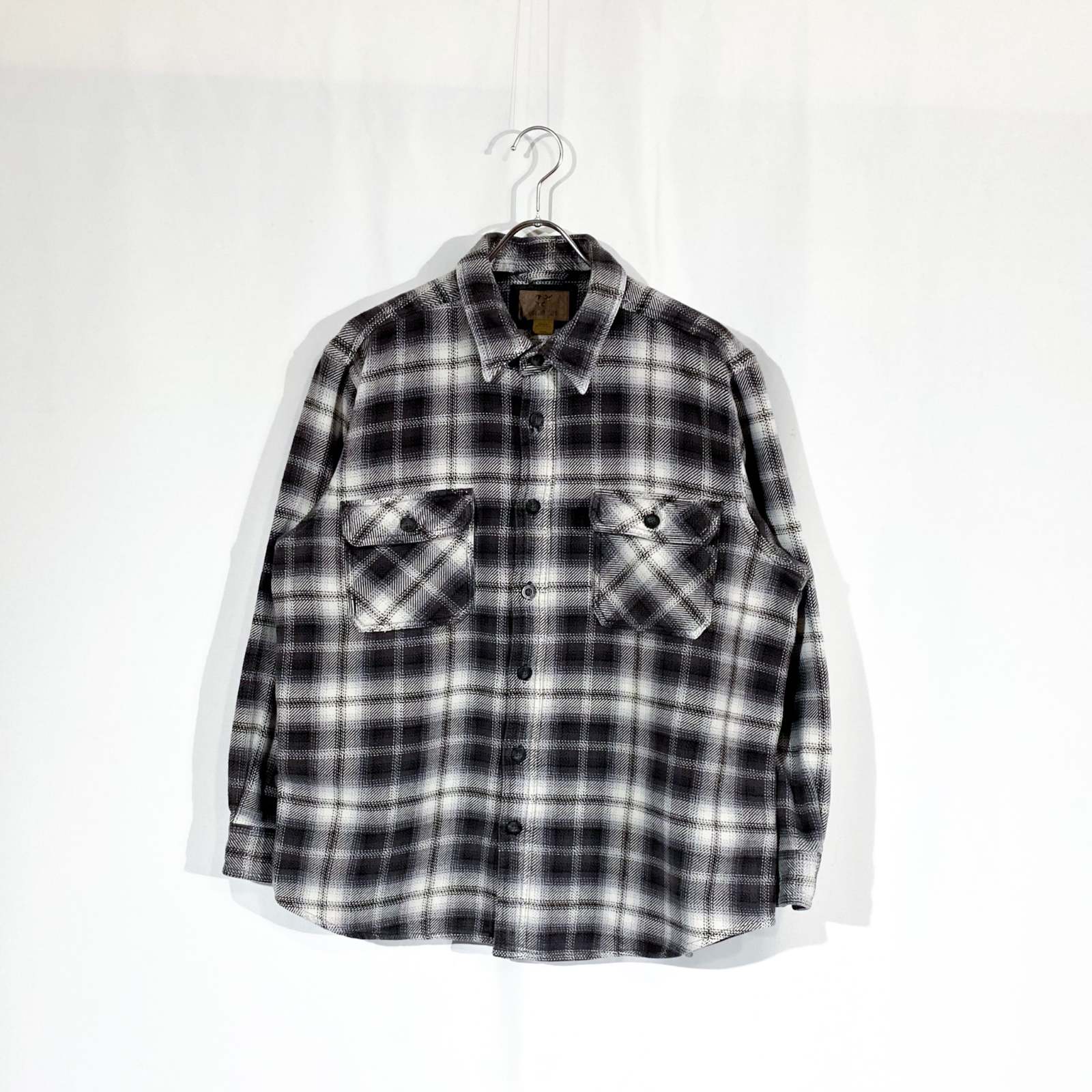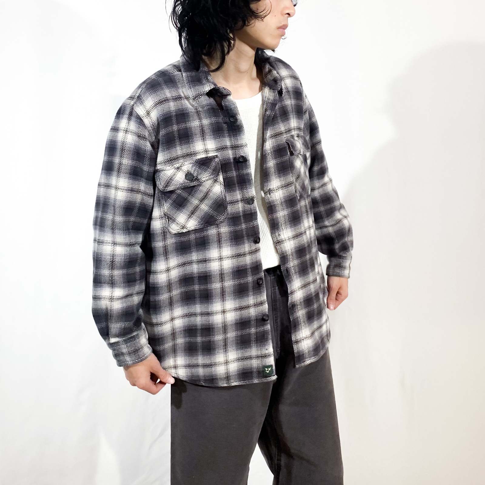 オンブレ シャドーチェック フランネル シャツ 長袖 白 黒 カジュアル ヘビーフランネルシャツ ヘビネル
