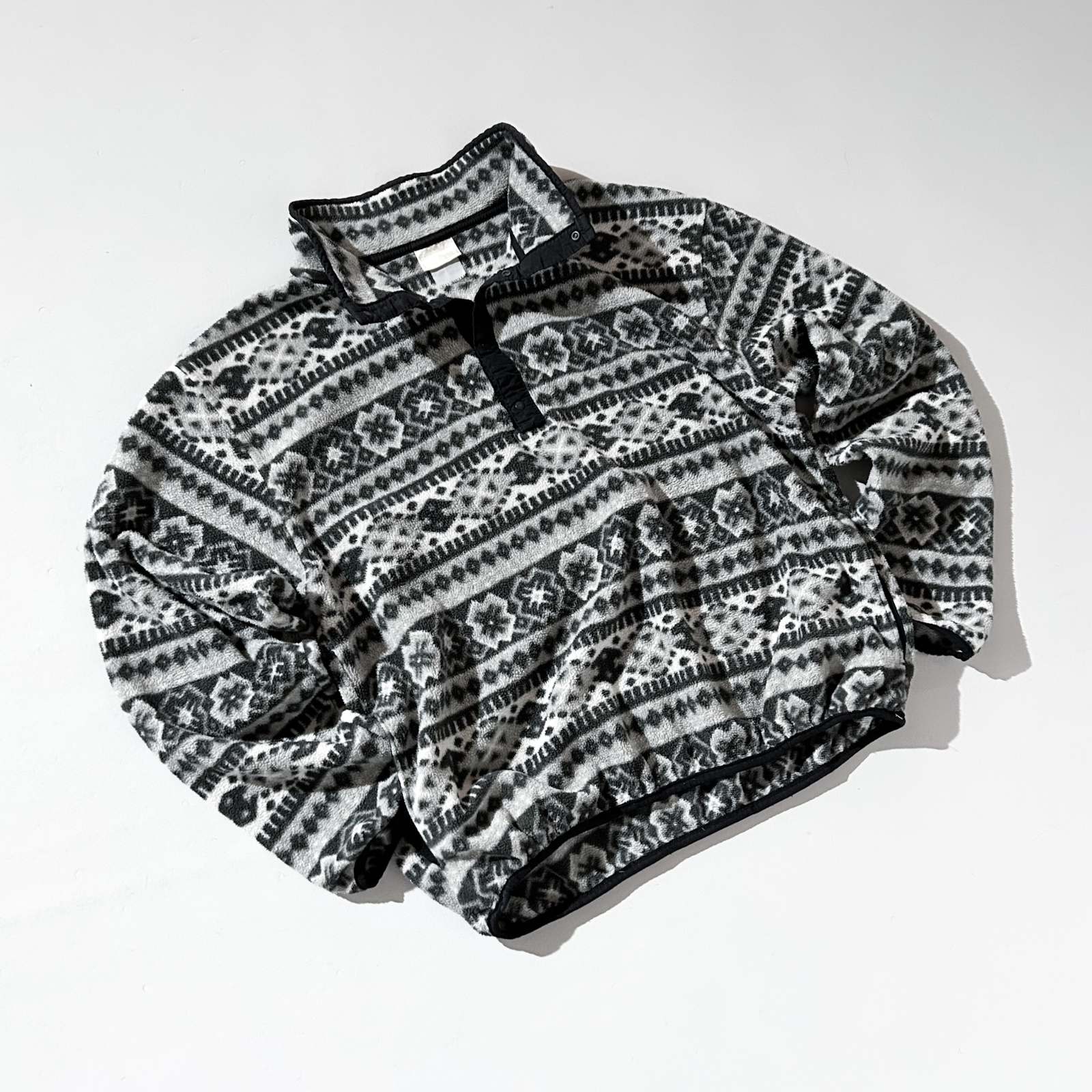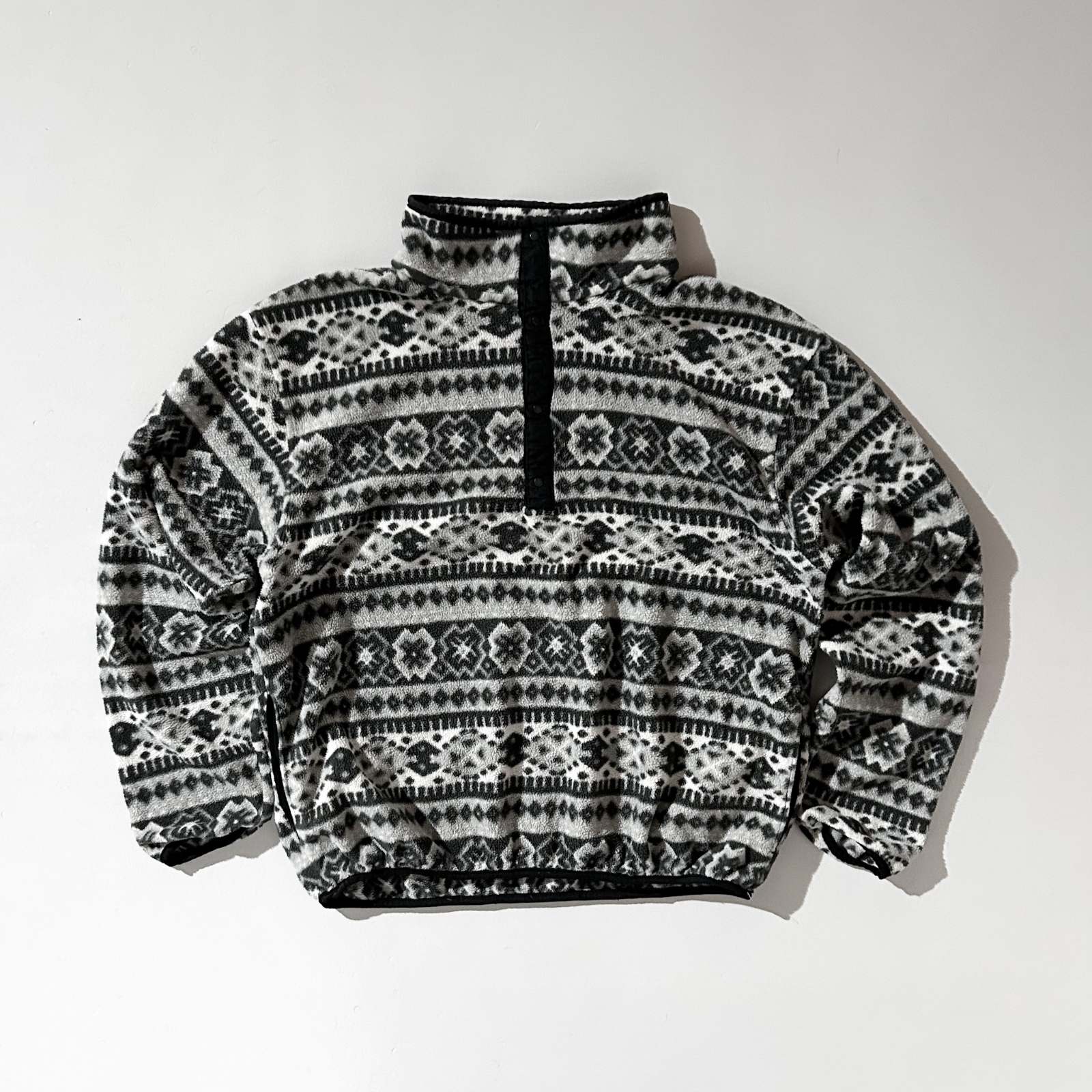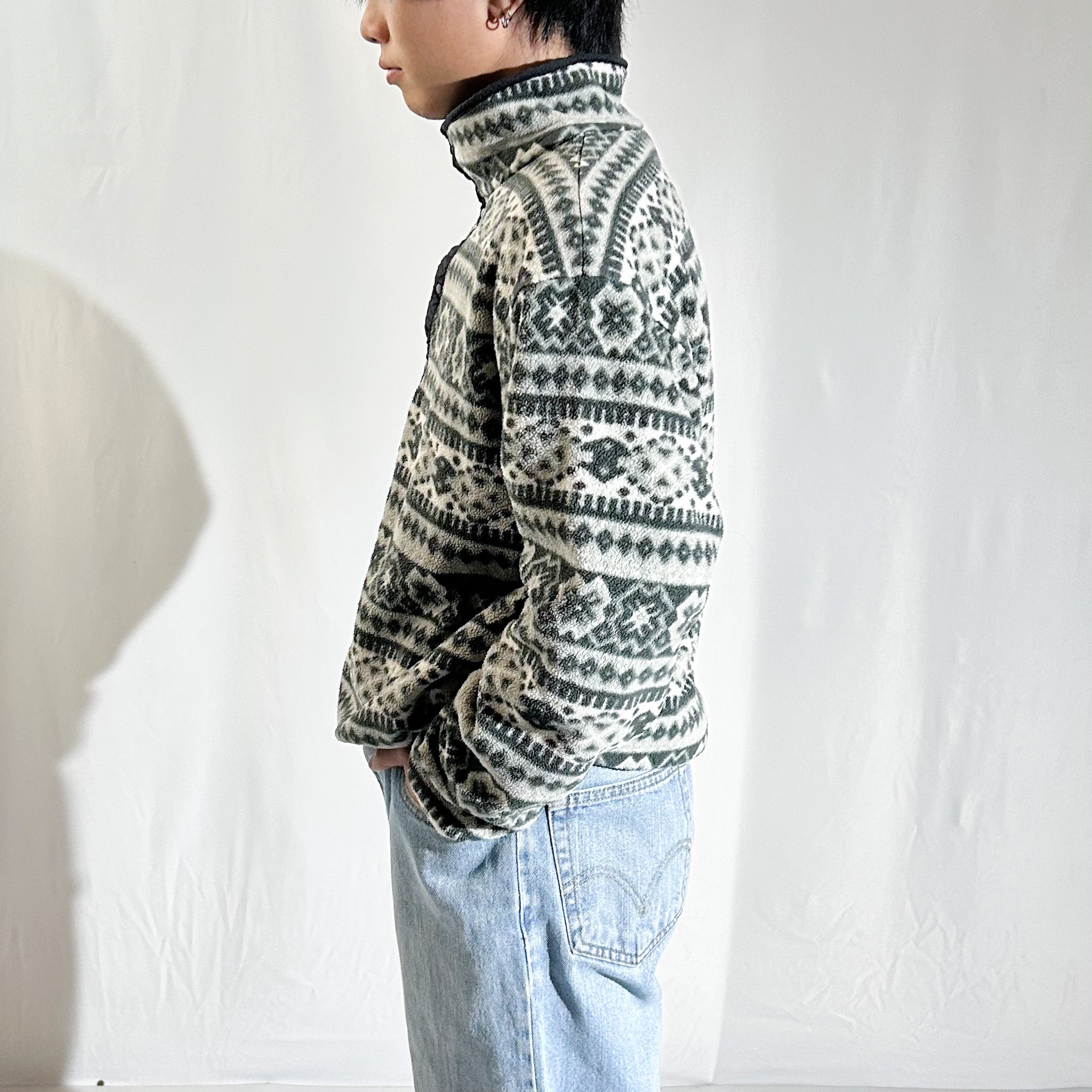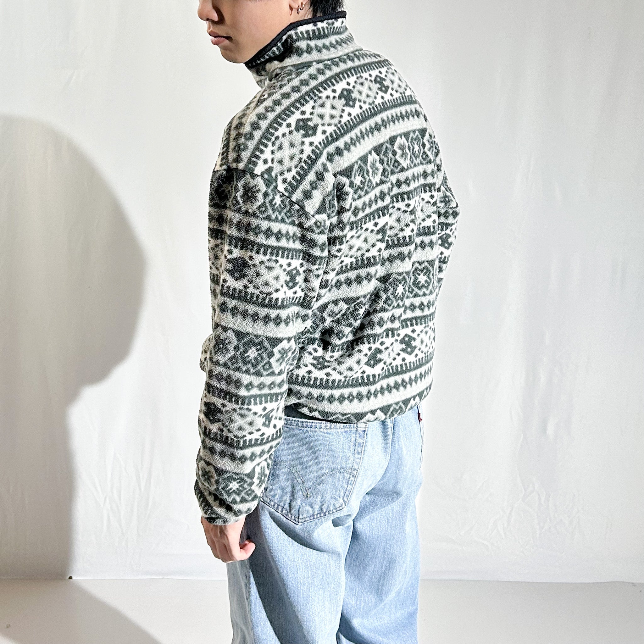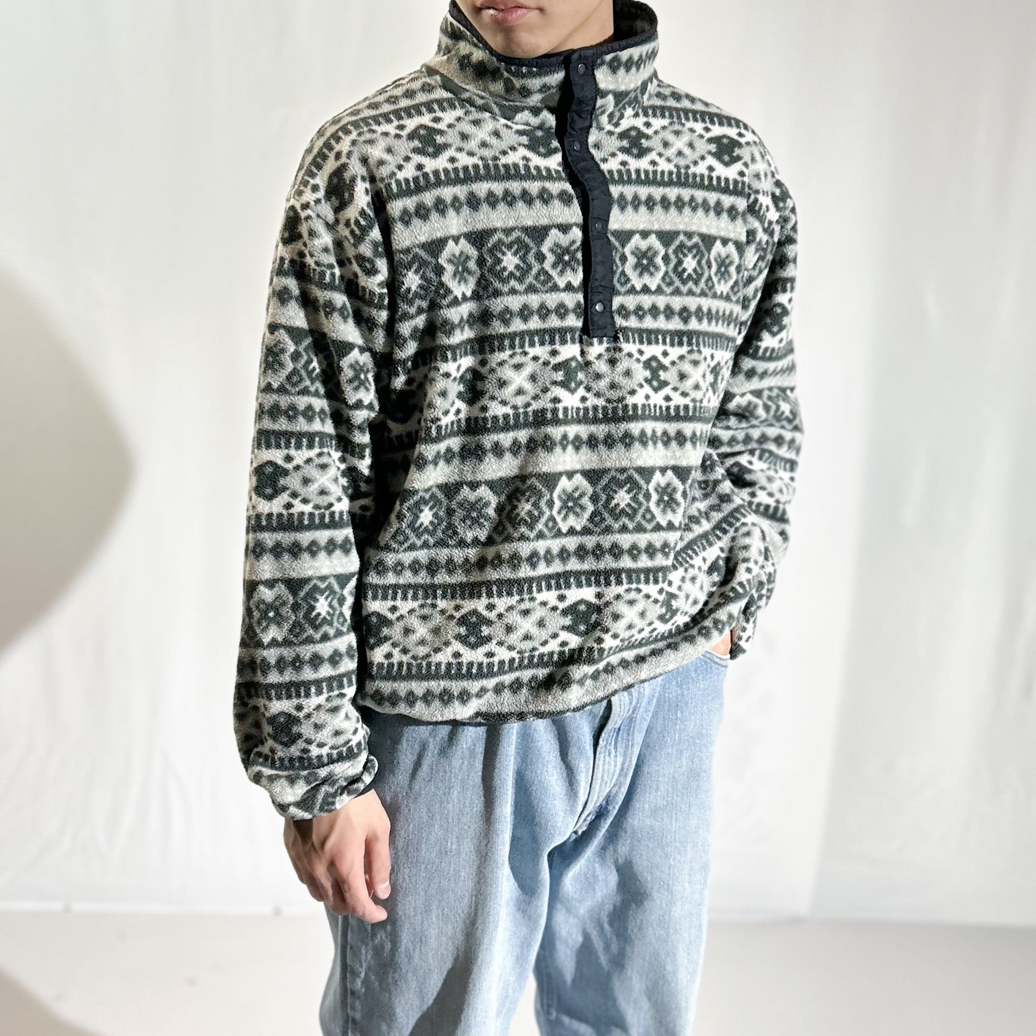 90's L.L.Bean ノルディック調 総柄 スナップTタイプ フリース プルオーバー