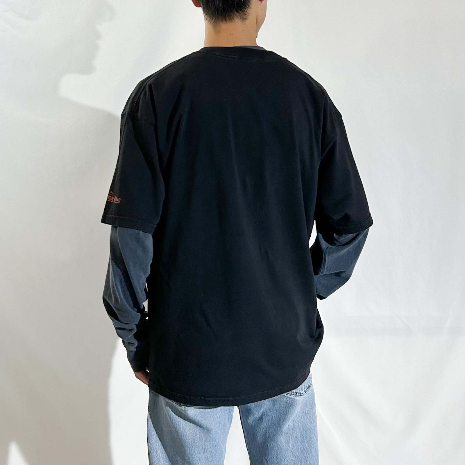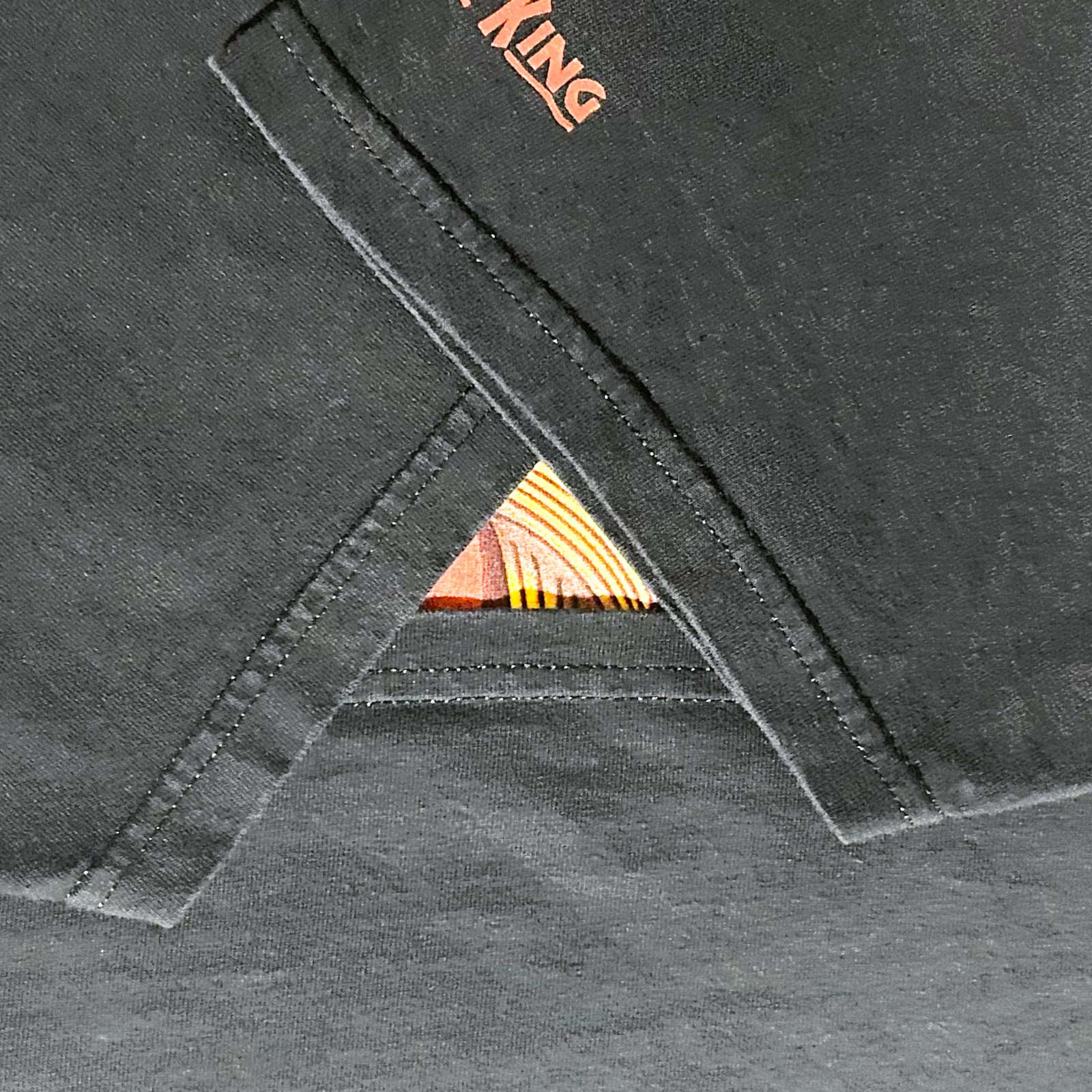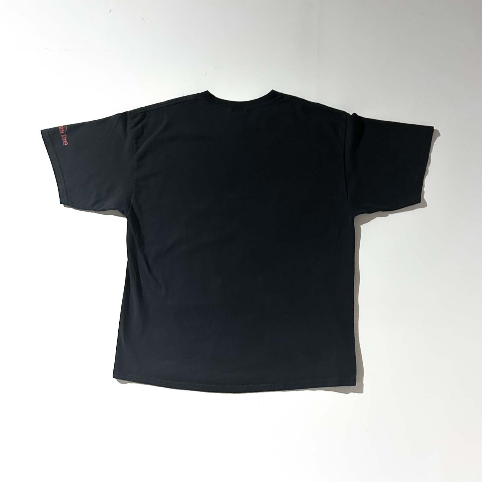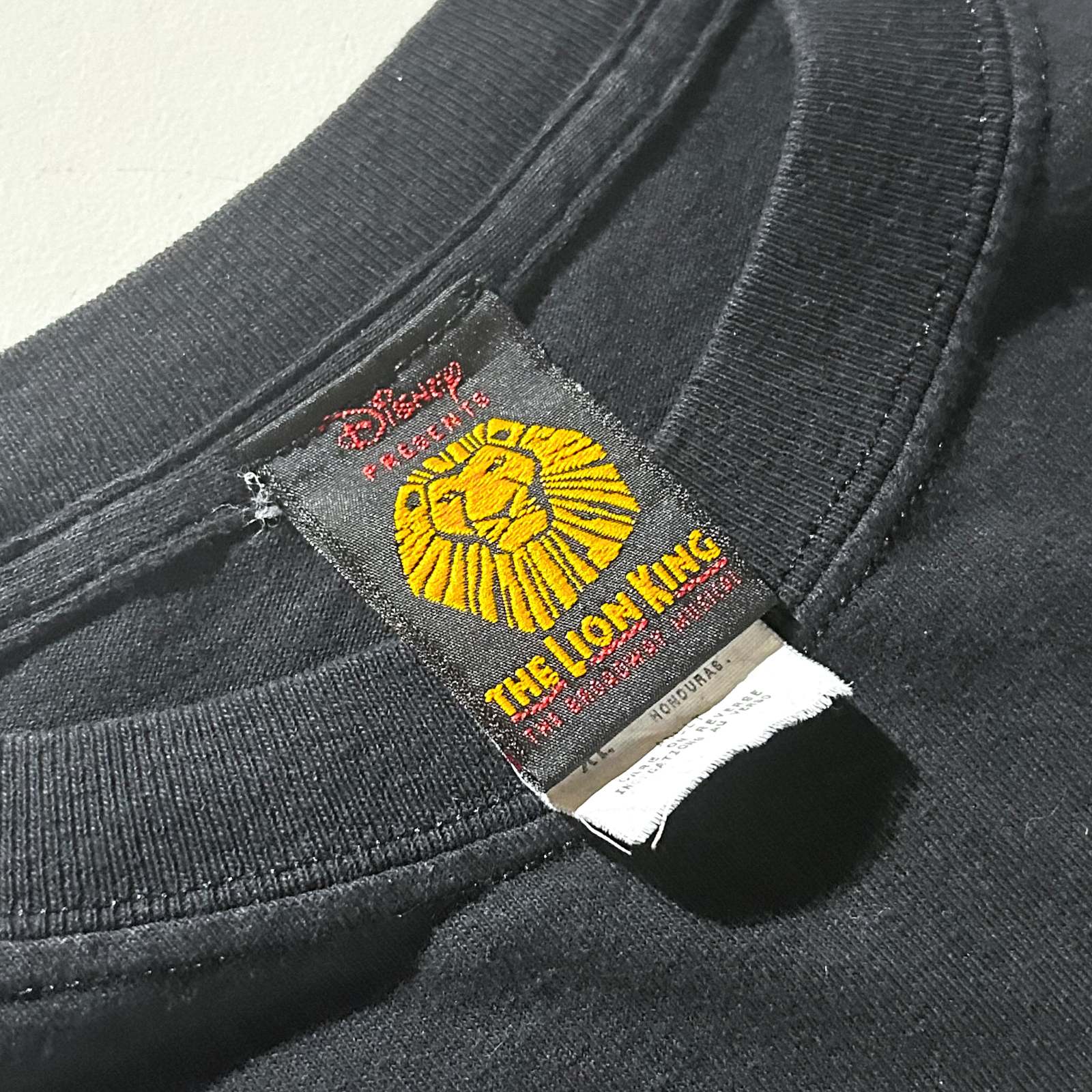 ライオンキングのミュージカルTee。スカーとともに彼の名セリフの一つ"I'm surrounded by idiots.(私の周りにはバカしかいない)"がプリントされた一枚。キャラクターメインの大きめのプリントが非常に好バランス、影から出てくるスカーらしいかっこいいプリントです。近年高騰しているディズニーや映画ものも、ミュージカル物はまだ高騰していないのでファッションとして取り入れやすくお勧めです。