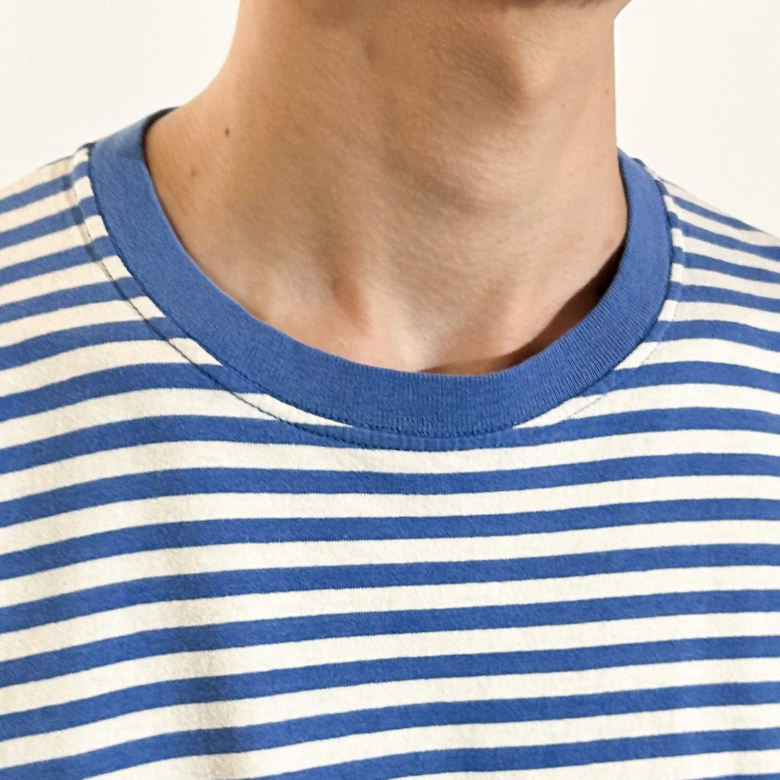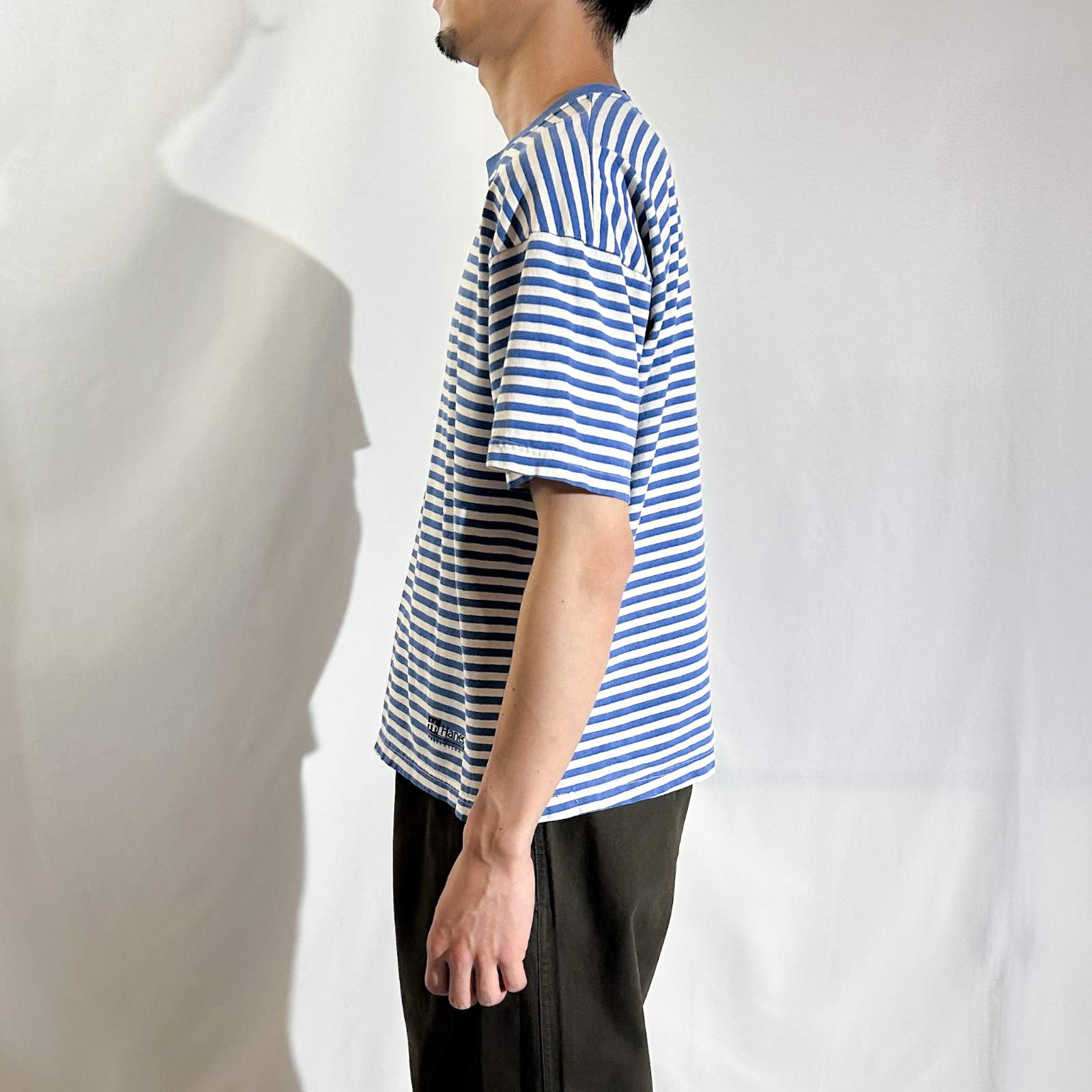 ~00's "made in USA" HANES ブルー×ホワイト 短丈 ボーダー Tシャツ