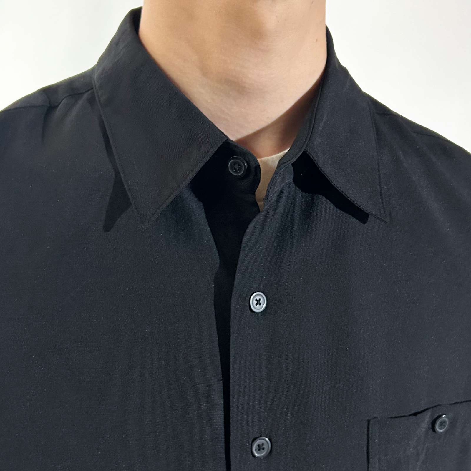 黒 レーヨンシャツ ピューリタン 綺麗め