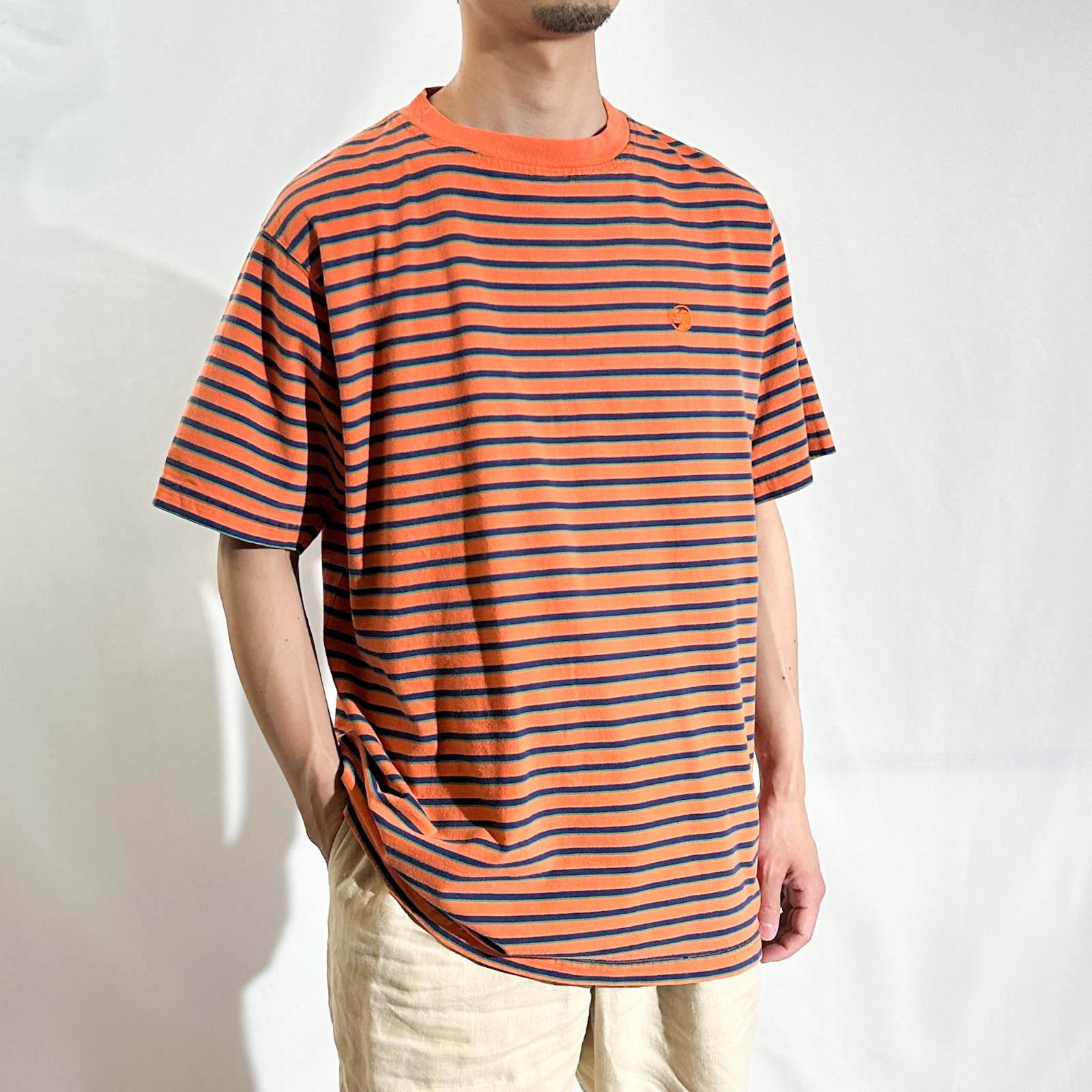 90's~ Duck Head オレンジ×ネイビー ボーダー Tシャツ