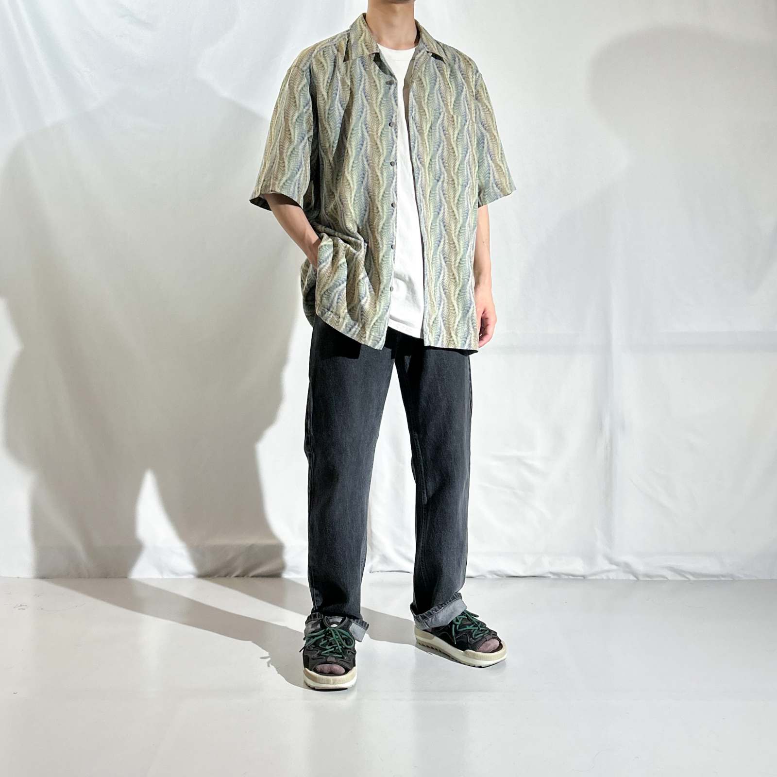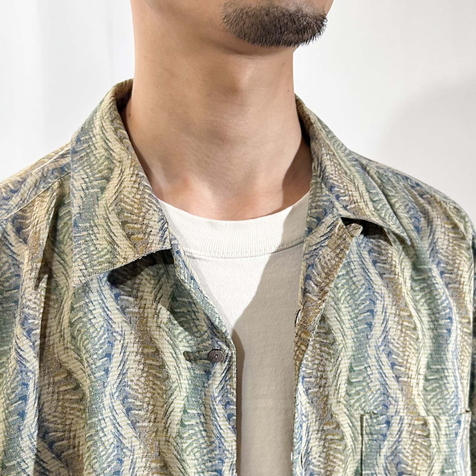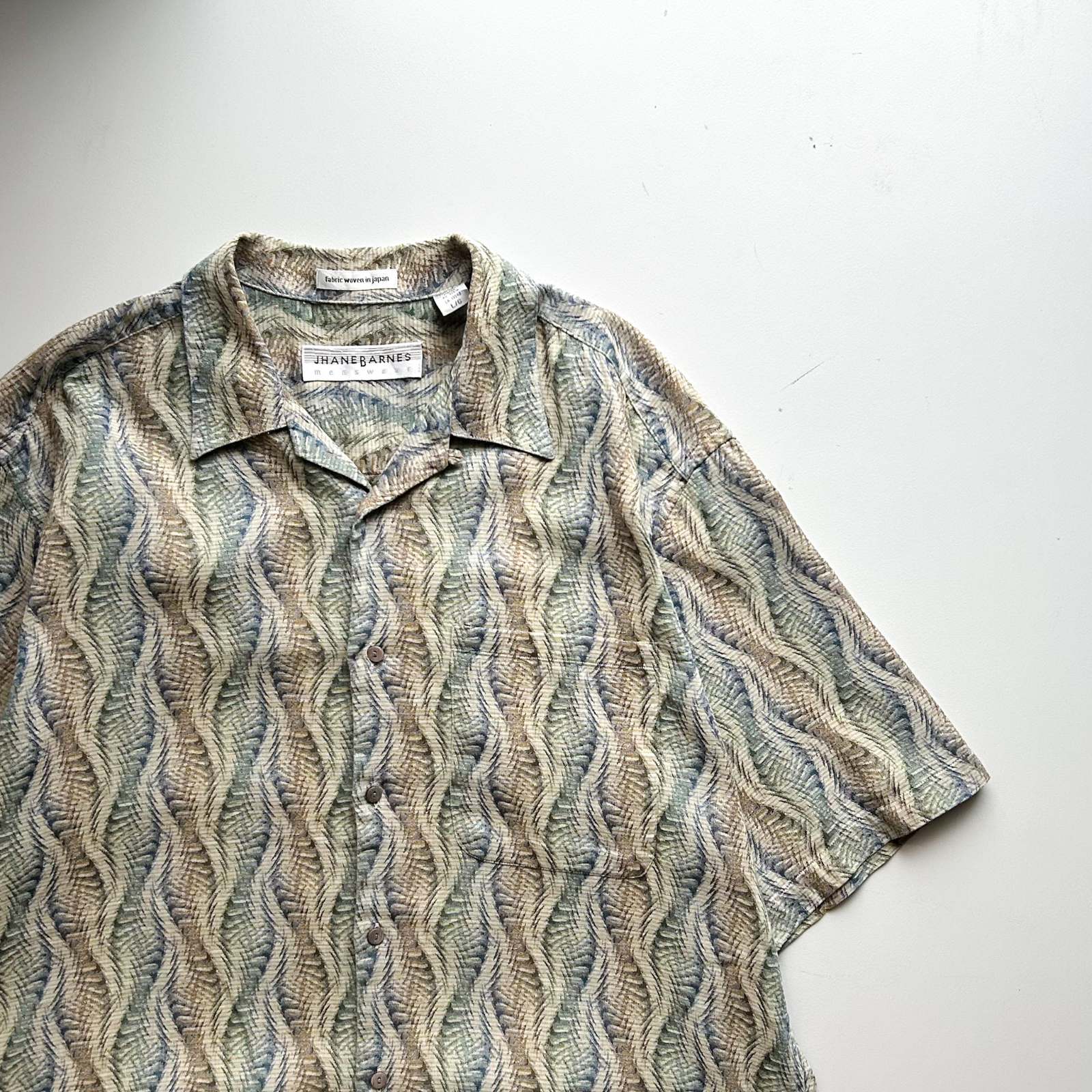 90's "fabric woven in Japan" JHANE BARNES 総柄 オープンカラー S/Sシャツ