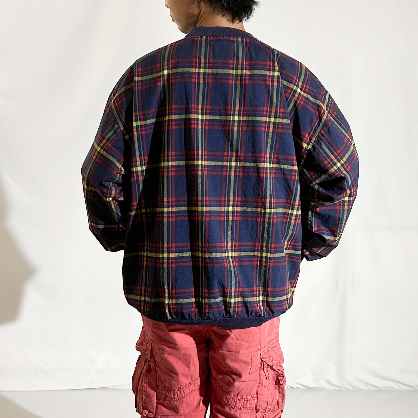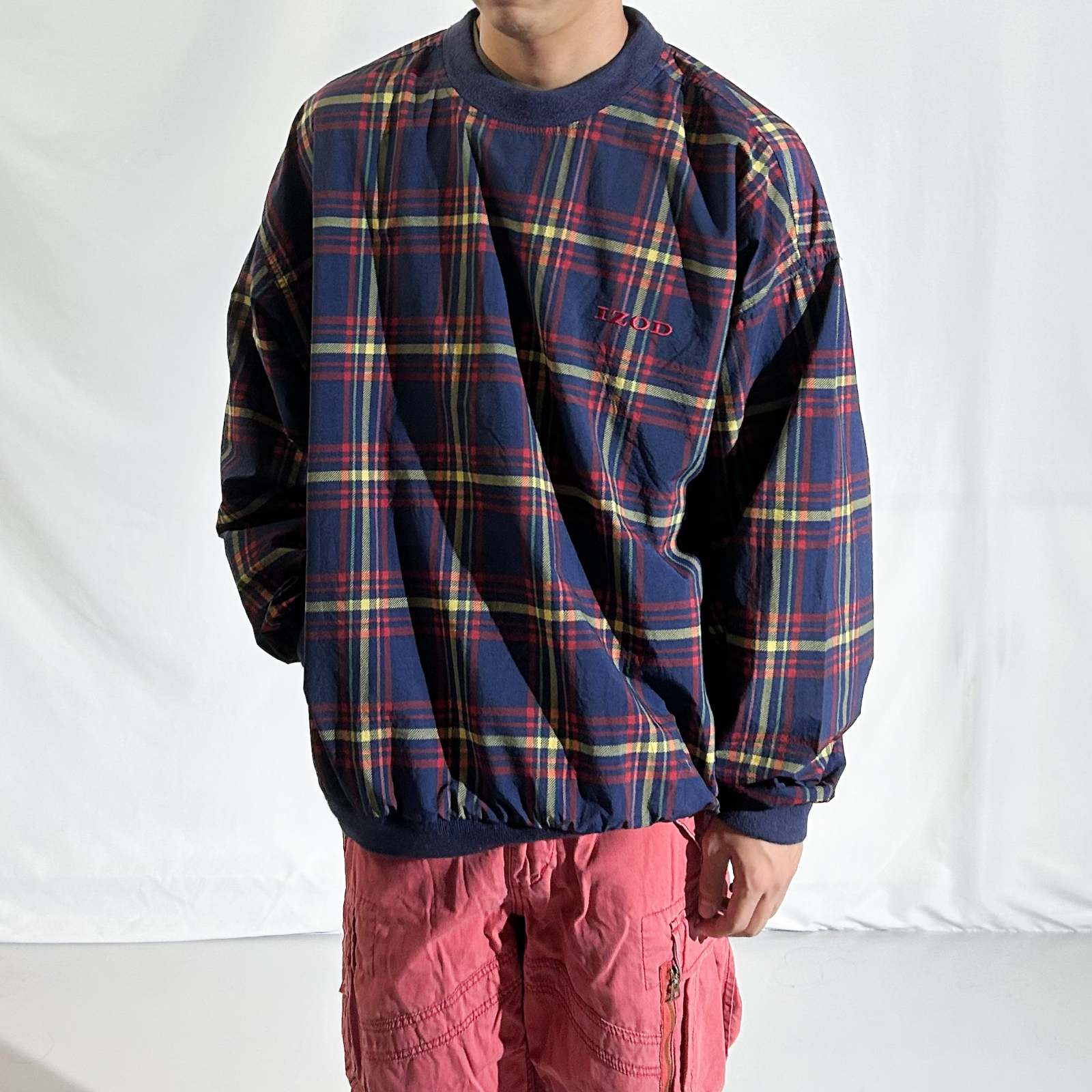 90's IZOD パッカブル チェック プルオーバー ナイロン ジャケット(レッド)