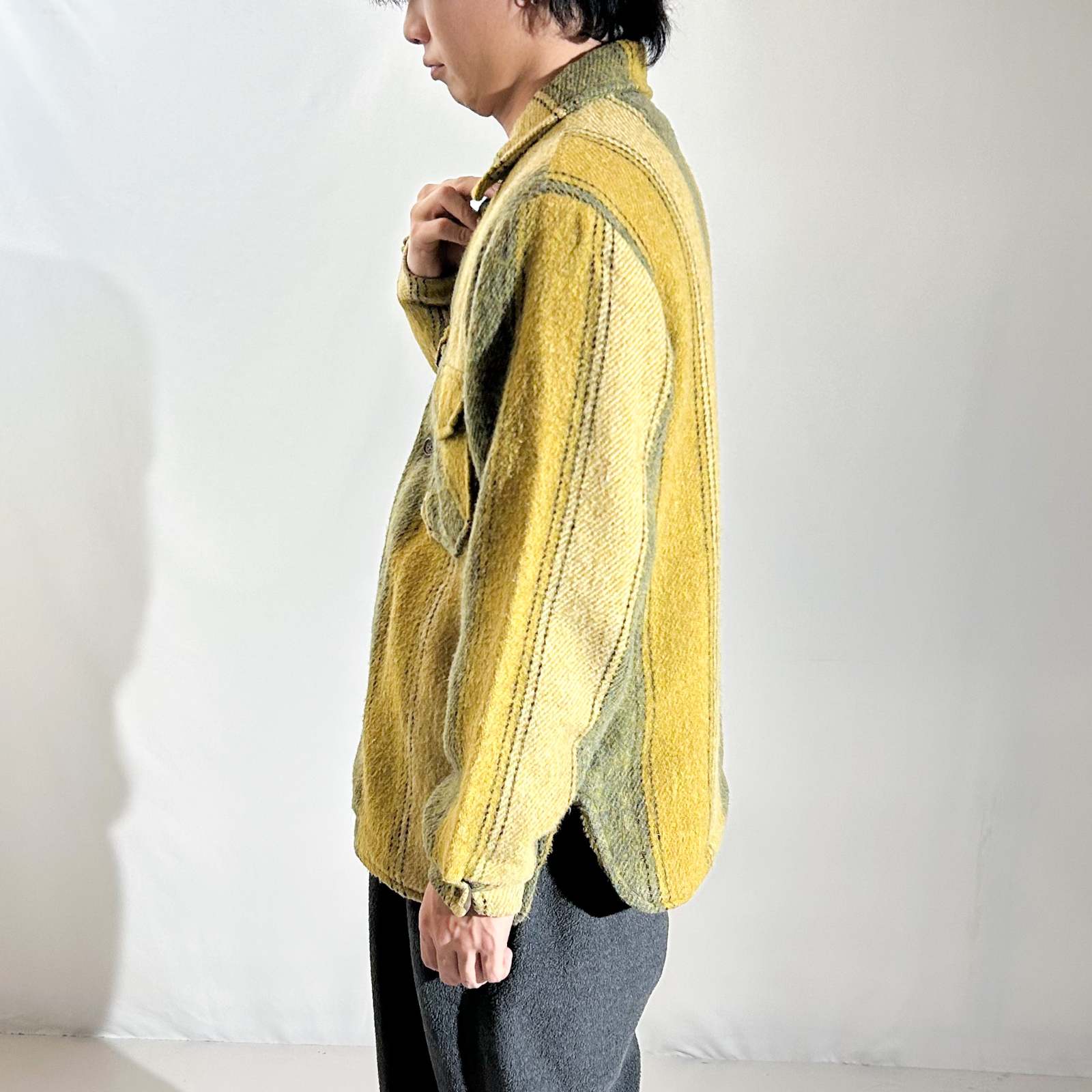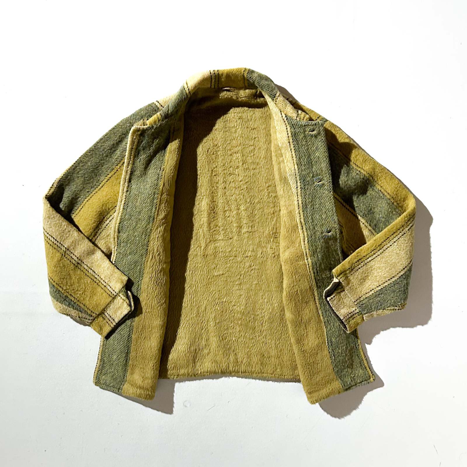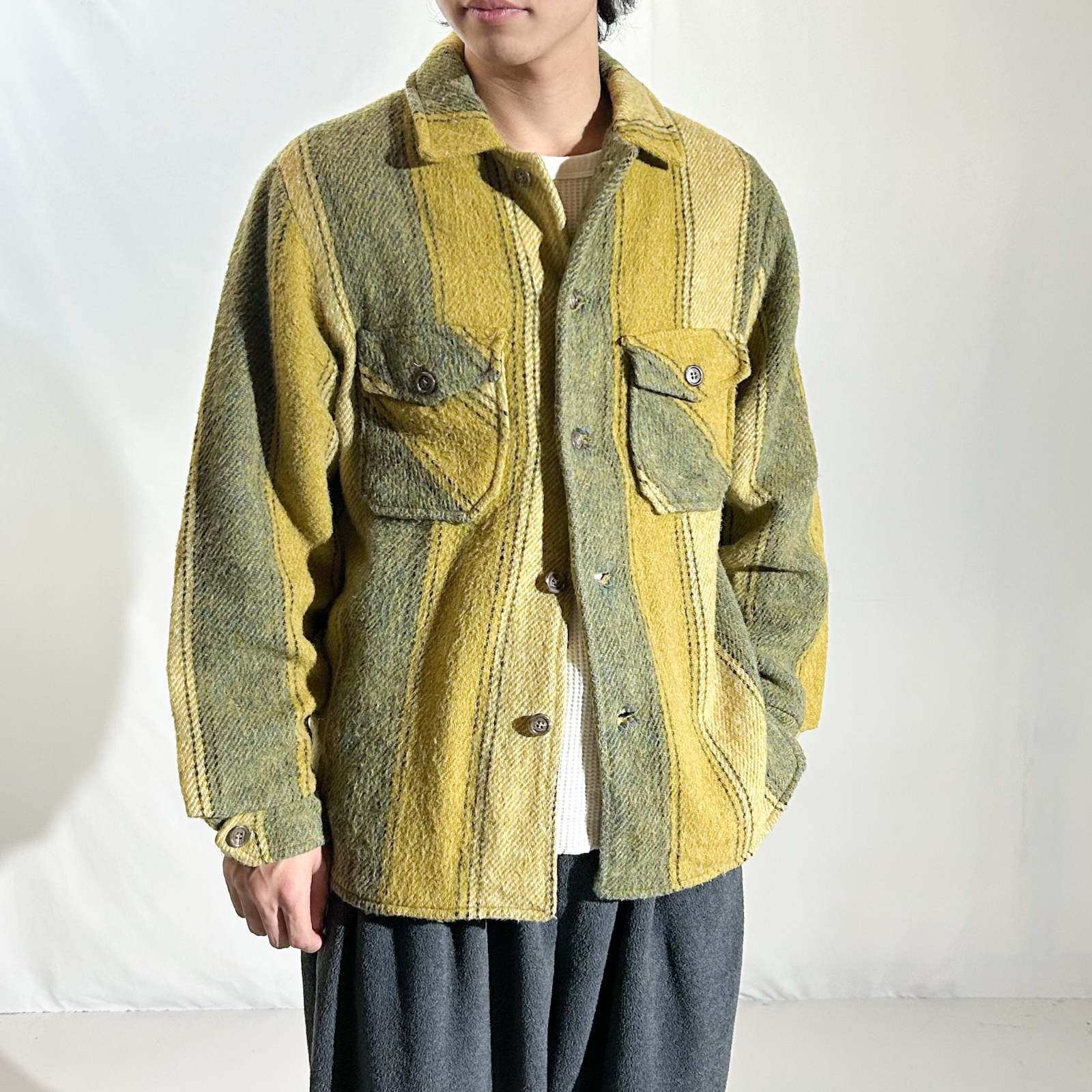 ~90's 裏フリース ストライプ ウール シャツ ジャケット