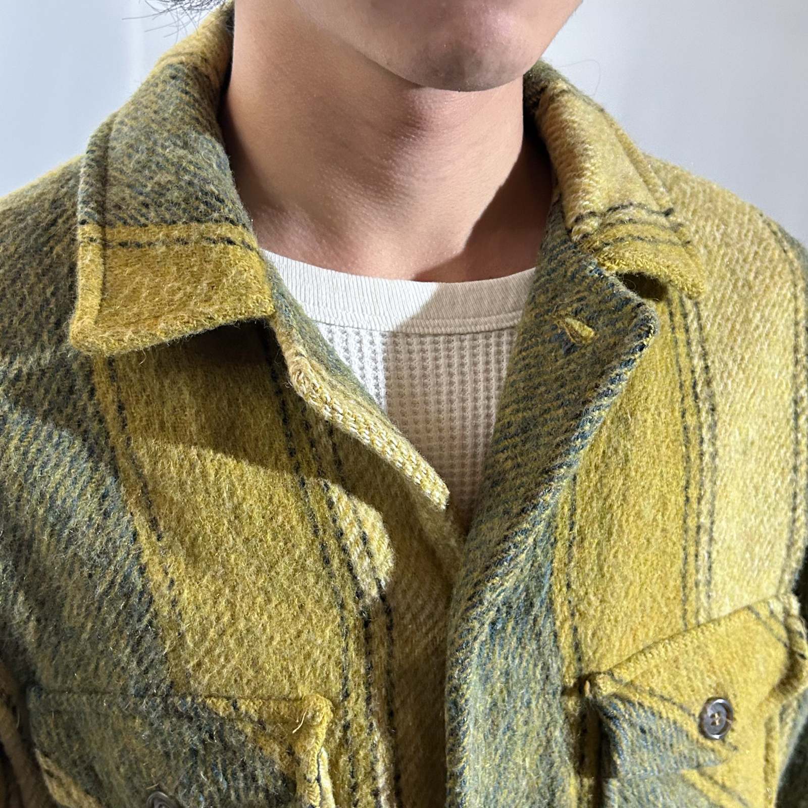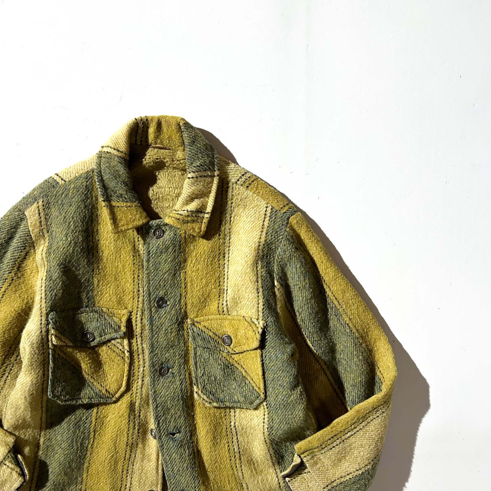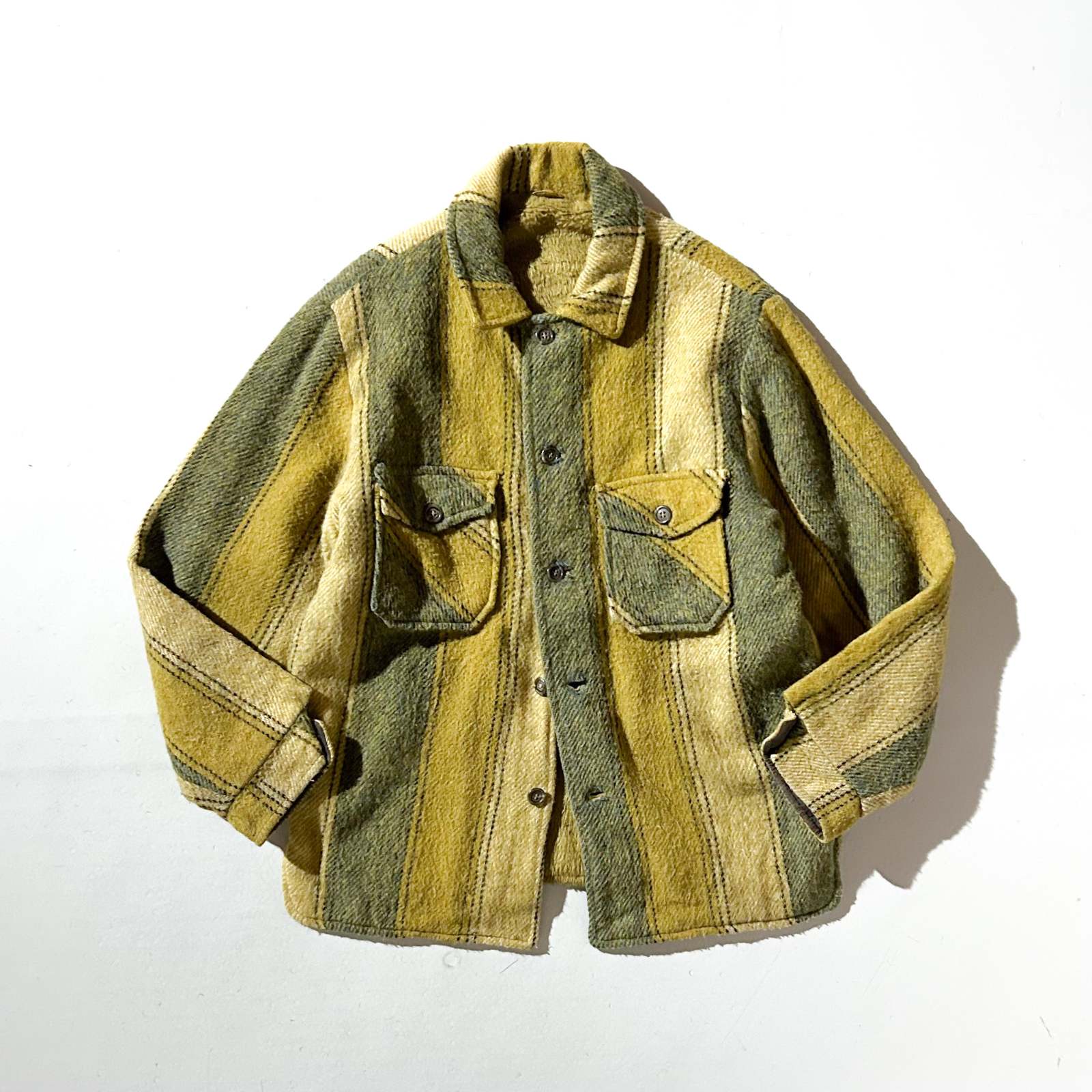 ~90's 裏フリース ストライプ ウール シャツ ジャケット
