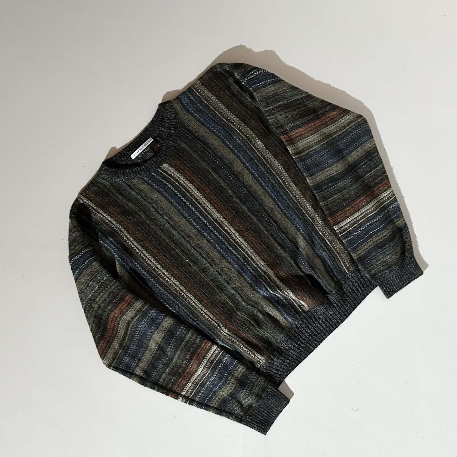 GEOFFREY BEENEのアクリル総柄ニットセーター。3Dニットのような立体的に見える織です。全体的に落ち着いた配色が使われていてとても大人っぽいです。