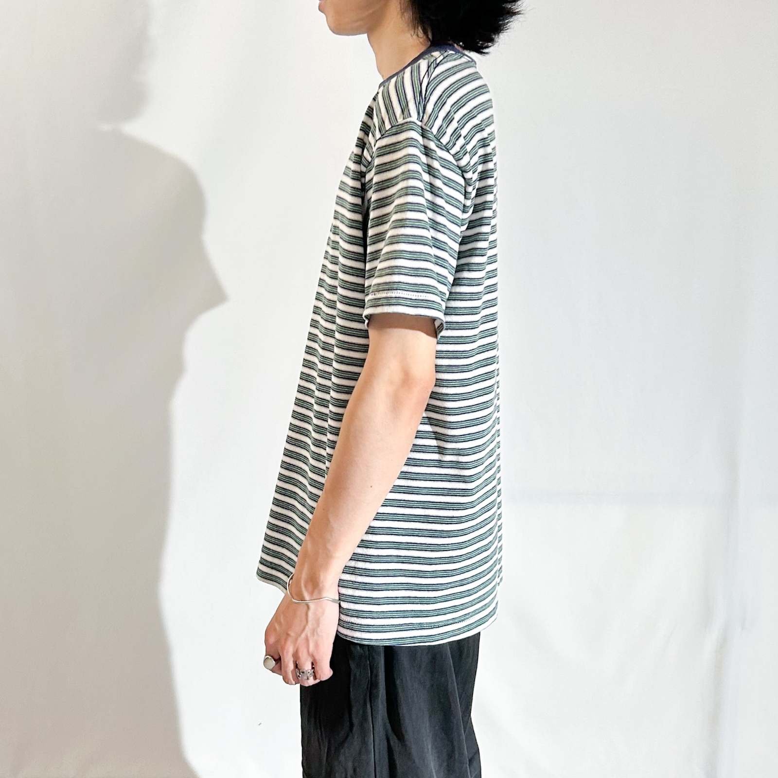 【Webスタッフ齋藤のおすすめ商品】短丈でボーダーTを探すならBasic Editionが一番といえるくらい形がいいものが多いです。グリーンとブルーのマルチボーダーでさわやかなカラーリング。チノパンやショーツと合わせるととてもかっこいいです。
