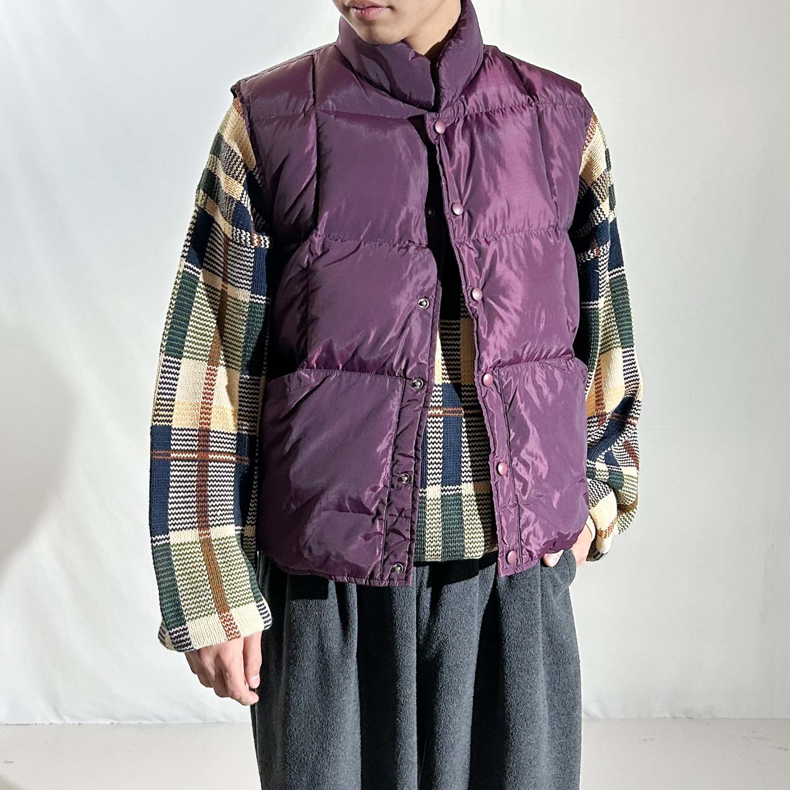 90's LANDS' END バーガンディ キルティング ダウン ベスト