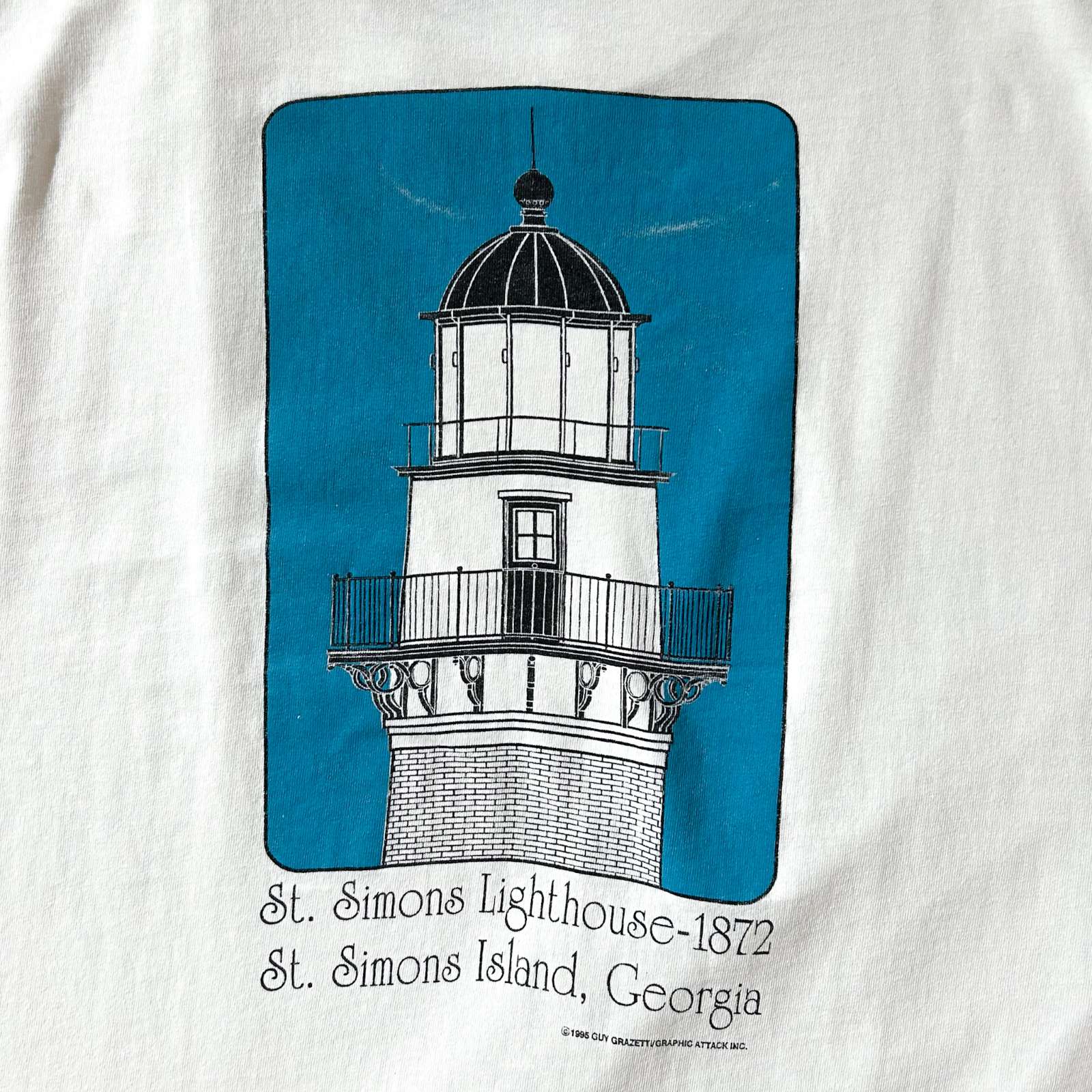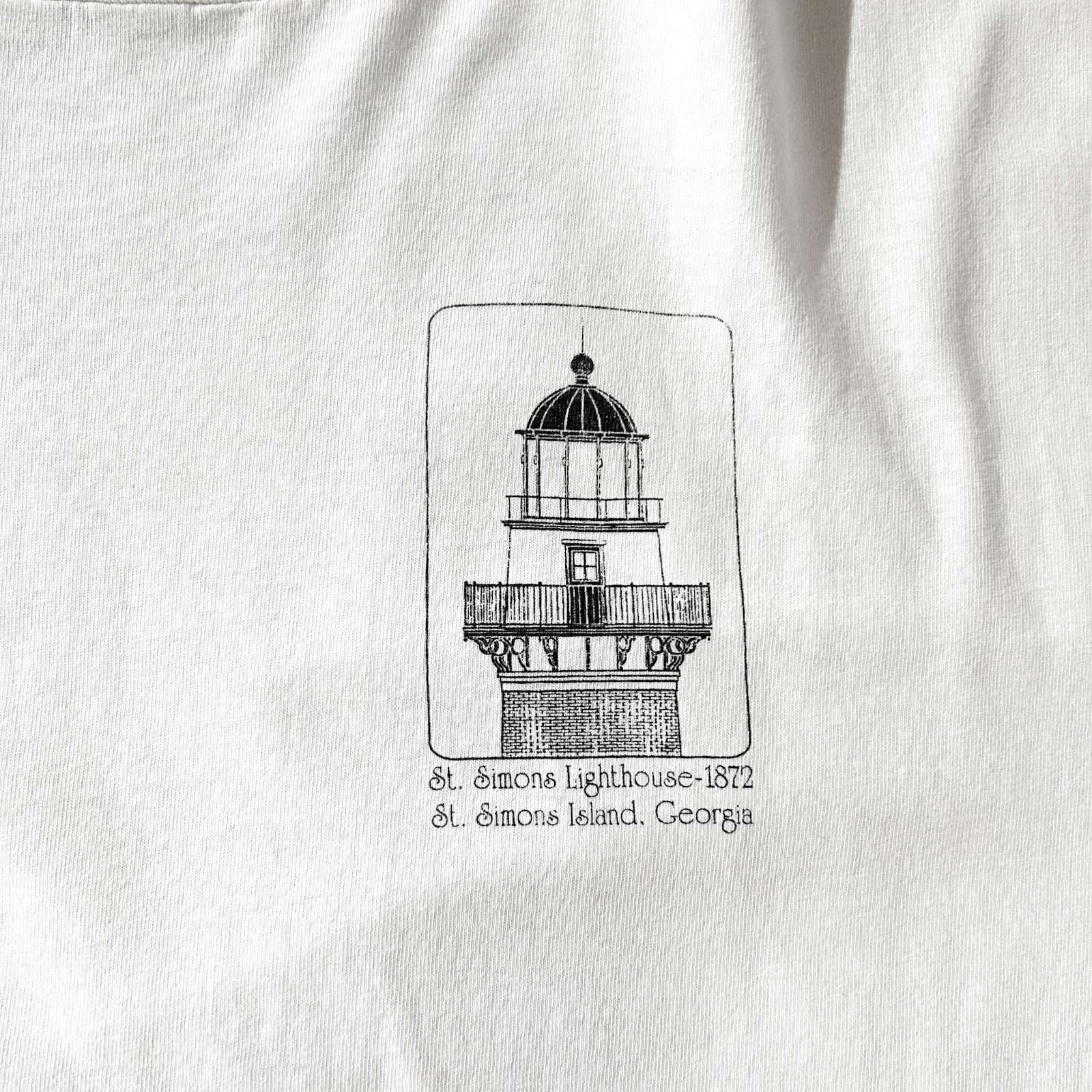90's "made in USA" JENSEN "ST.SIMONS LIGHTHOUSE-1872" 両面プリント Tシャツ