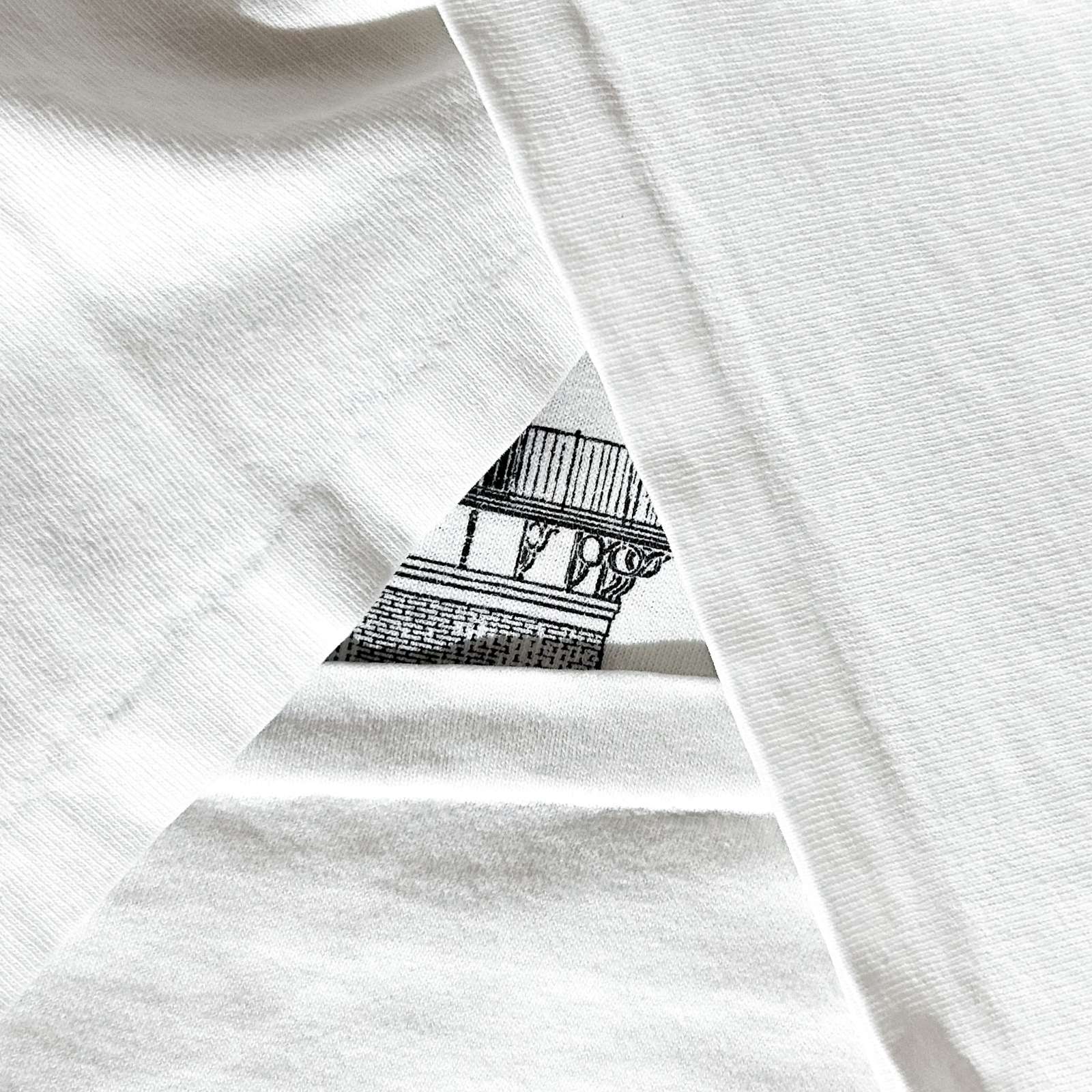 ジョージア州の島にある灯台がプリントされています。フロントはシンプルなワンポイントで、バックにブルーの背景になった灯台はコーディネートに落とし込みやすいですね。