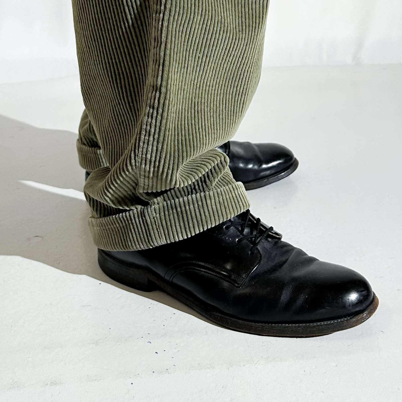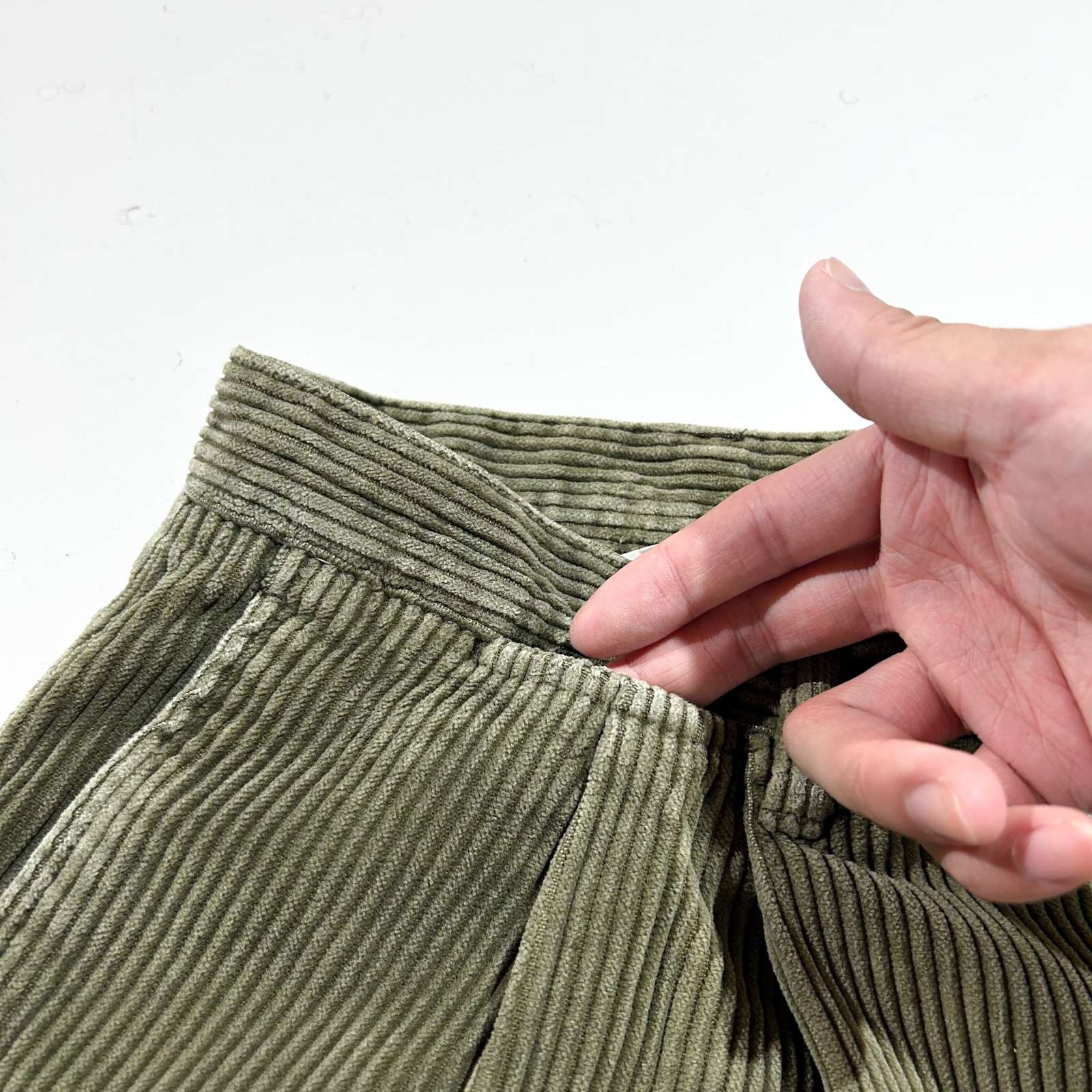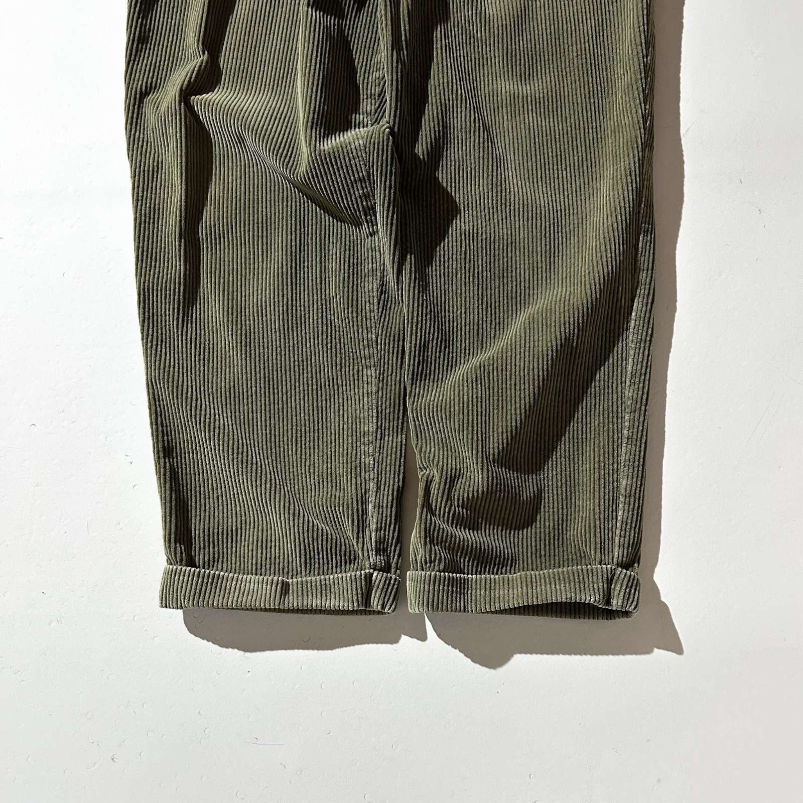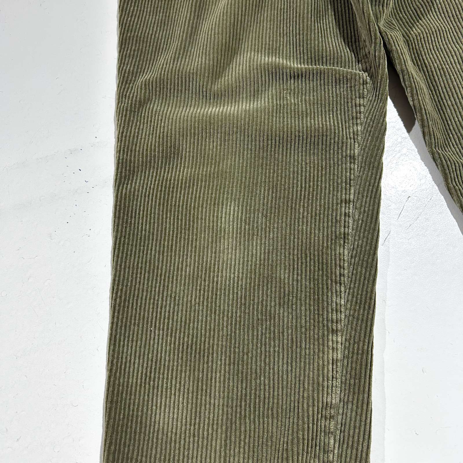 【齋藤おすすめ】オリーブカラーの太畝コーデュロイパンツ。2タックで太めのワタリとあせたカラーが今っぽい。秋から春にかけてずっと使えるカラーなのがいいですね。