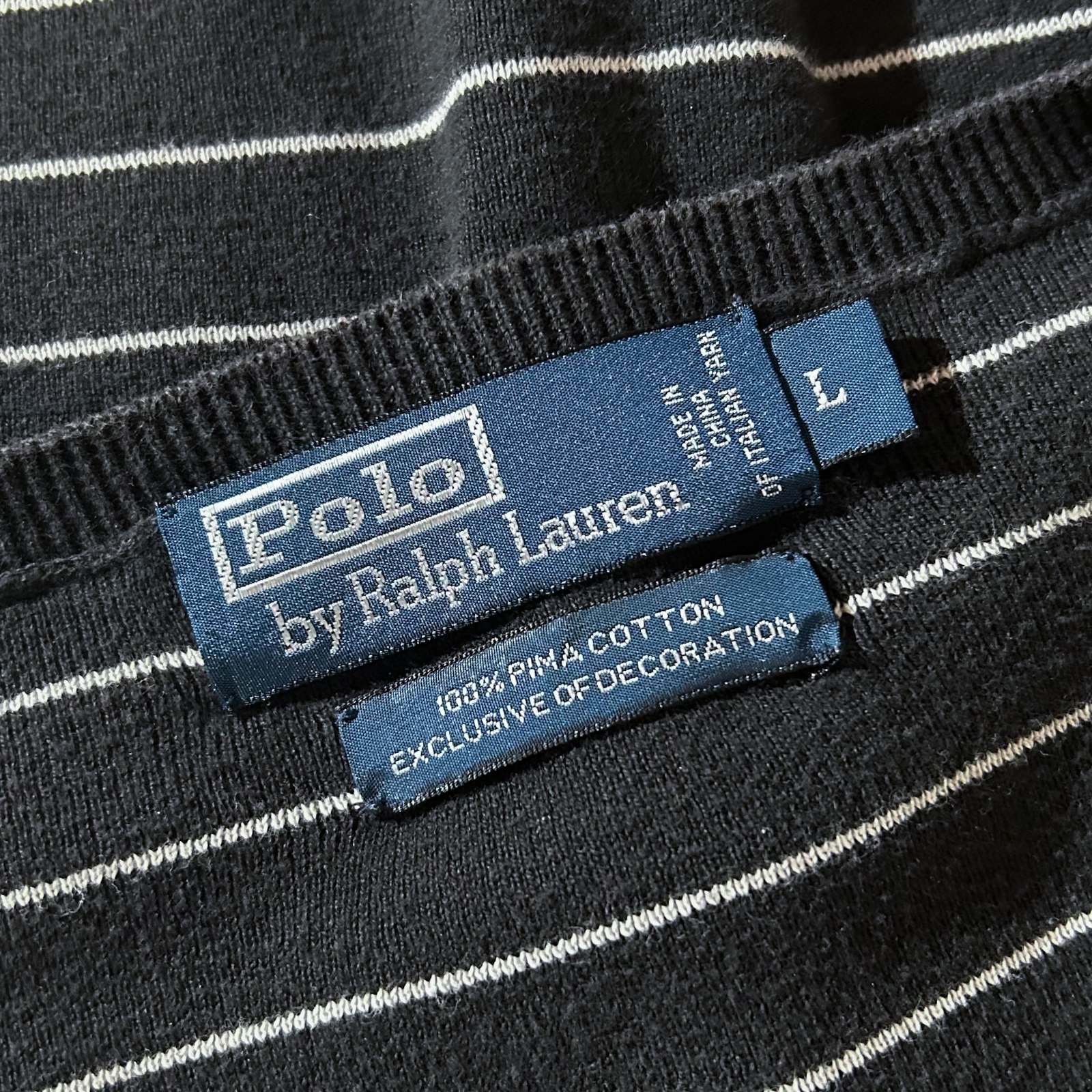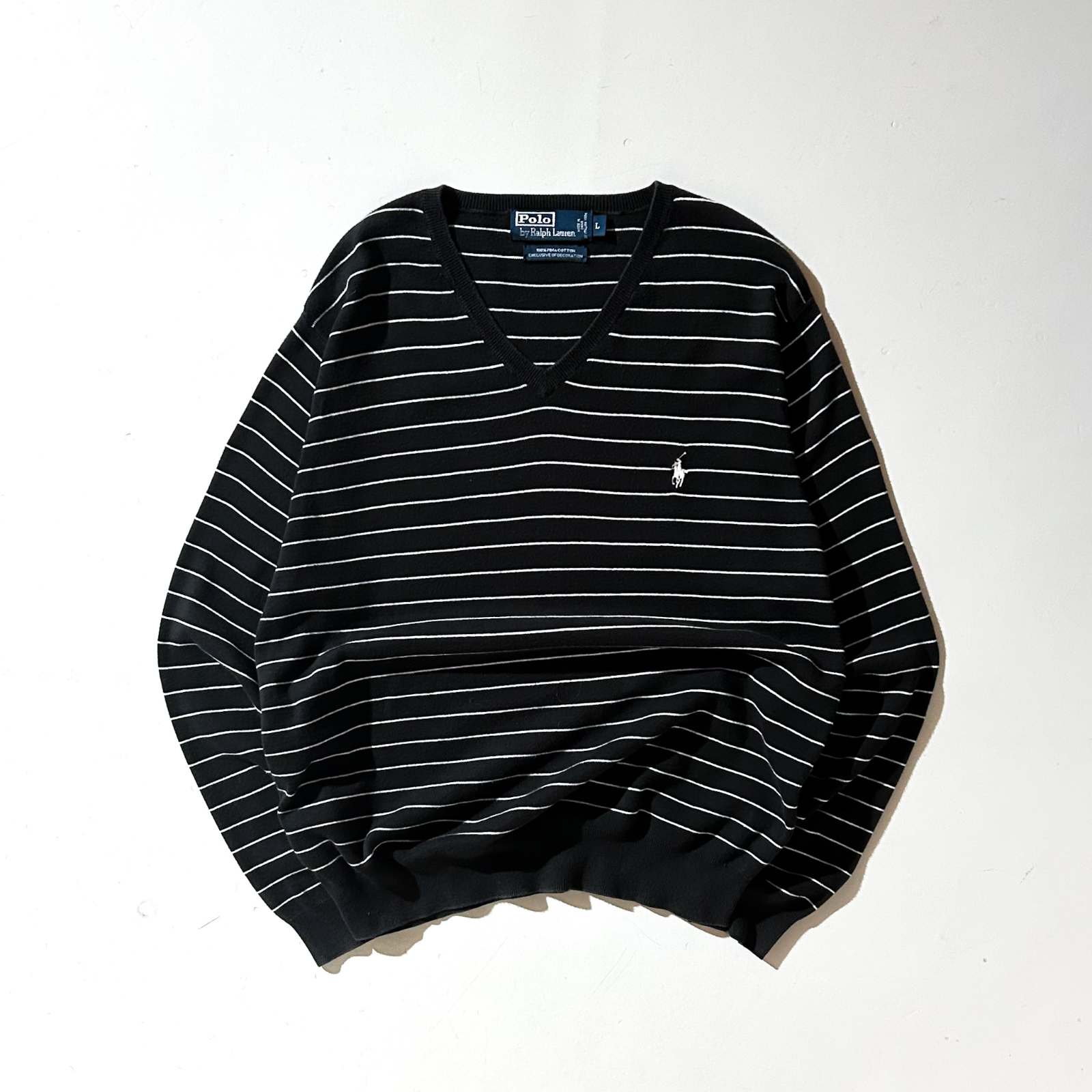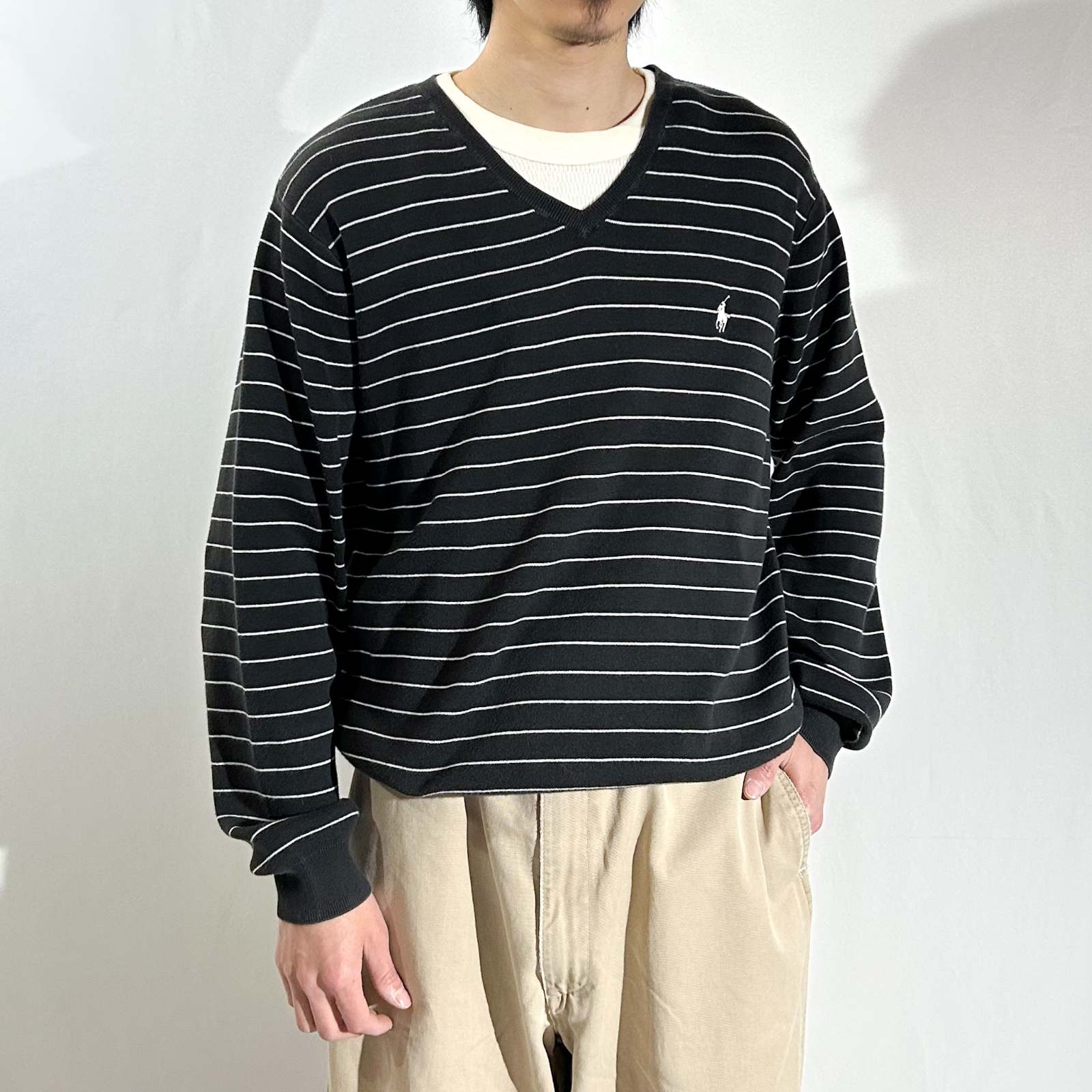90's~ OLD Ralph Lauren "EXCLUSIVE OF DECORATION" "Pima Cotton Italy yarn" ボーダー Vネック ニット セーター