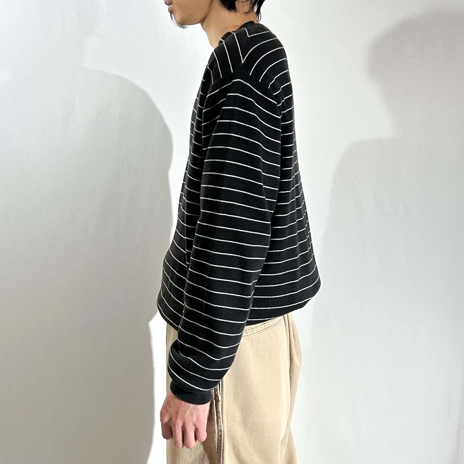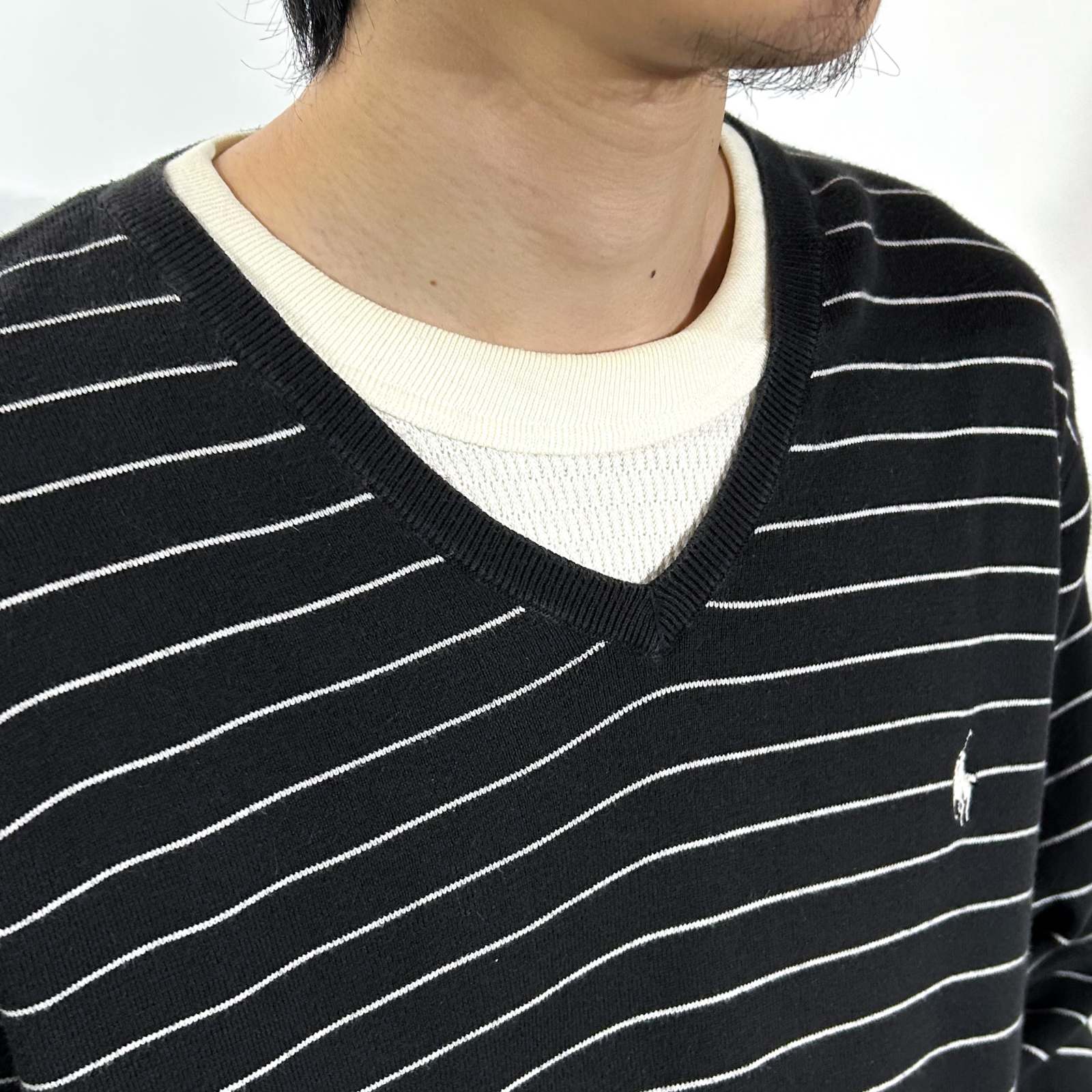 【Webスタッフ齋藤のおすすめ商品】Ralph Laurenのコットンボーダーニット。薄手のピマコットンを使用したキレイめに着ていただけるアイテム。ポニーのロゴもカラーではなく白になっているのが非常にありがたい。春から秋冬時期もインナーとして活躍できそうですね。