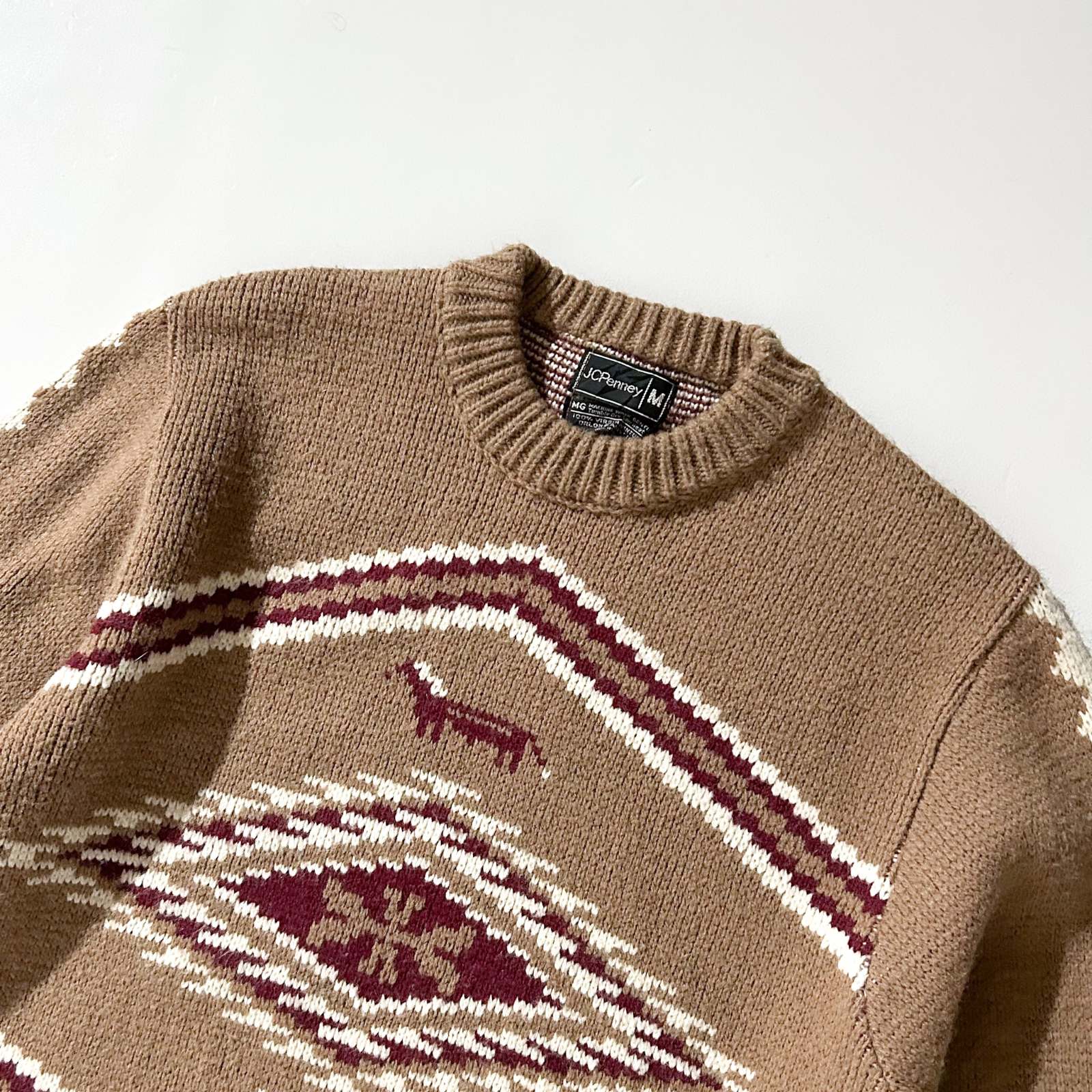 70's JCPenney 総柄 オーロンアクリル 馬 アニマル ニット セーター