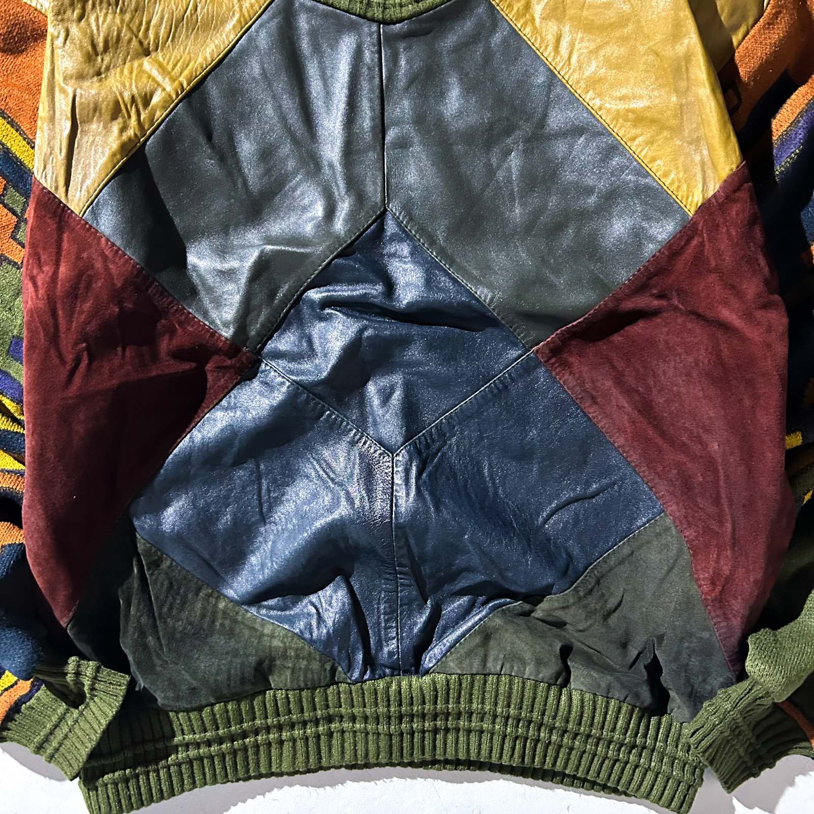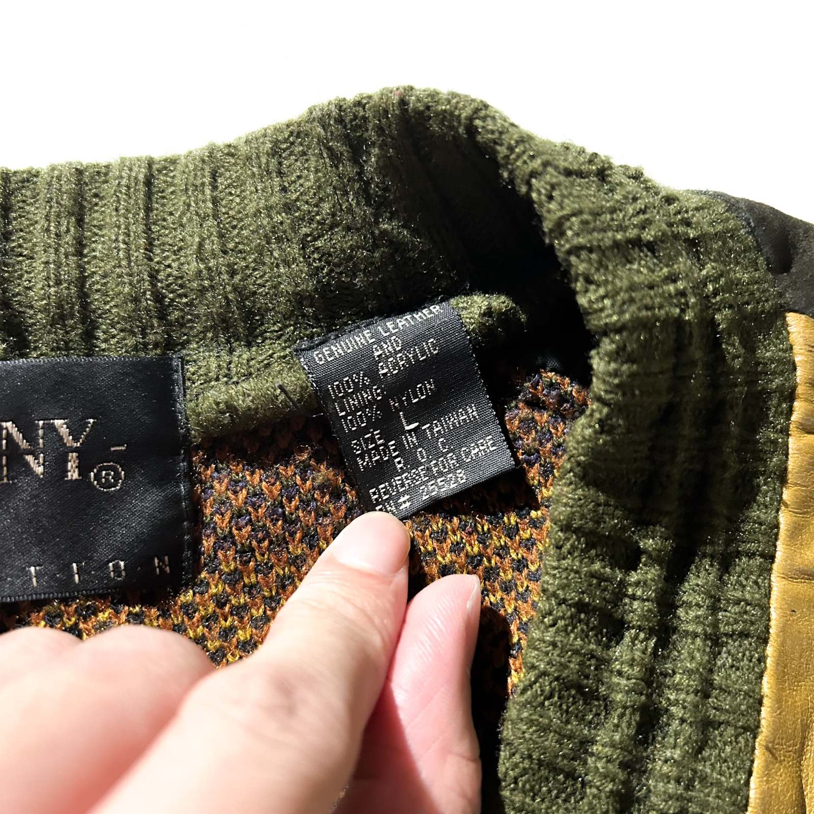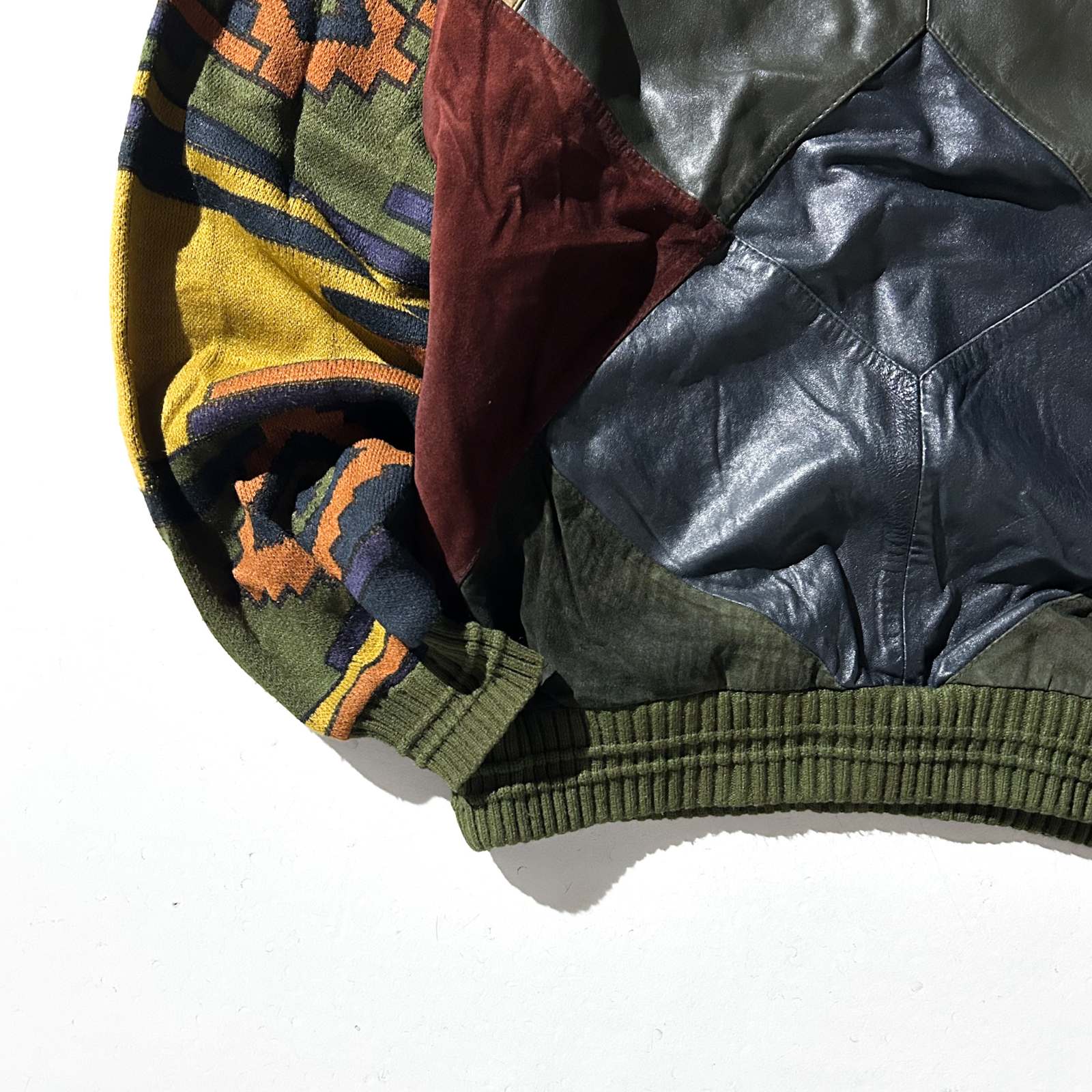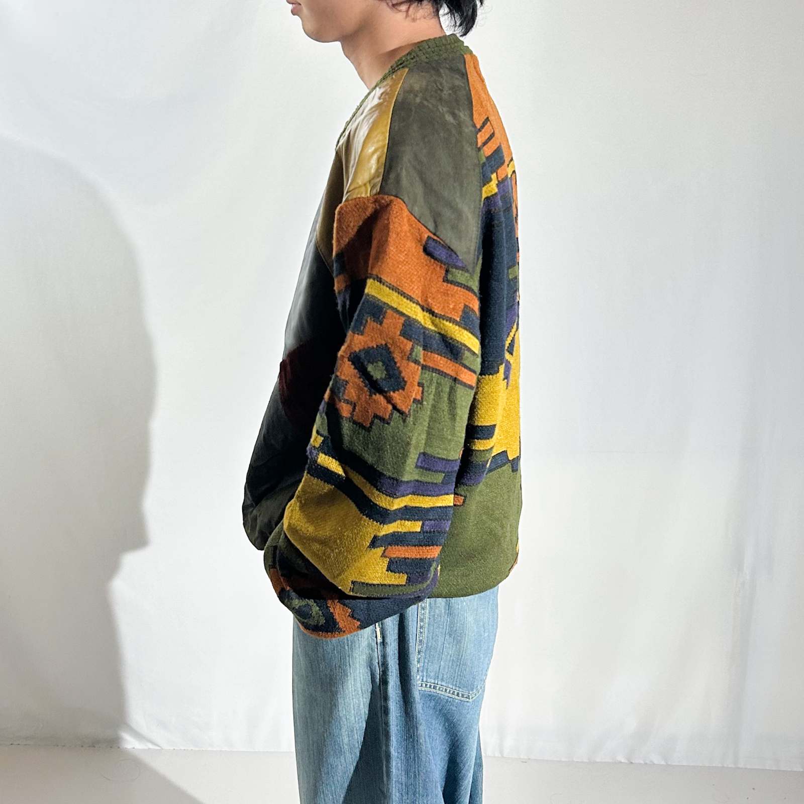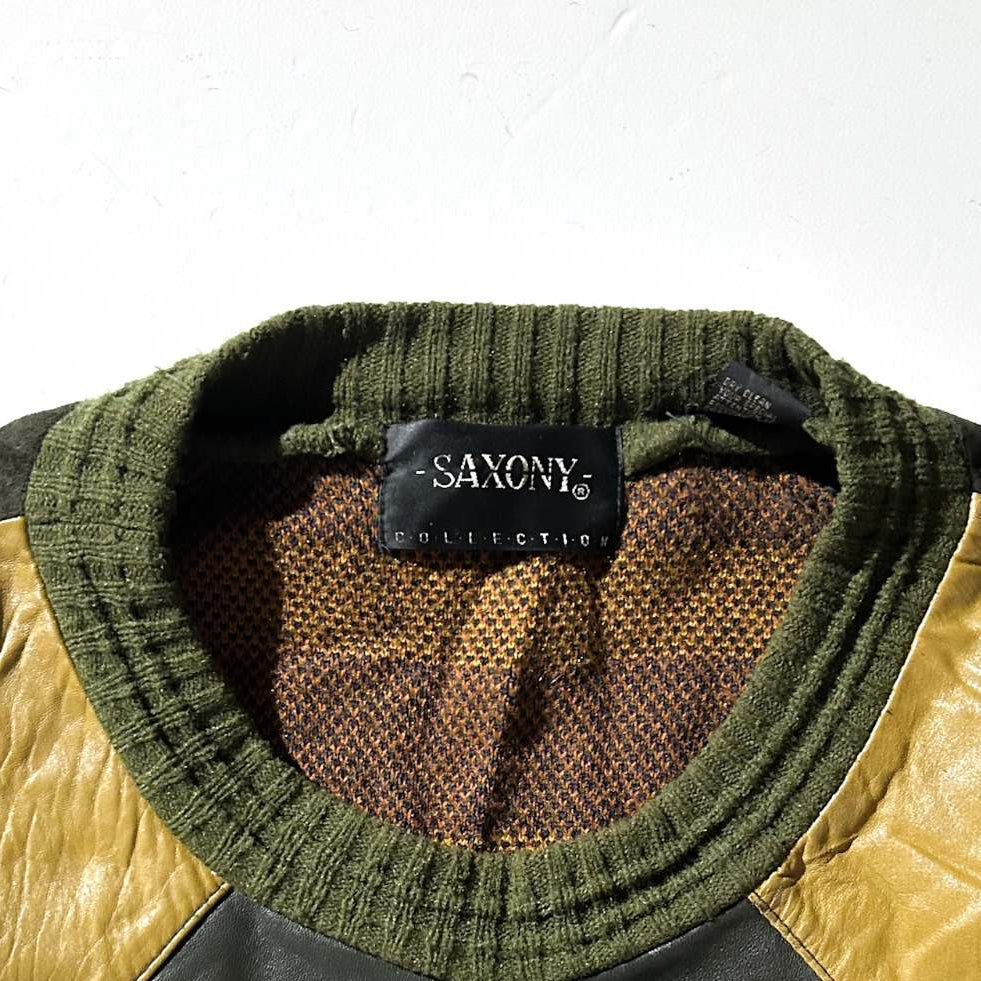 90's SAXONY レザー切替 デザイン ニット セーター