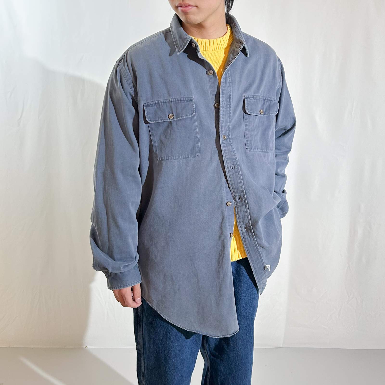 90's "made in SINGAPORE" OLD Ralph Lauren コットンツイル フラップ レギュラーカラー L/Sシャツ