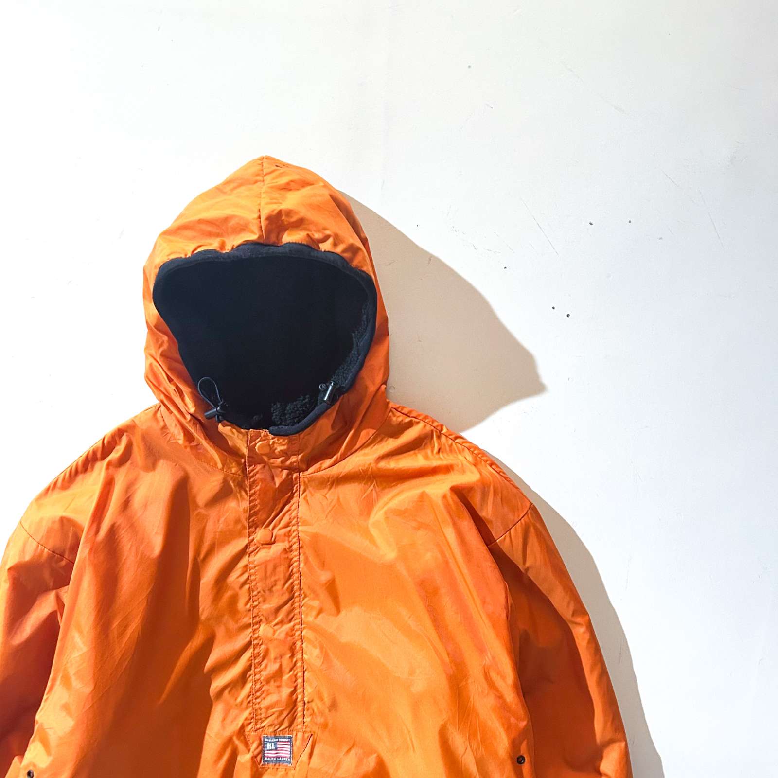 ポロジーンズのアノラックリバーシブル。アノラックでリバーシブルって珍しいですし、両面主役級の今時期マストで持っておきたいですね。古着ならではの雰囲気を楽しみながら、トレンドに左右されないスタイルを確立できるアイテムです。170cm細身のモデルで肩に落ち感、身幅にゆとり、着丈は裾のドローコードで短丈に変更可能、袖は溜まるサイズ感。