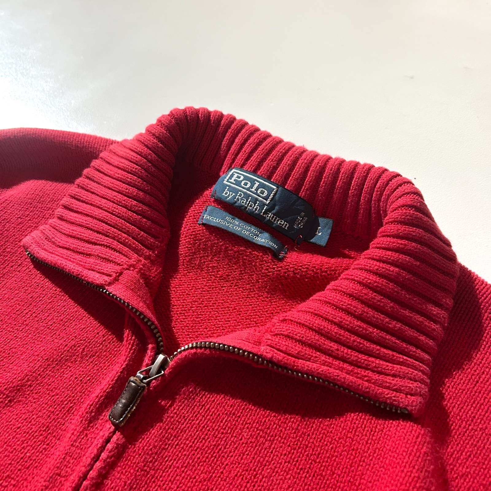 Ralph Lauren ハーフジップ リブ コットンニット セーター(レッド)