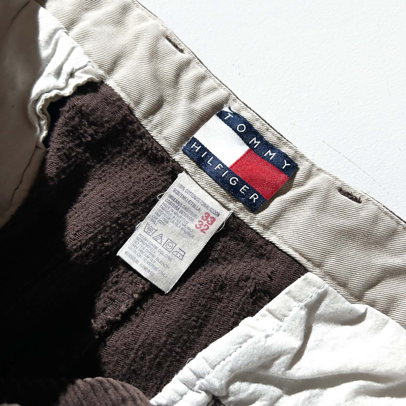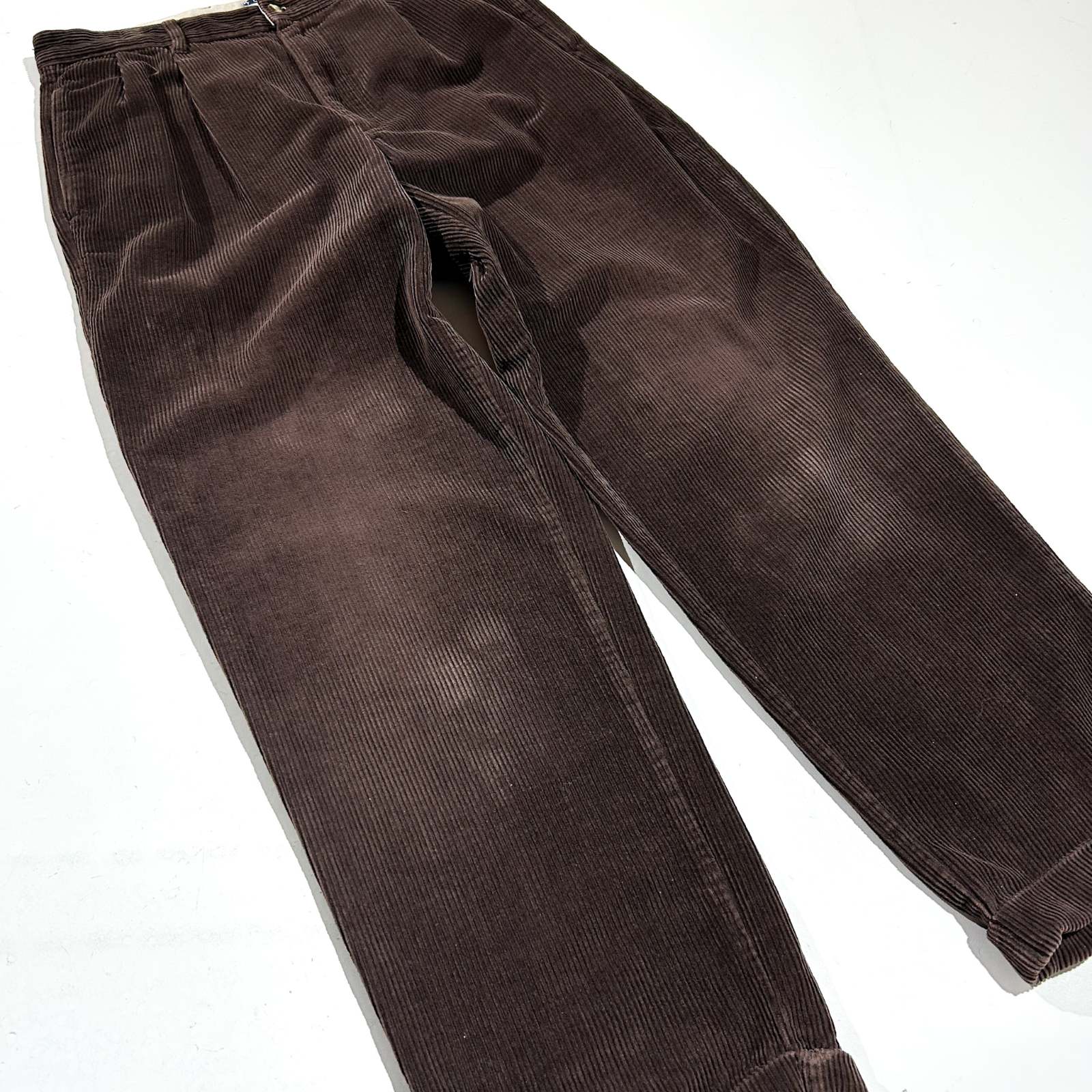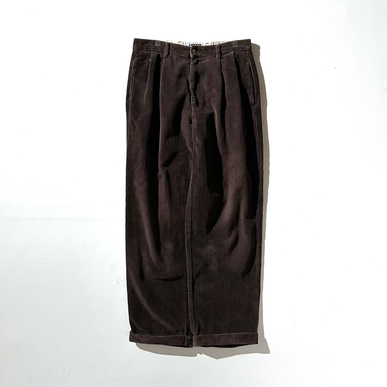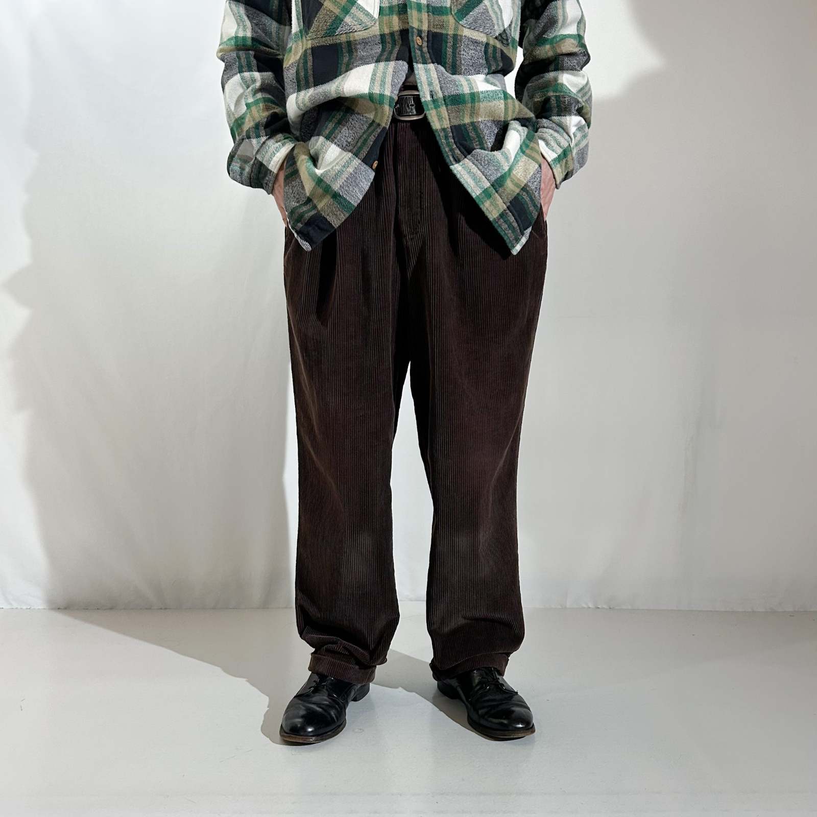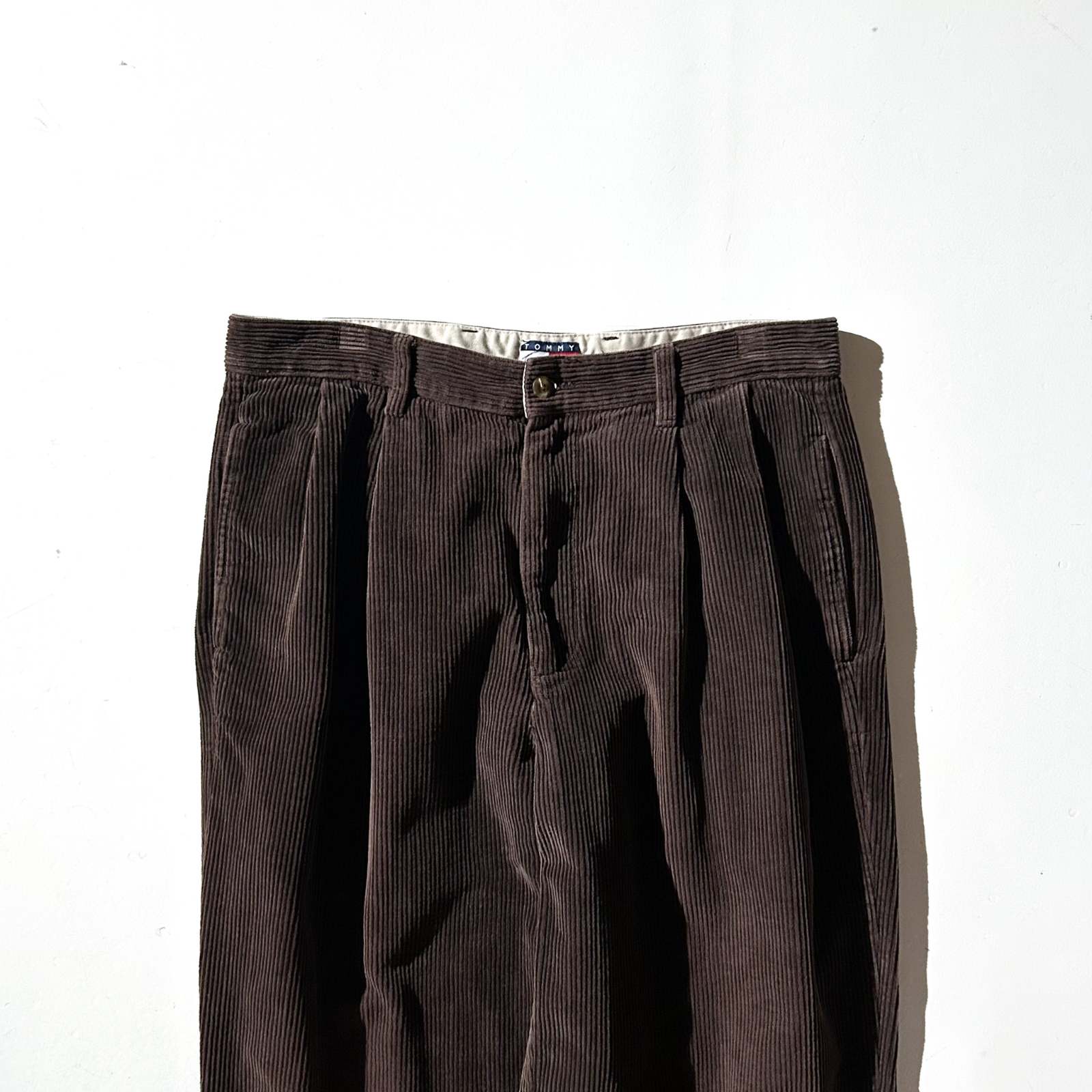 00's TOMMY HILFIGER ブラウン ワイド 2タック 太畝 コーデュロイ パンツ