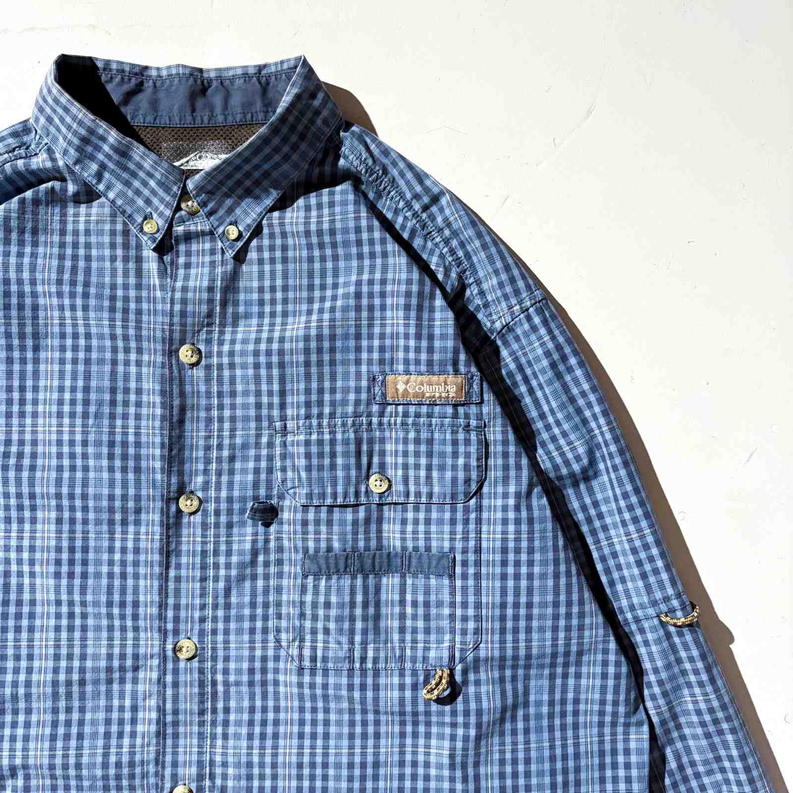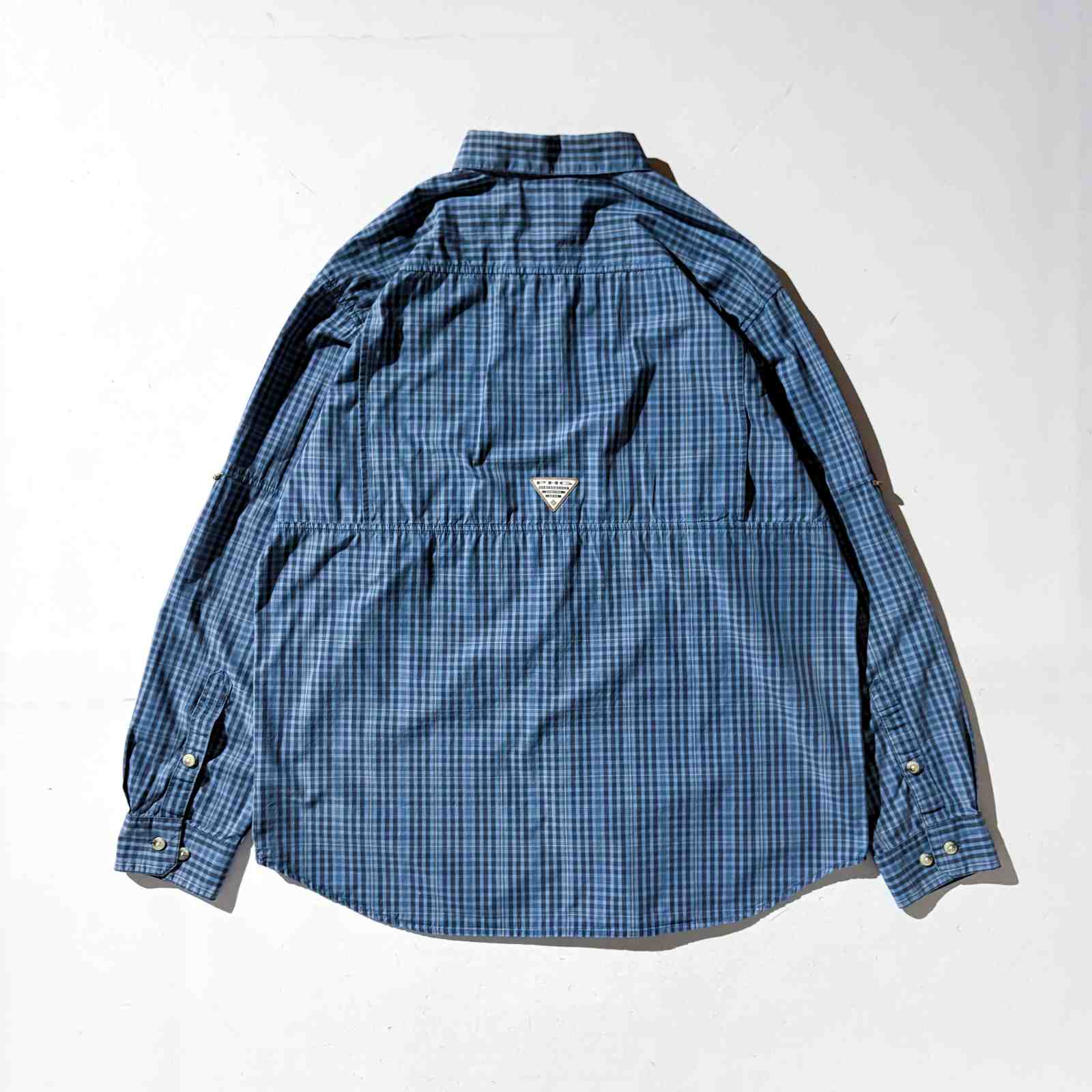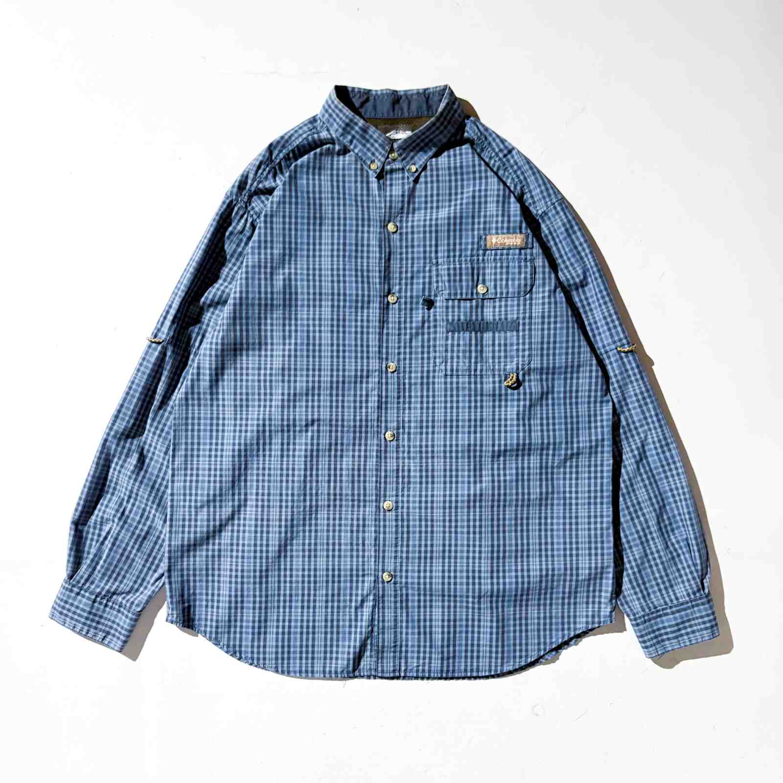 近年もののコロンビアのチェックシャツ。フィッシング向けのPFGと打って変わって、コットン素材に薬莢用のポケットがシンプルなスタイリングに引き立ちますね。