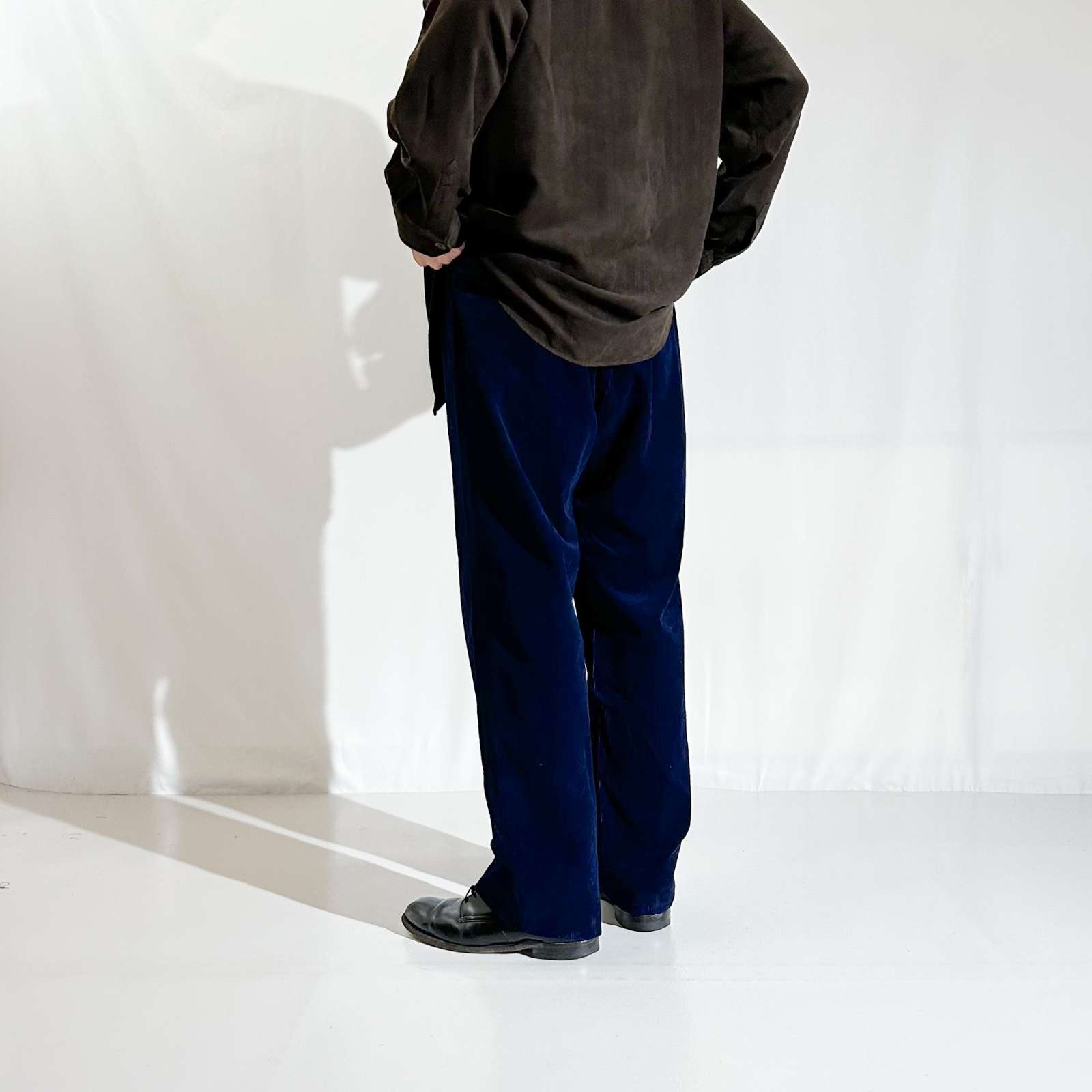 Jack Nicklausが展開する「GOLDEN BEAR」ラインから、珍しいコーデュロイパンツが入荷しました。ゴルフウェア中心のブランドながら、こうしたカジュアルパンツも手掛けていたようです。カラーは大人な明るめネイビー。ベルトループがなく、サイドアジャスター仕様のため、W30〜33程度まで対応可能です。シルエットはゴルフブランドらしく、すっとしたストレート仕様。スラックスのように綺麗に見える上品なラインで、トラッドなスタイルにも馴染みます。