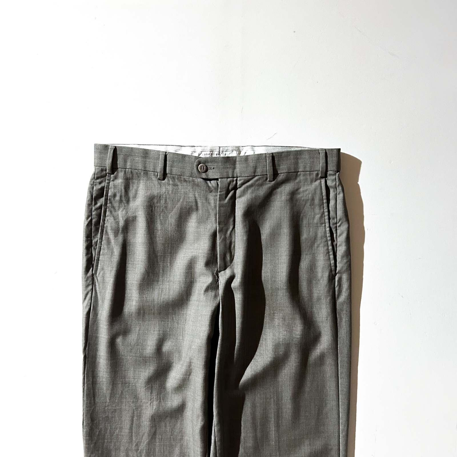【Webスタッフ大鹿のおすすめ商品】イタリア製スラックスを語る上で外せない存在、Zanella(ザネッラ)。 こちらは、イタリアを代表する老舗生地メーカー「Vitale Barberis Canonico(ヴィターレ・バルベリス・カノニコ)」社製の生地を使用した一本です。 ノータック仕様でウエストからストンと落ちる美しい微テーパードシルエット。 渡り幅はスッキリとしており、Levi’s 505のようなクリーンな印象。 カラーは合わせやすいグレーカラーで、オンオフ問わず活躍します。 特筆すべきは、ウール100%ながらまるでレーヨンのようなドレープ感や揺れ感がある上質な生地感。 揺れや光沢感があり、見た目にも高級感が漂います。
