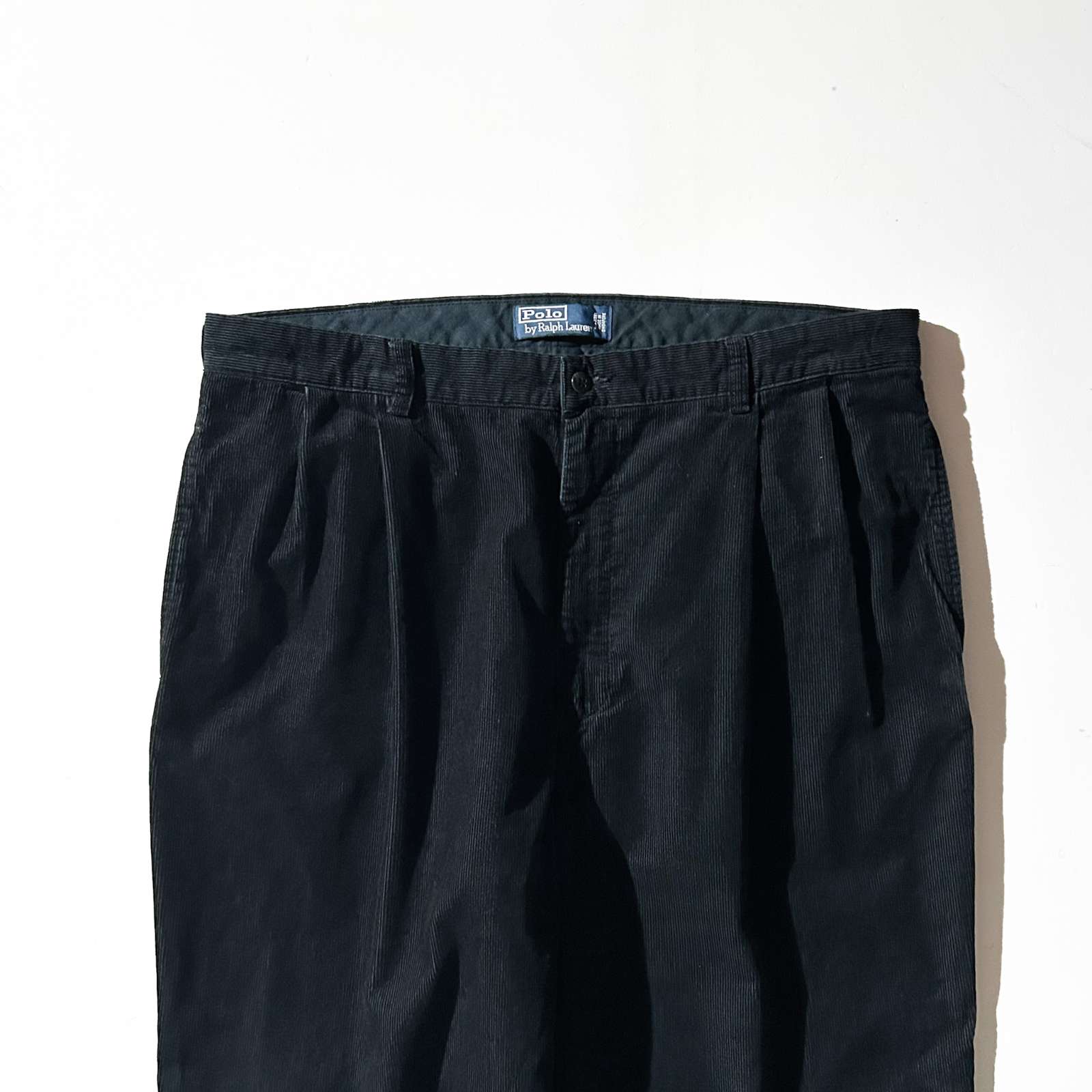 90's~ "made in SINGAPORE" OLD RALPH LAUREN ブラック 2タック コーデュロイ パンツ
