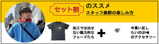 フェードTのラフな雰囲気にリングを重ねることで、手元まで計算されたスタイルに。シンプルなのに個性が光る、大人のカジュアルセットです。
