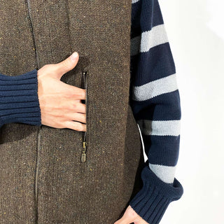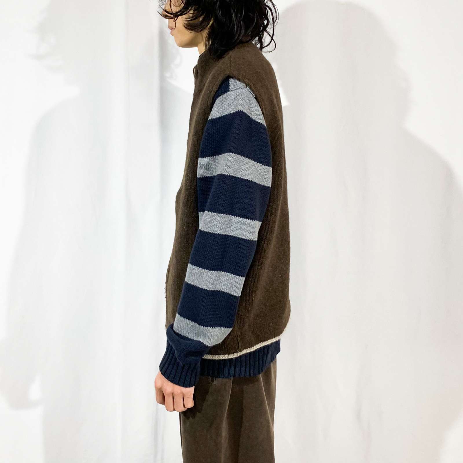 ランズエンドのニットベストになります。 ネップ混を使って作られた生地は独特のぽつぽつとした節が模様のように広がります。表情がありながら綺麗めな印象のネップ素材は、カジュアルコーデにぴったりです。カジュアルなコートに鮮やかな色を差すと、もっさりせずおしゃれに着こなすことが出来てしまうアイテムです。