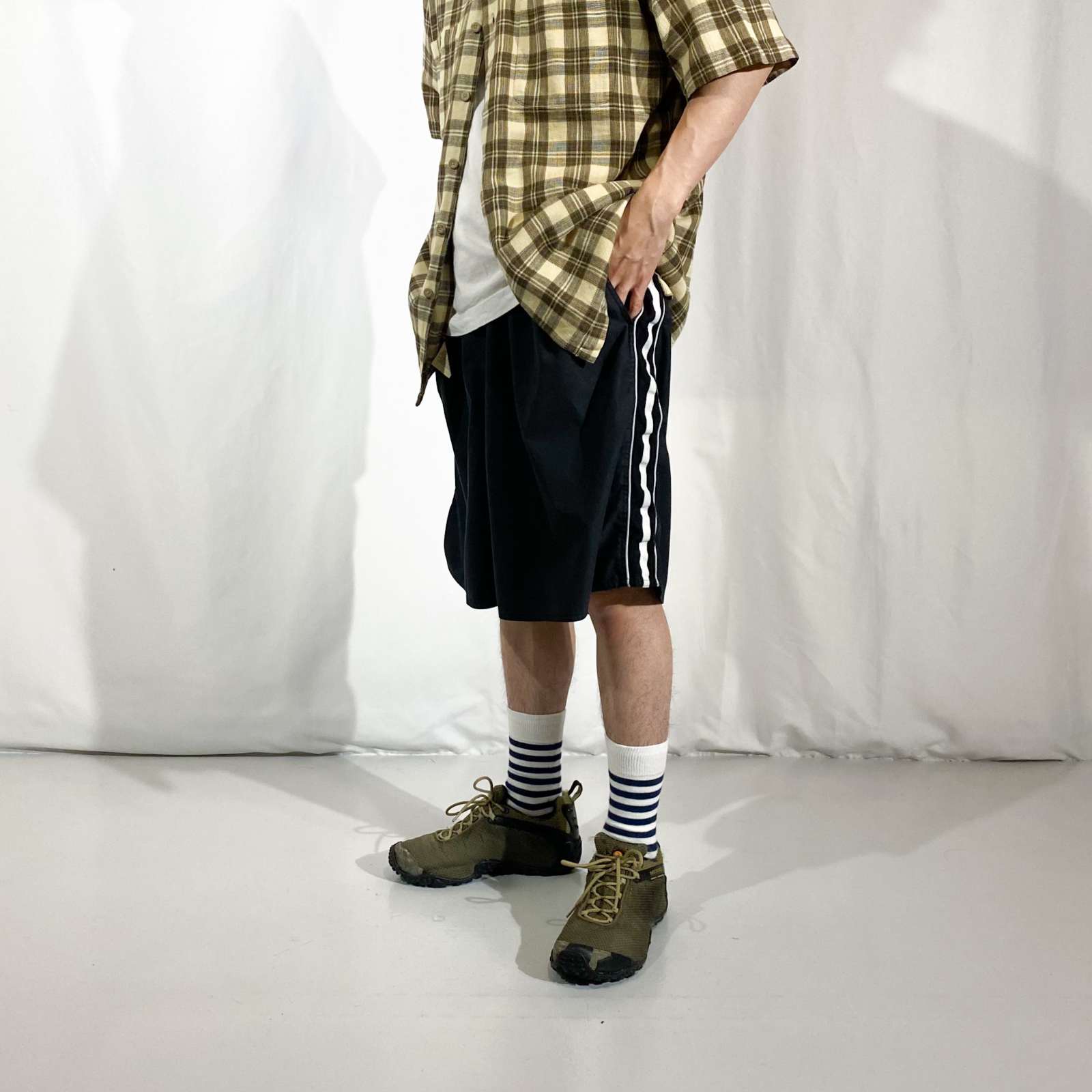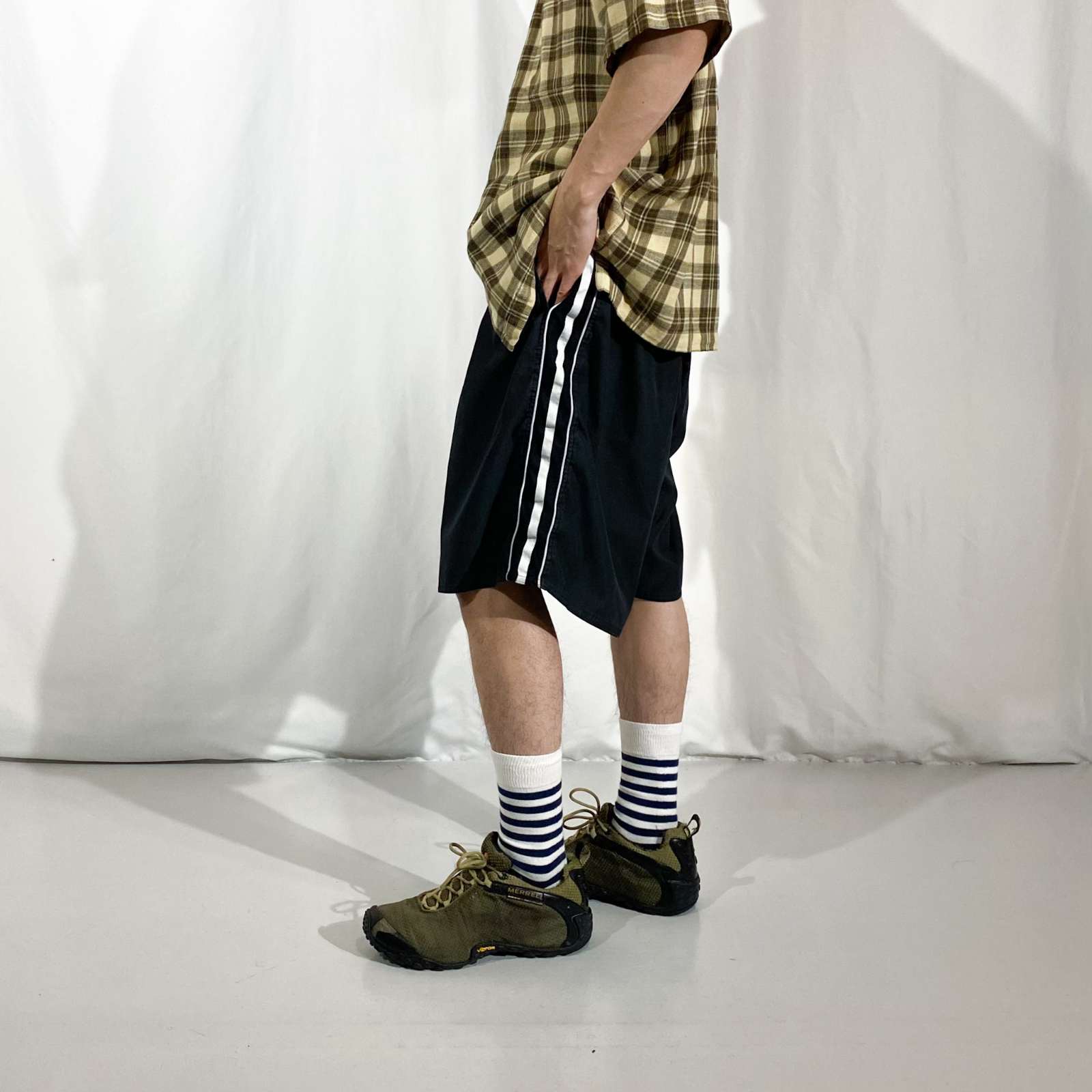 ブラック×ホワイト サイドライン ワイド ピーチスキン ショーツ
