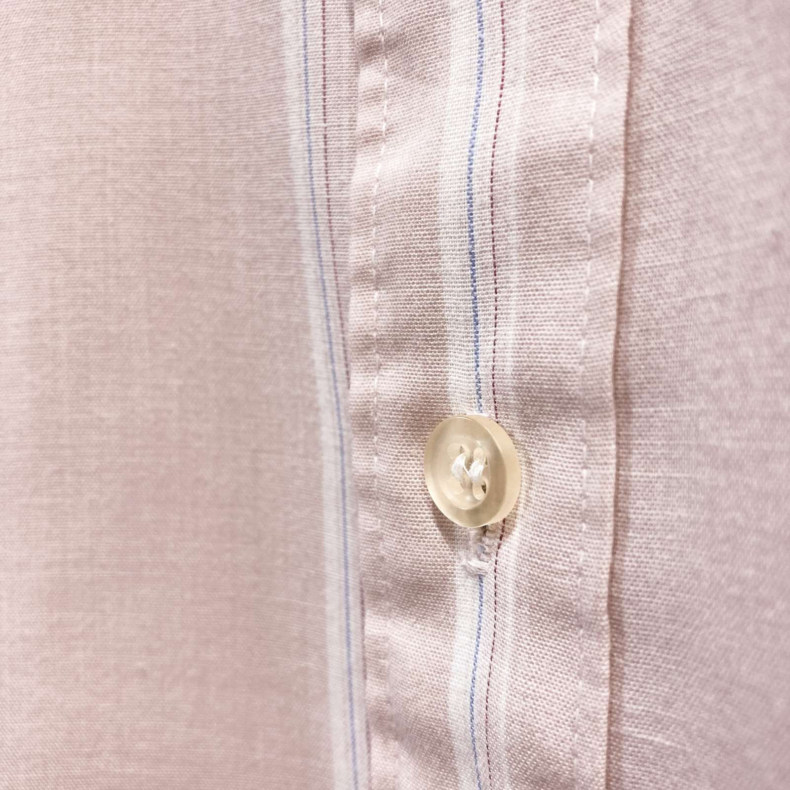 淡いピンクが春を感じさせる長袖シャツ。生地も薄く軽やかに着れます。