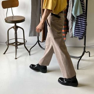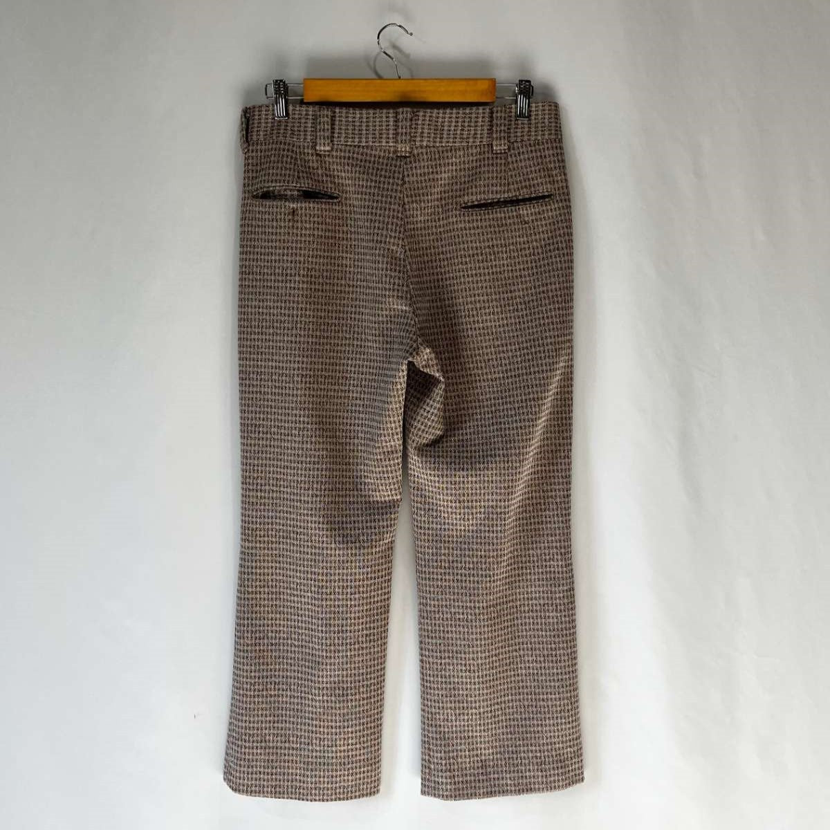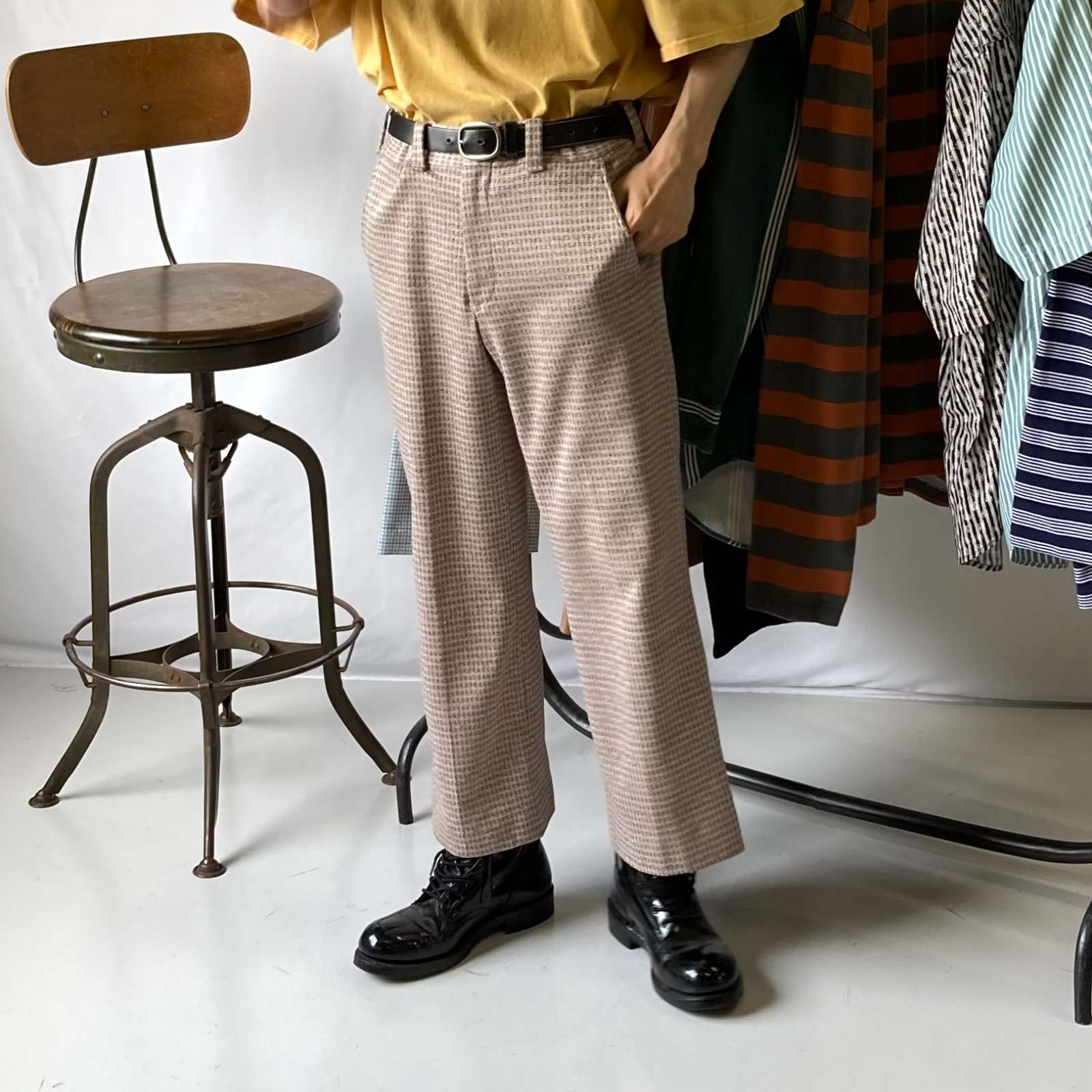70年代のポリエステルが使われたチェックのフレアスラックス。
