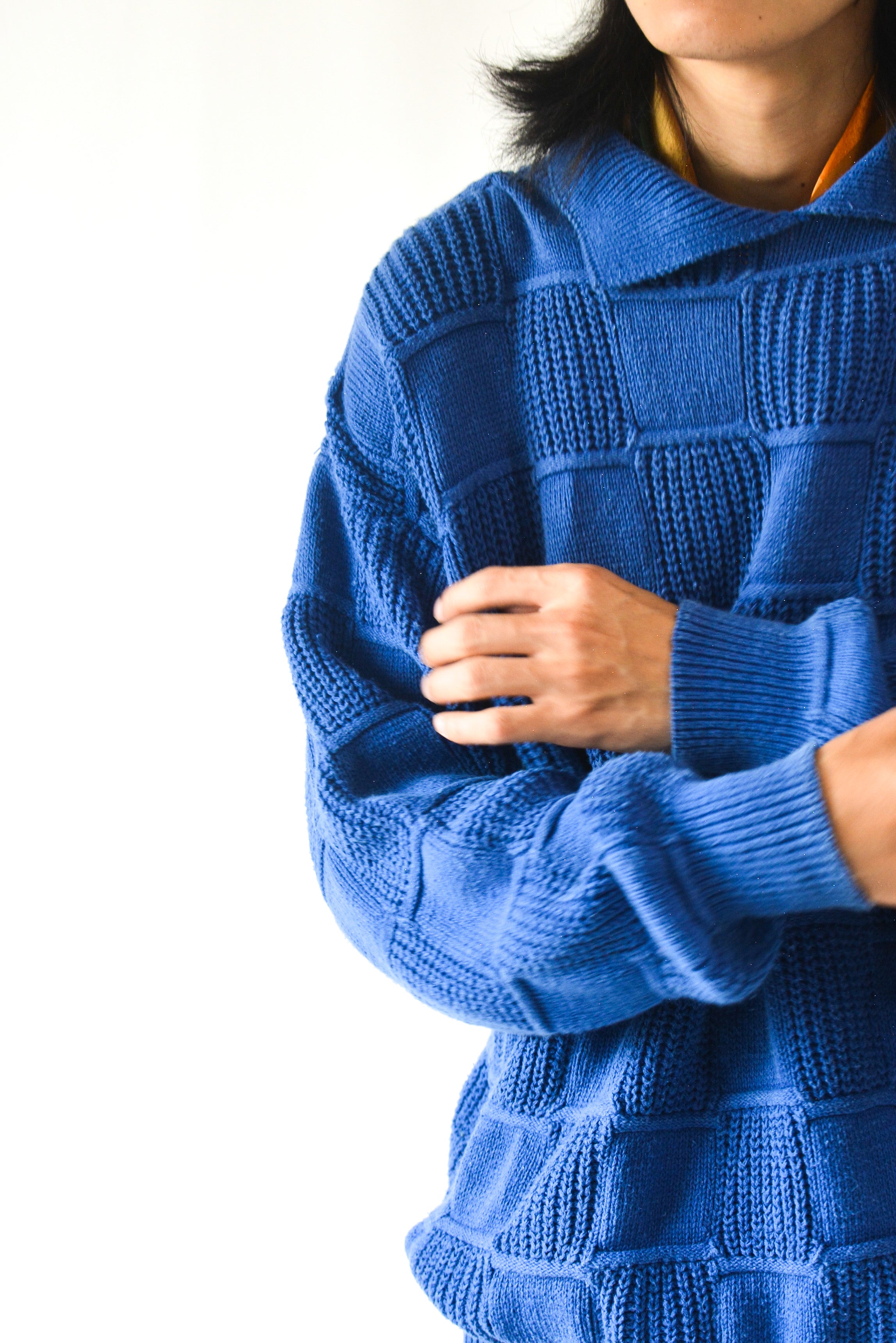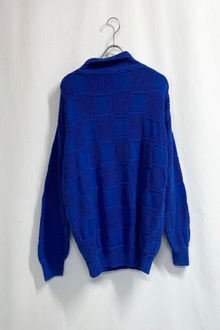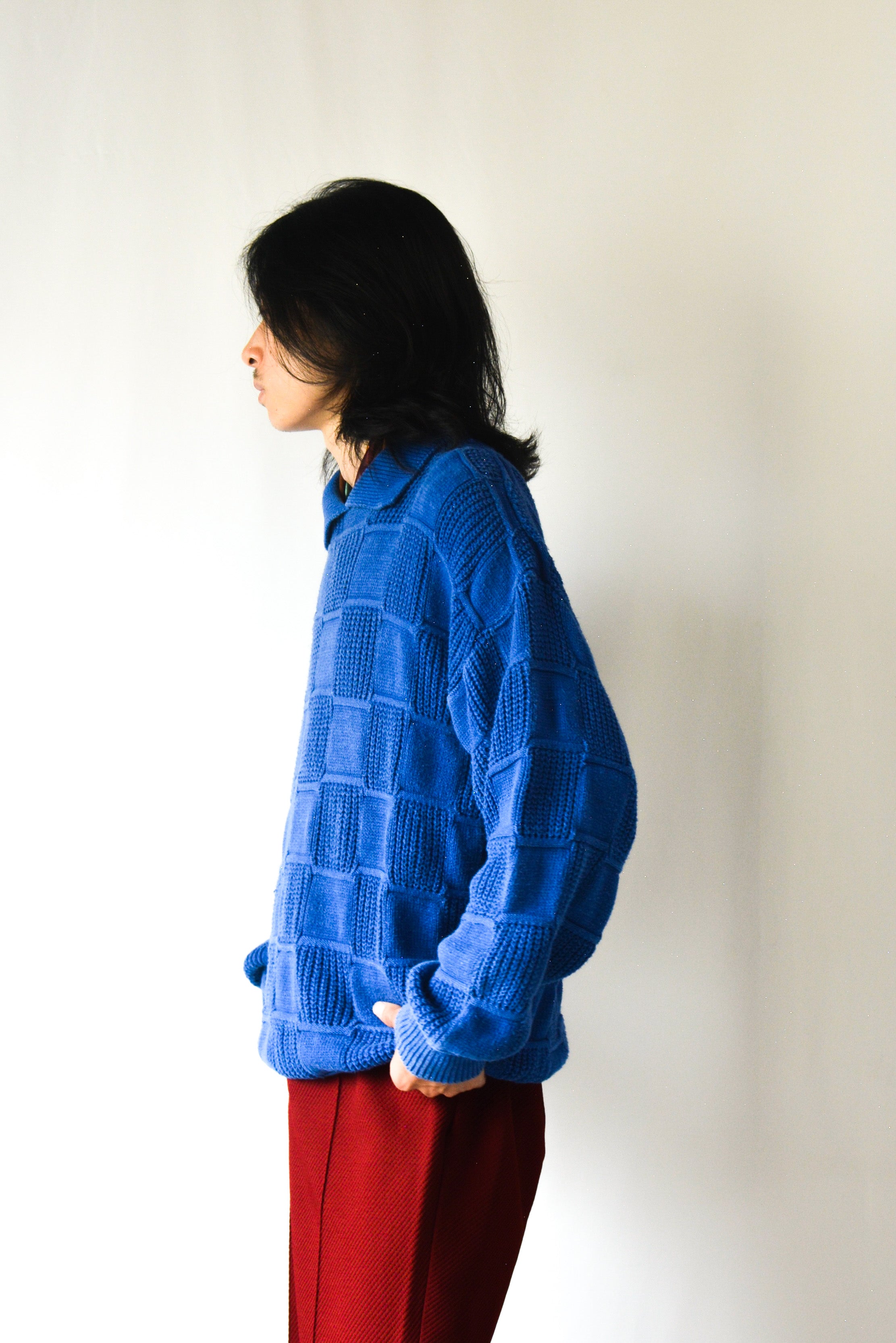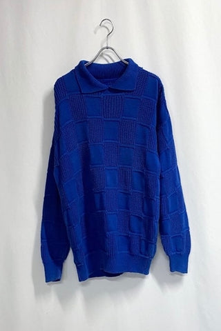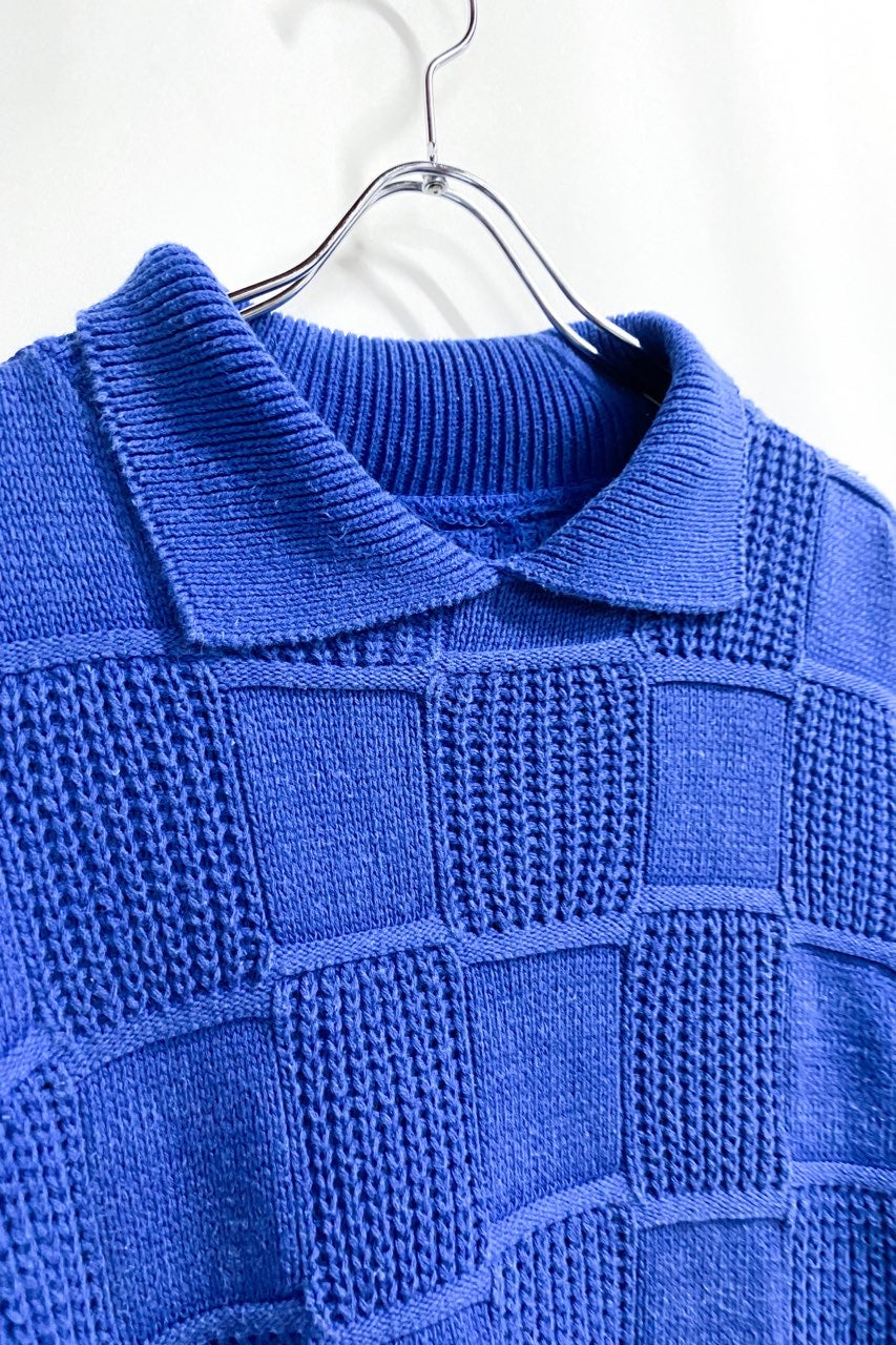 古着 ドルマンスリーブ ブルー スクエア ニット