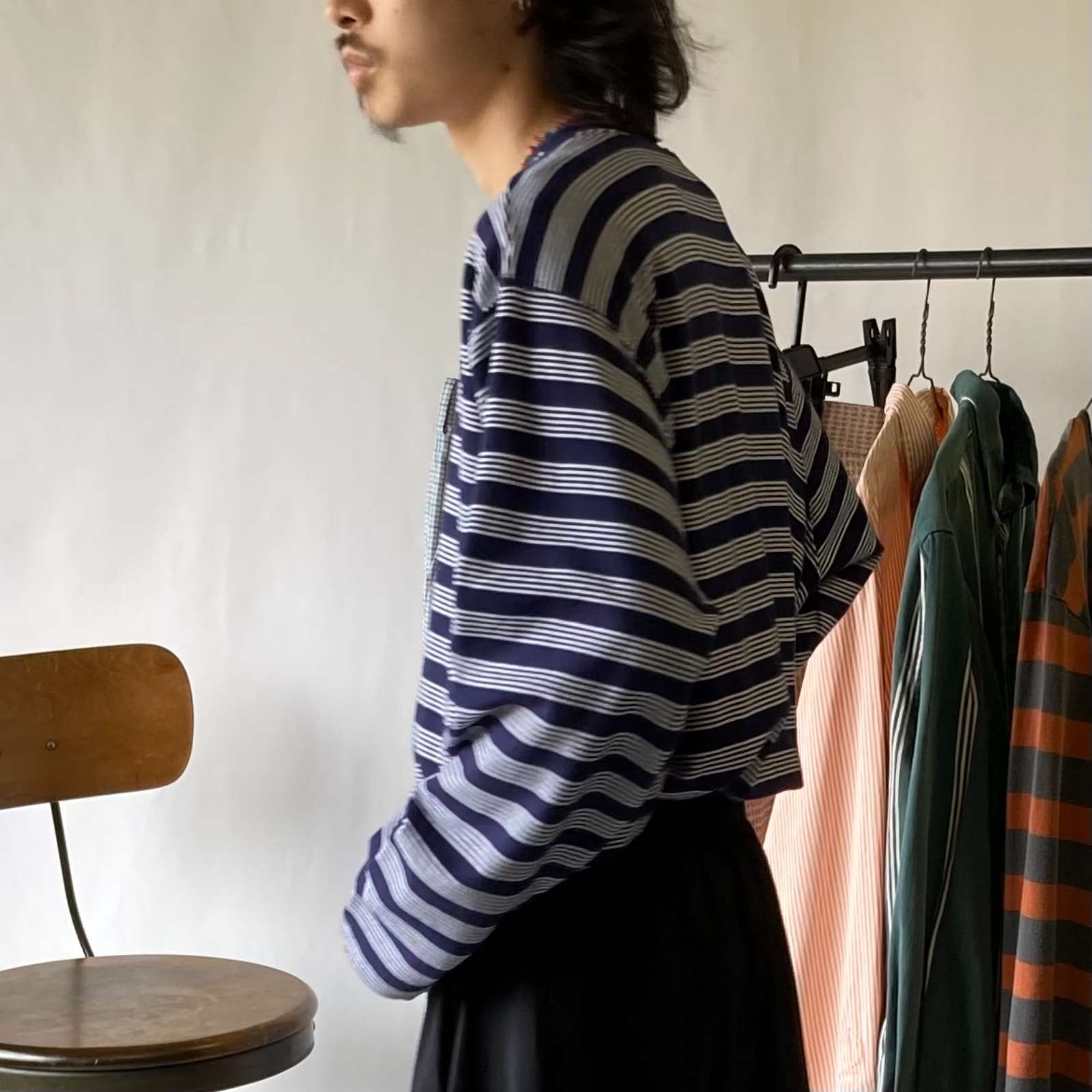 白と紺のコントラストが可愛いボーダーのカットソー。カジュアルにもモードにも合います。