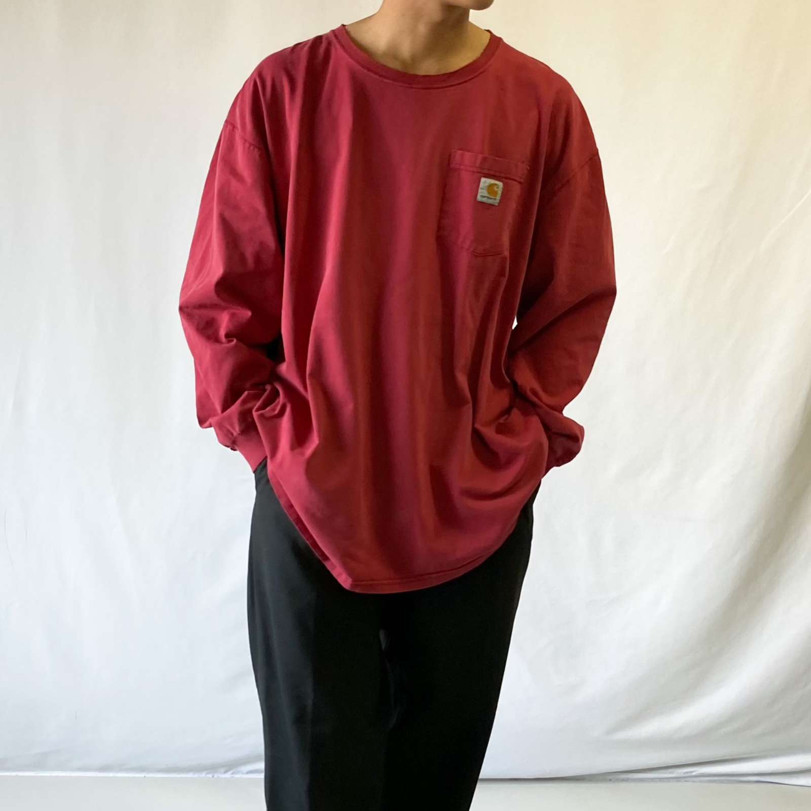 古着 00's Carhartt ボロポケットカットソー(レッド)