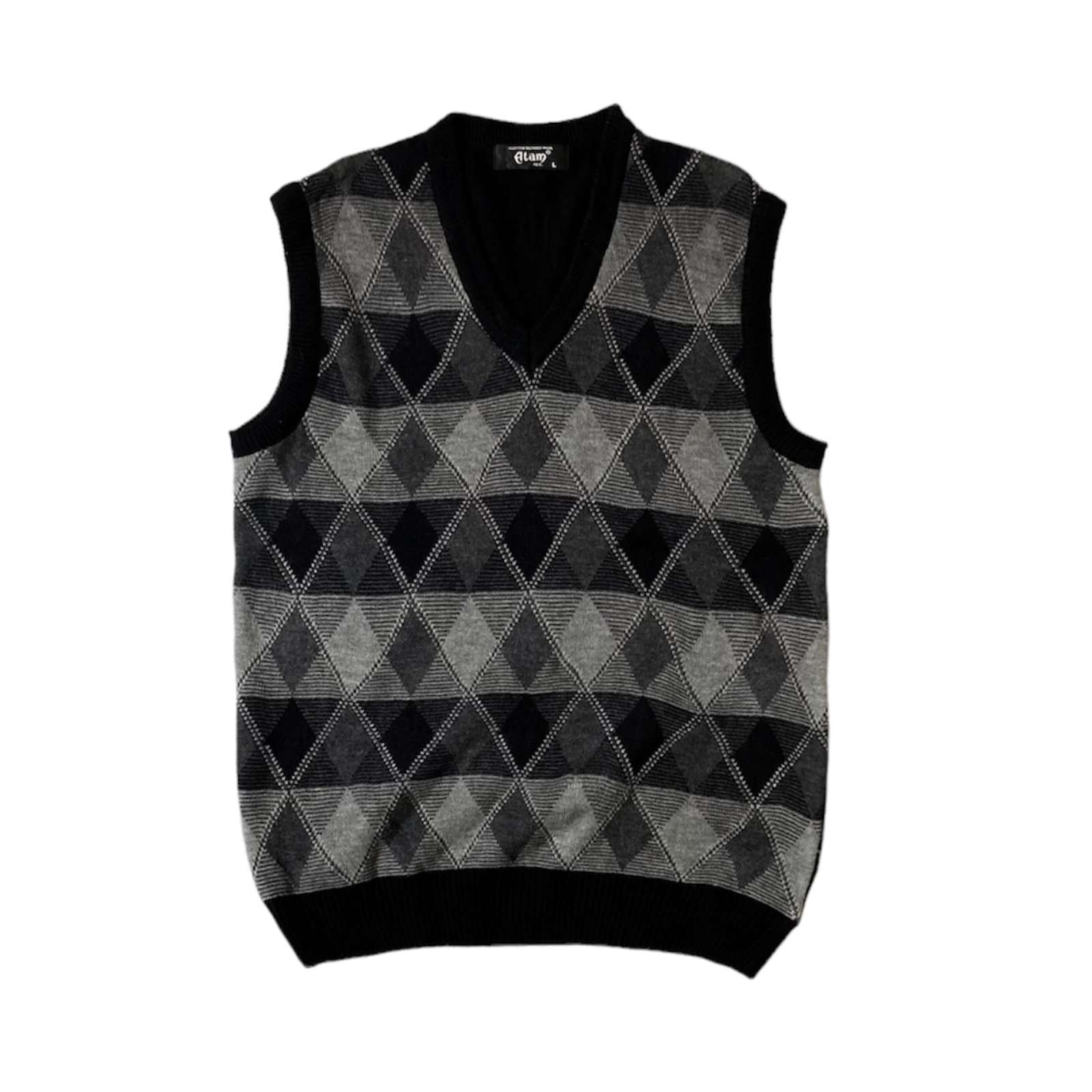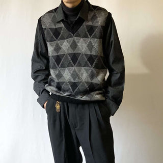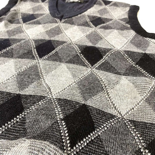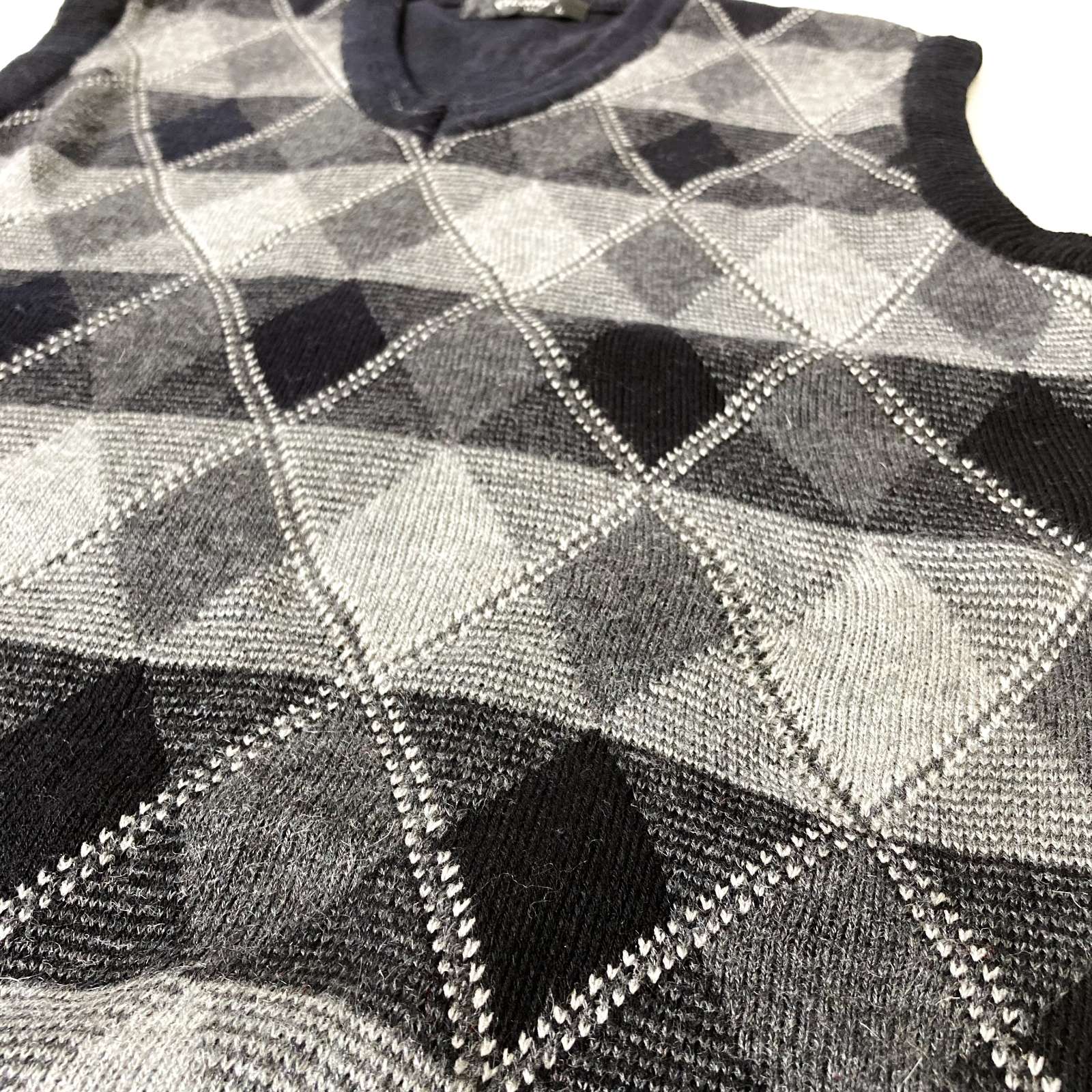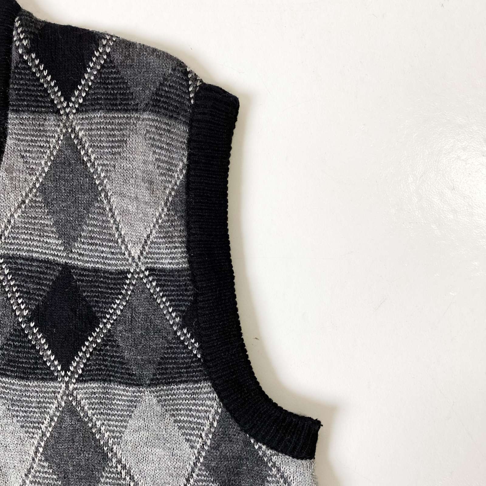 古着 80's Atam Vネック アーガイル チェック ウール ニット ベスト
