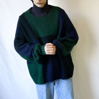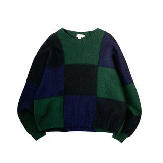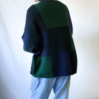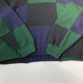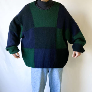古着 90's J.CREW ブラックウォッチカラー パネル ウール ニットセーター