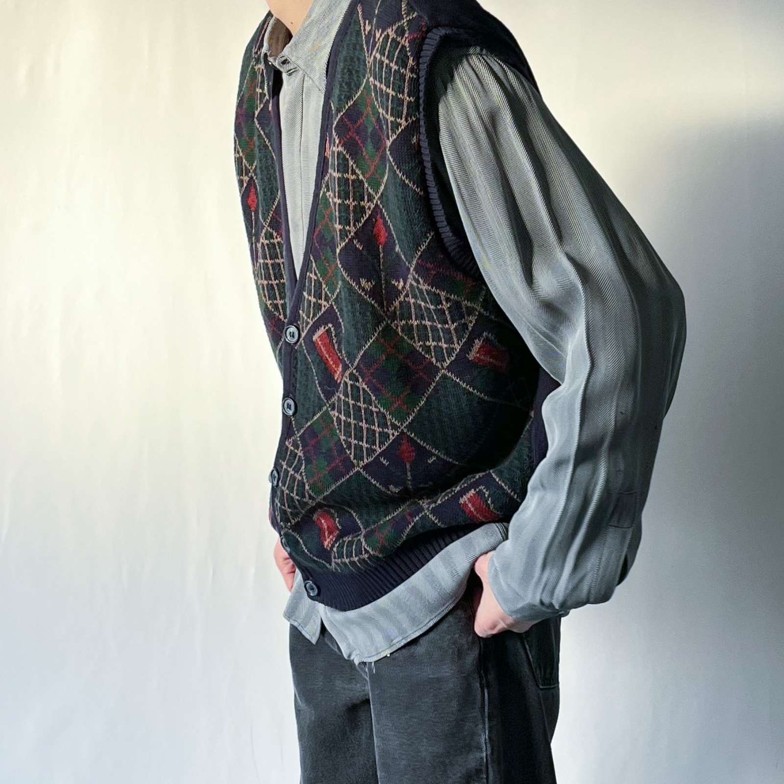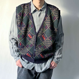 古着 90's~ “made in USA" 前開き アーガイル柄 総柄ベスト