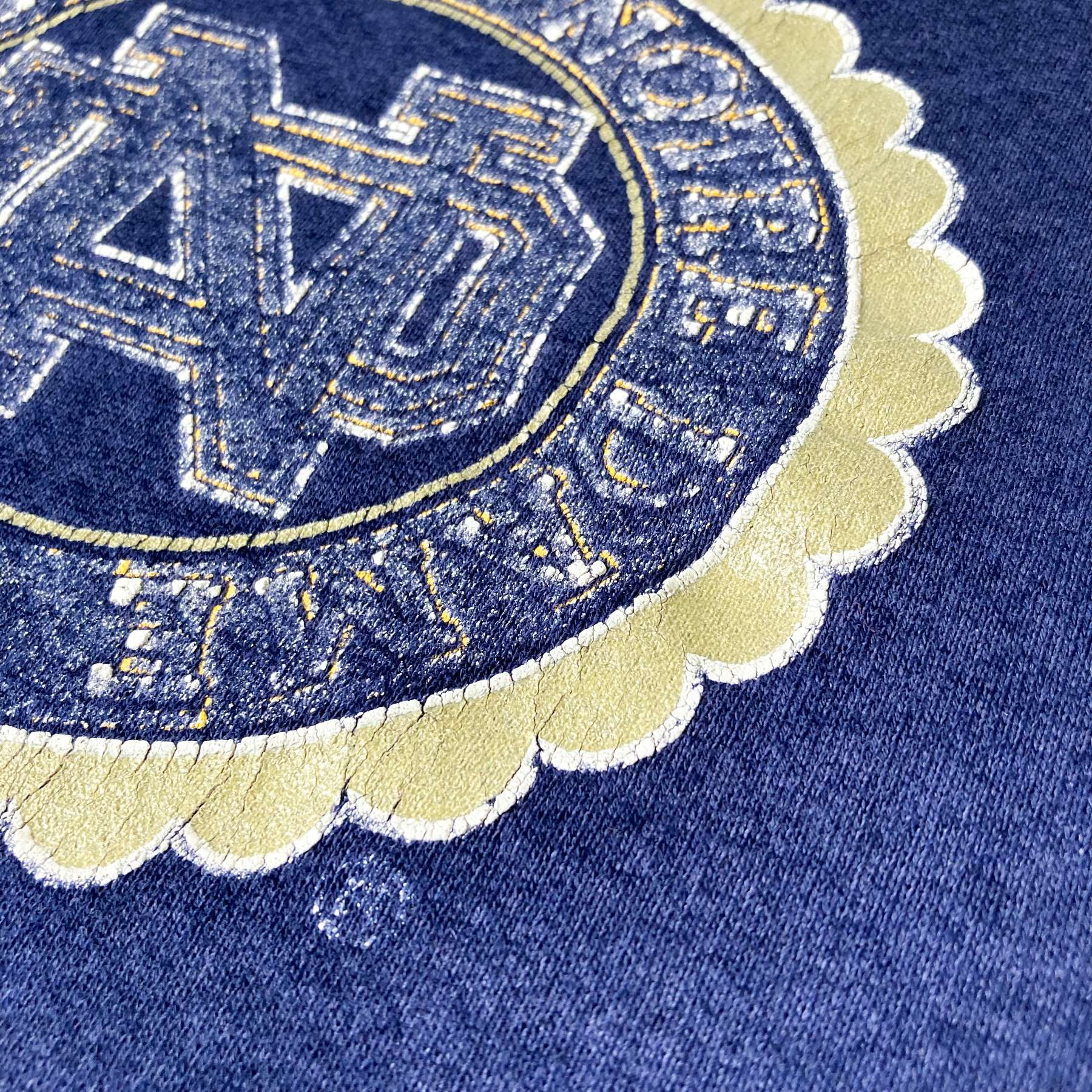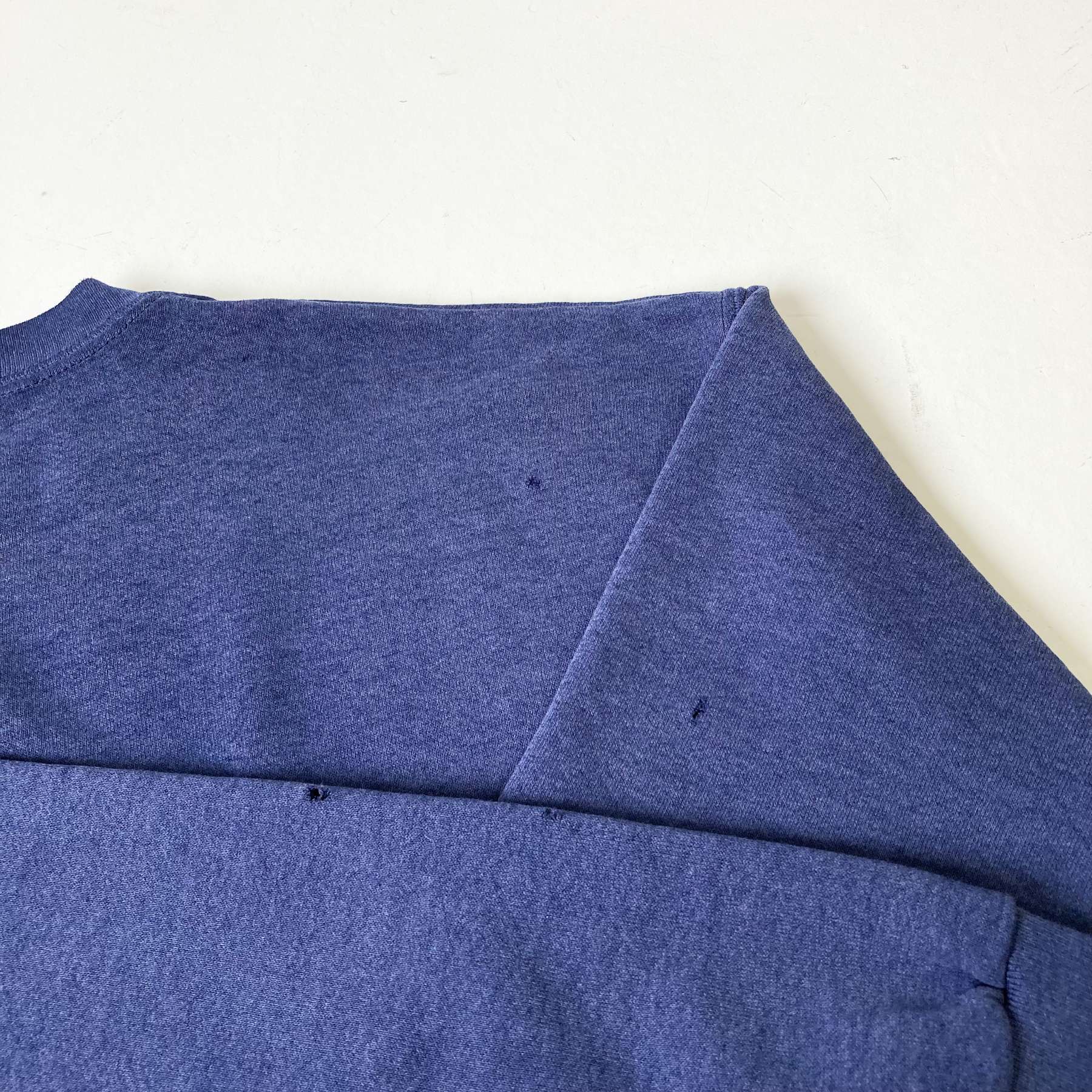 細かいダメージが全体に広がっているスウェット。これから着込むことで自分好みのボロスウェットに仕上げられます。色落ち加減もプリントの掠れも絶妙にGOOD。