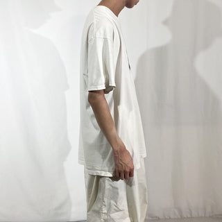 センターにプリントされたこちらのTシャツは、プリントされているのは小さいものの、目を引くデザインで大きめにダボっと着て頂けます。 バックにもプリントがあるのも◎。