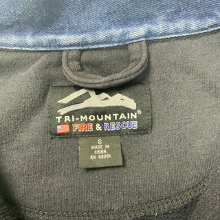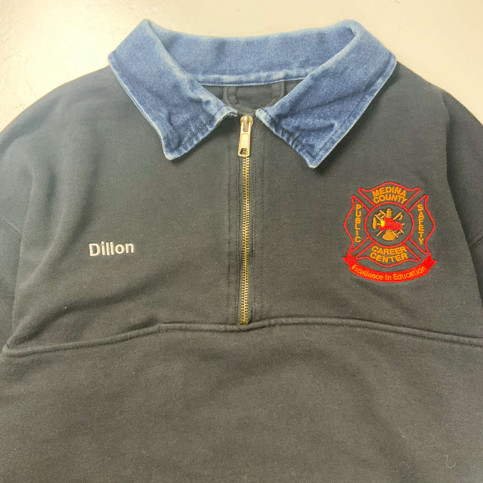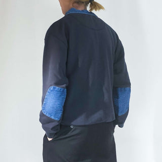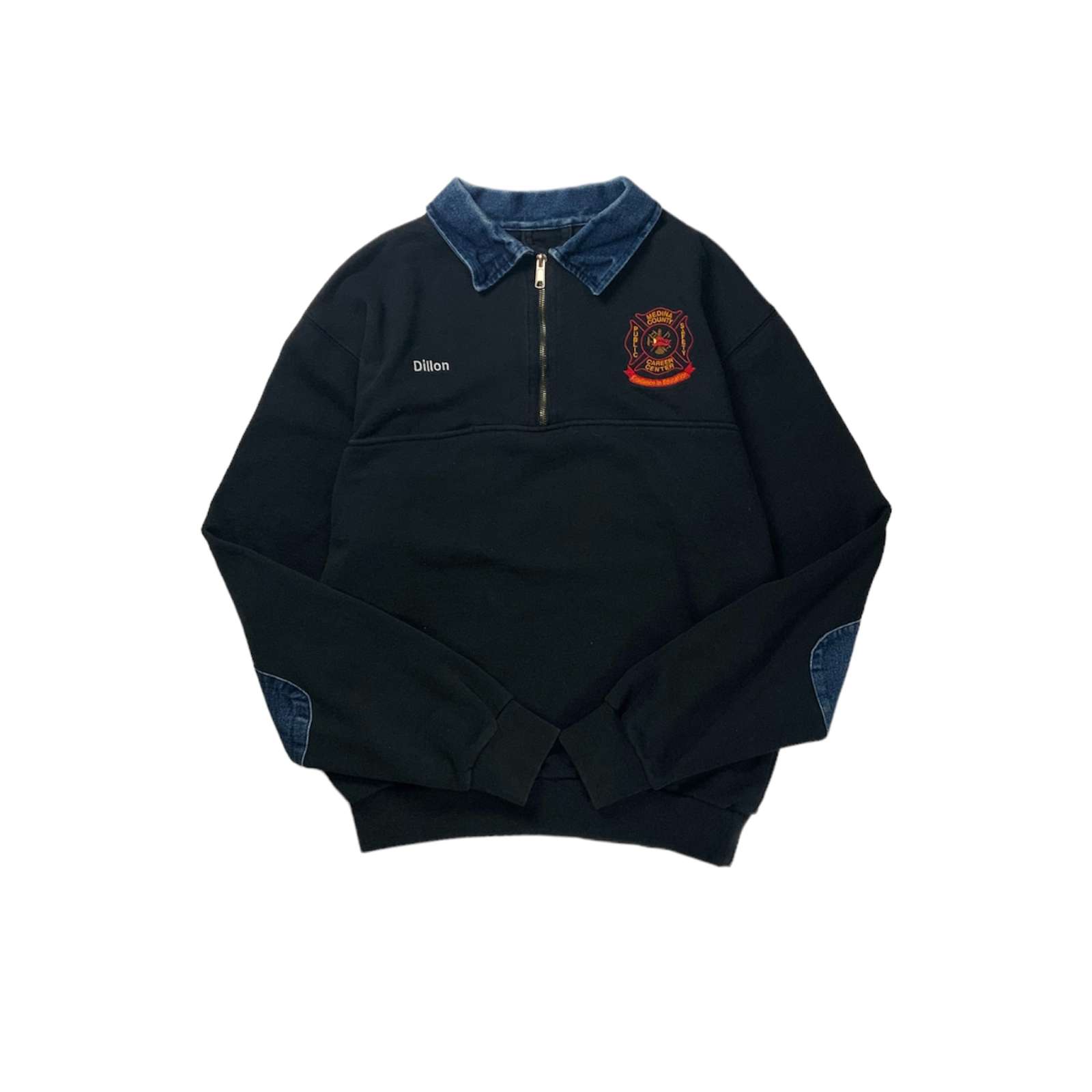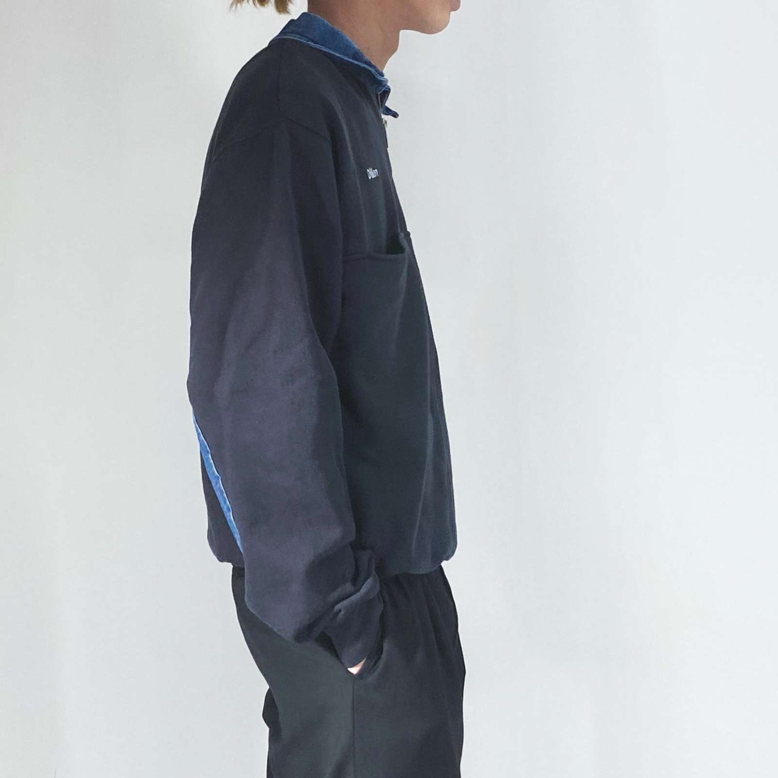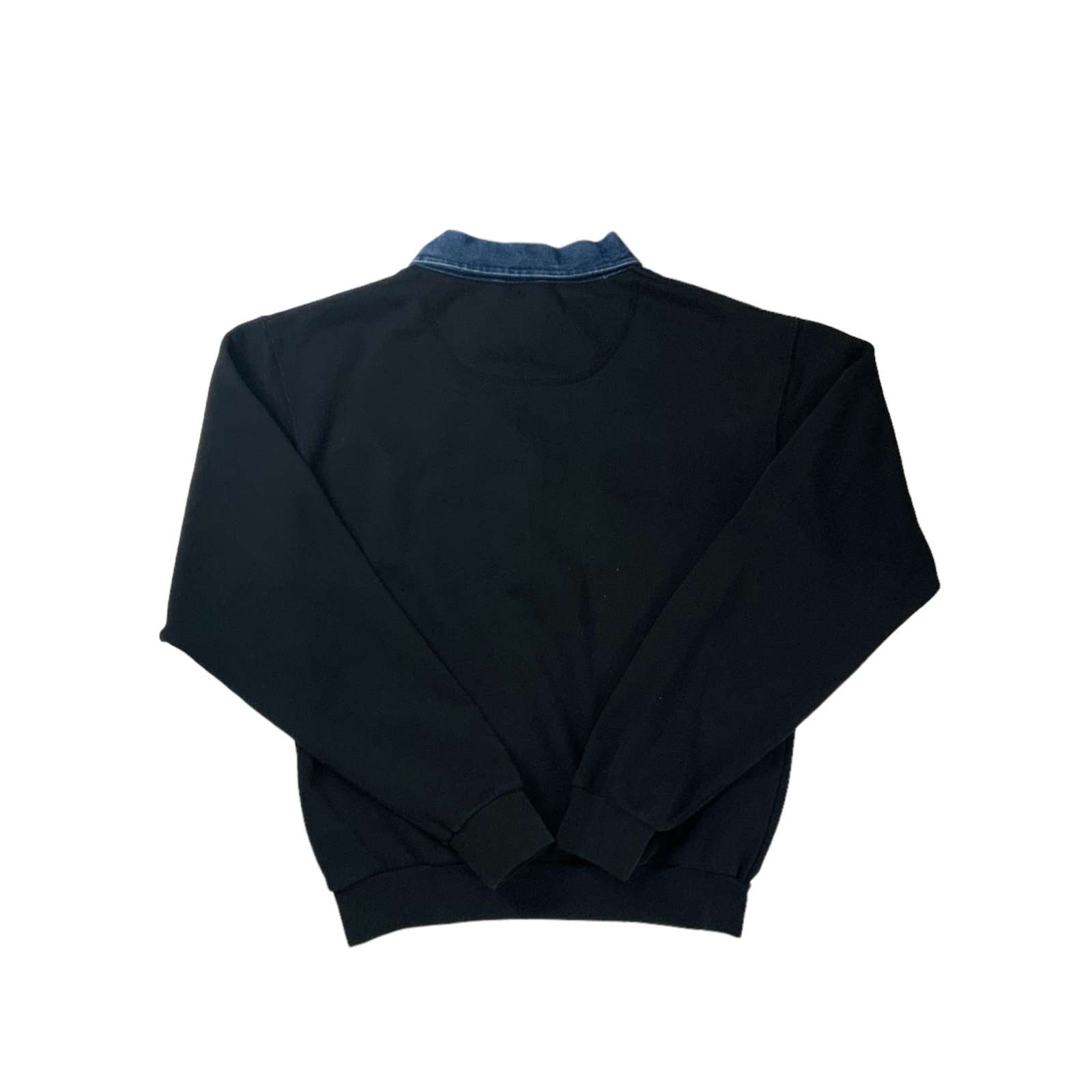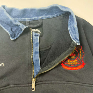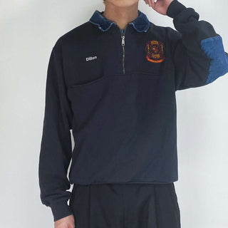 古着 90's TRI-MOUNTAIN 襟付き デニム切替 エルボーパッチ ハーフジップスウェット