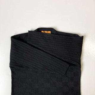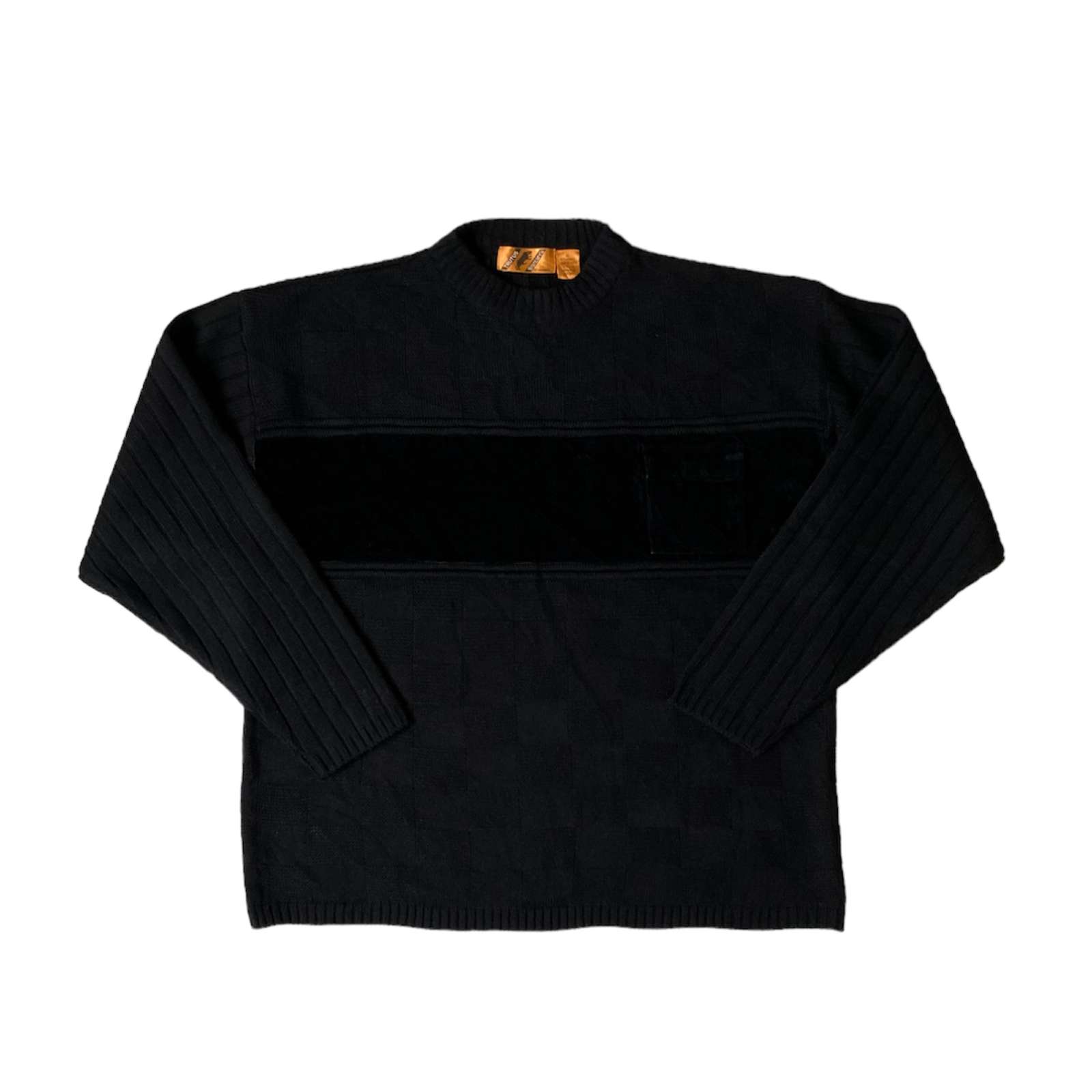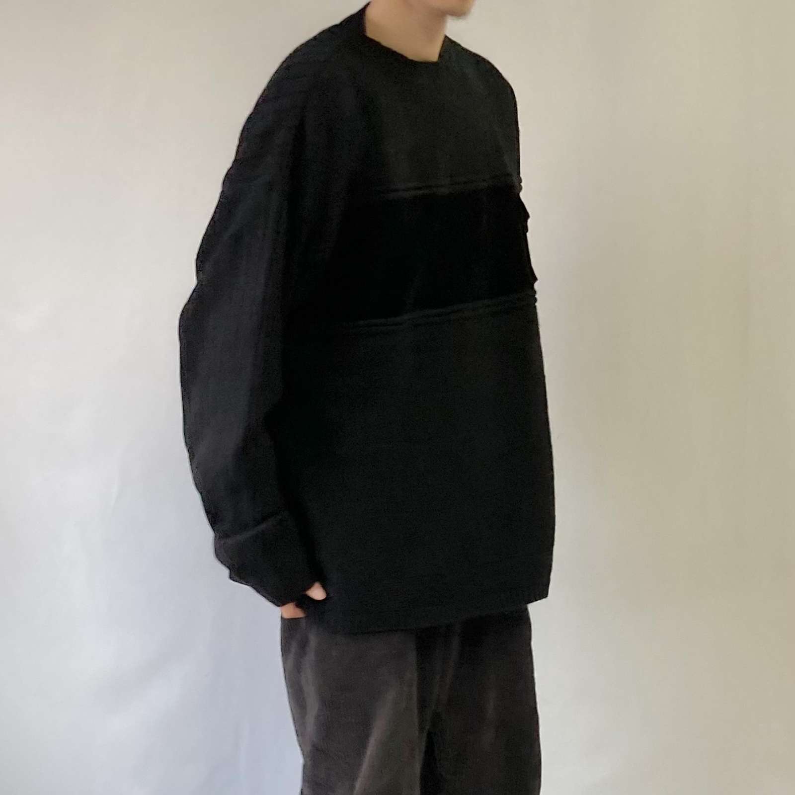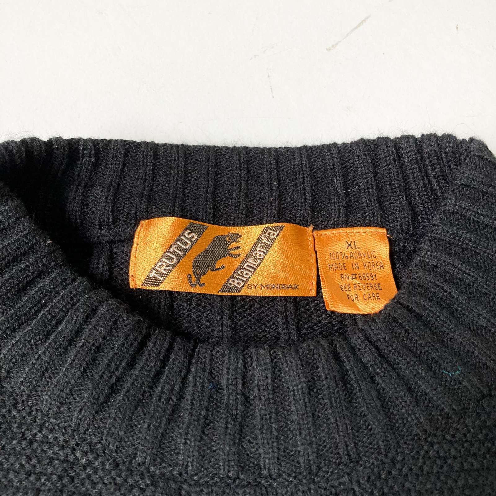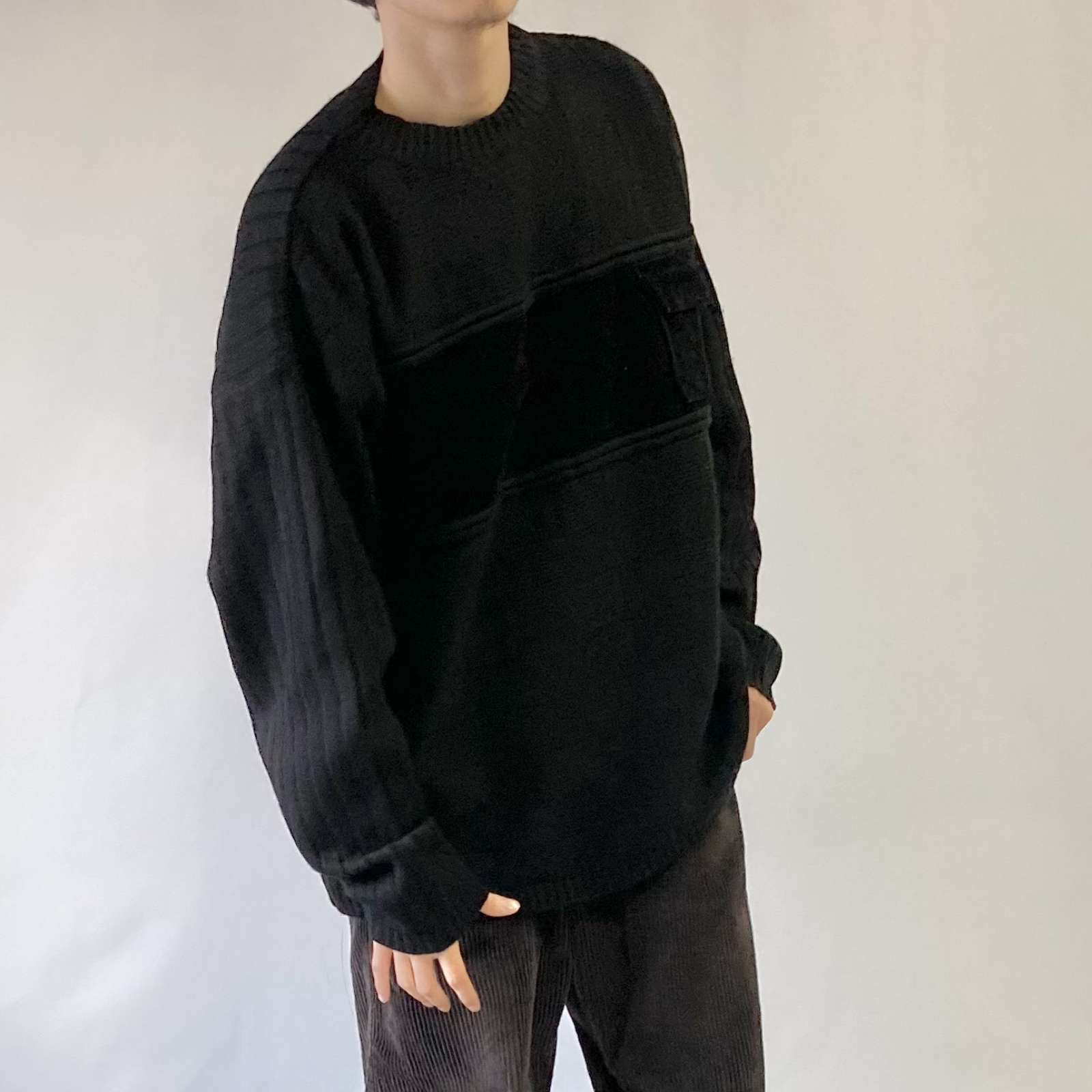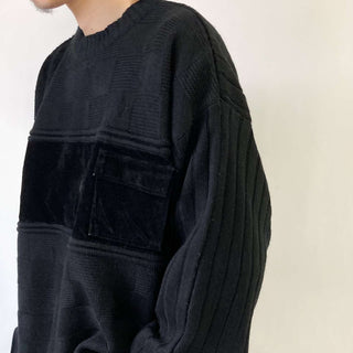 古着 90's TRUTUS ブラック ベロア切替 ポケット付き アクリル ニット セーター