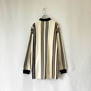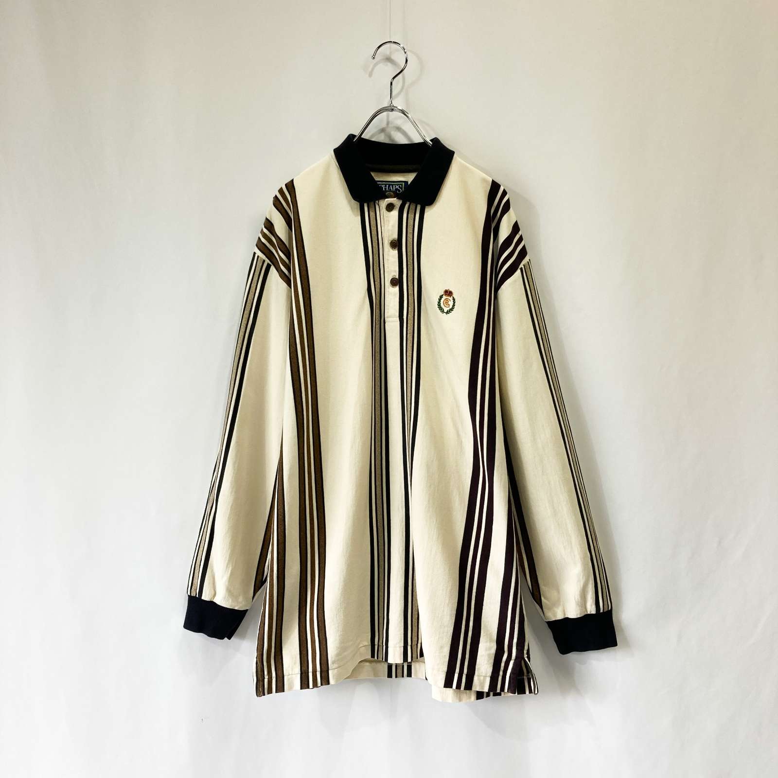 80年代頃のチャプスラルフローレンタグがついたマルチストライプ長袖ポロシャツ。コーヒーで染色したかのような薄めのブラウンが柔らかい印象を与えてくれます。